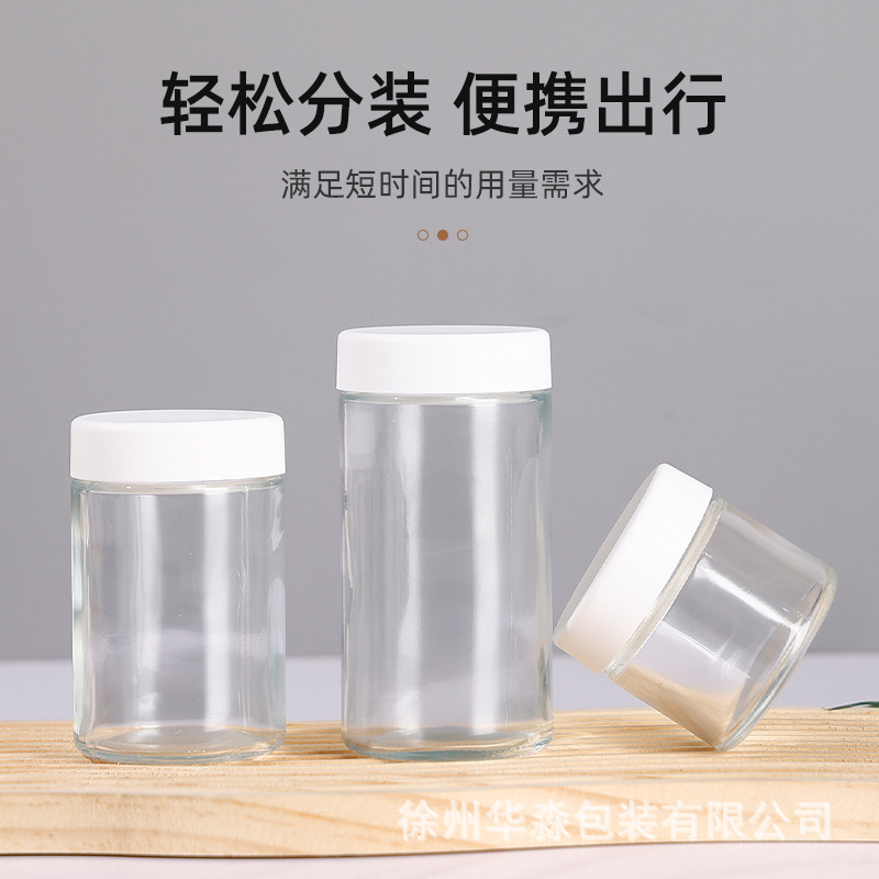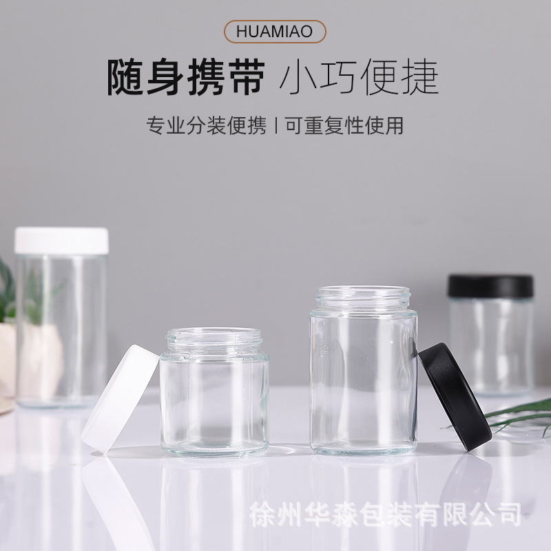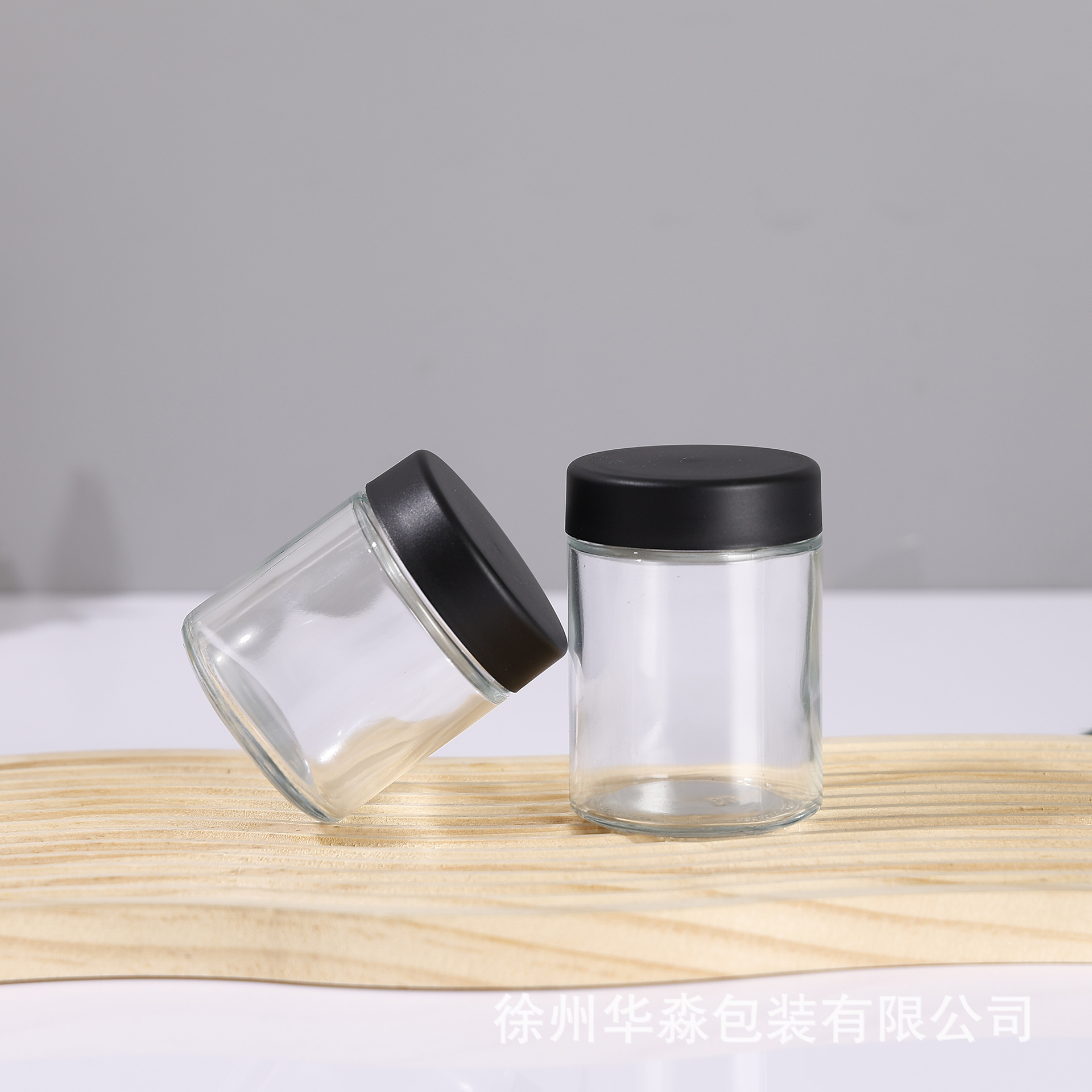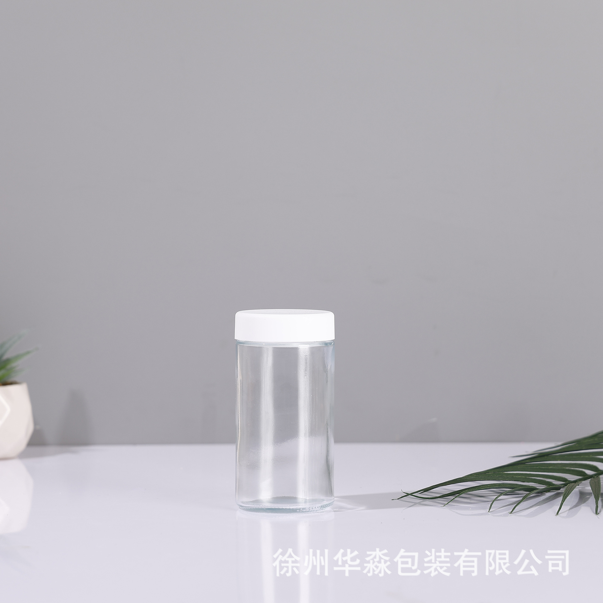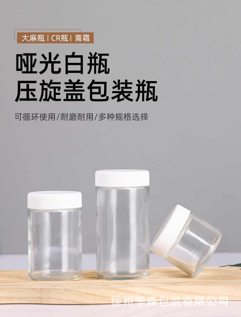 Прозрачная круглая стеклянная бутылка с завинчивающейся крышкой, бутылка для конопли, с защитой от детей, для упаковки капсул с продуктами для здоровья, крема, стеклянная банка