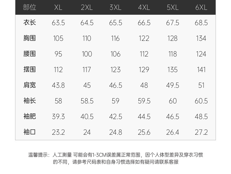 XL; 2XL; 3XL; 4XL; 5XL; 6XL; L