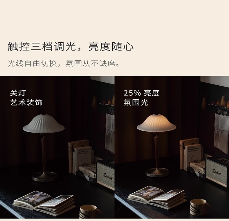 Ретро-настольная лампа Xiaowanzi с функцией подзарядки, стеклянная, для создания атмосферы, прикроватная лампа, ночник для спальни, 6 режимов
