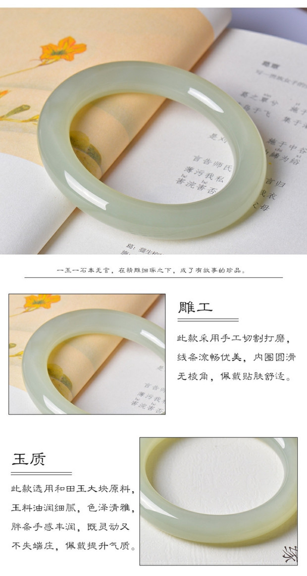 Хетян Джейд Циншуй браслет сине-белый нефритовый женский нефритовый браслет толстый круглый браслет натуральный нефрит с ледяным дном подлинного сертификата