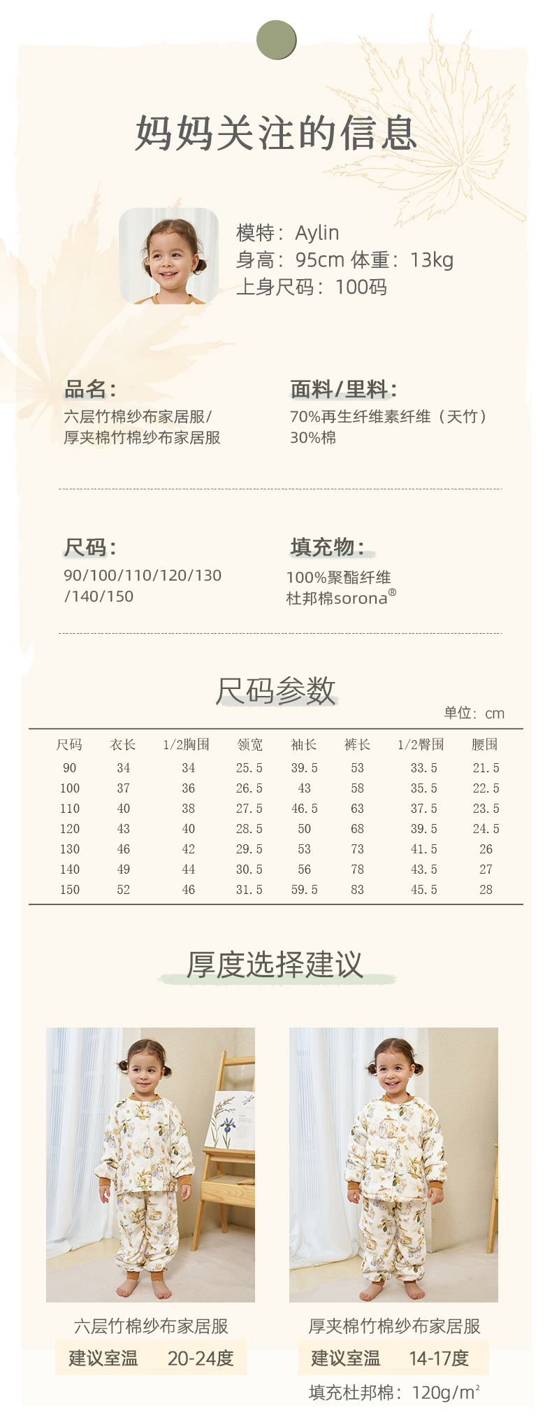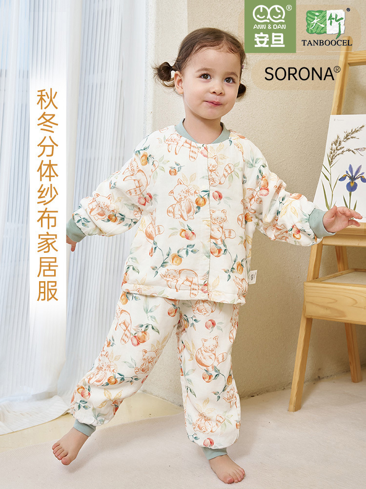 Andan, весенне-осенняя новая детская бамбуковая хлопковая марлевая шестислойная домашняя одежда, зимняя стильная утепленная пижама с подкладкой, без статического электричества