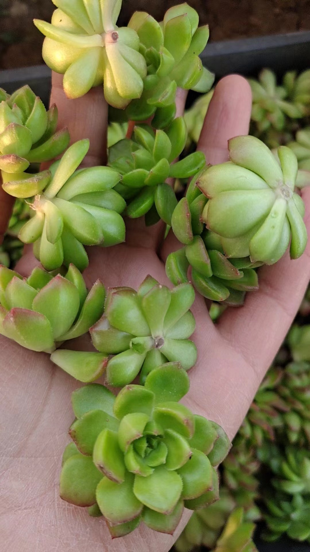 本链接为多肉砍头苗,用于扦插繁殖的多肉种苗,尺寸2-3cm,品种不同尺寸不同,无根。需要自行种植,春秋生长季节一般7-10天自然发根。适用于多肉基地快速繁殖生产,多肉爱好者DIY种植等场景。鲜活植物发货后不支持无理由退款退货,望知悉。