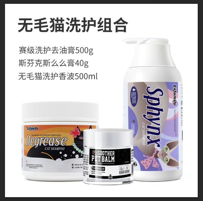 Конкурсная качественная чистящая и обезжиривающая мазь 100г (для кошек); Качественное очищающее и жироудаляющее средство 500г (для кошек); Гипоаллергенная обезжиривающая мазь 500г (для кошек); Гипоаллергенная обезжиривающая мазь 1000г (универсальная для кошек); Специальный шампунь для удаления масла безволосой кошки 500мл"; Шампунь для безволосых кошек 500мл; Специальный шампунь «Египетский ароматный сфинкс» 500 мл; Очищающая и увлажняющая вода для безволосых кошек 150мл; Сфинкс мазь 40г; Пена Cat No-Wash 220мл (универсальная для кошек); Обезжиривающий крем соревновательного класса 500 г + гель для душа для ухода за безволосыми кошками 500 мл; Обезжиривающий крем для соревнований + уход за безволосыми кошками + крем момо