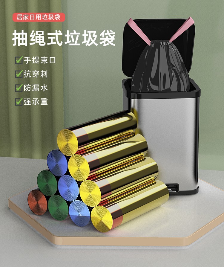 Мусорные пакеты, цветные черные мусорные пакеты, мусорные пакеты со шнурком, утолщенные и увеличенные, в рулонах поштучно и оптом.