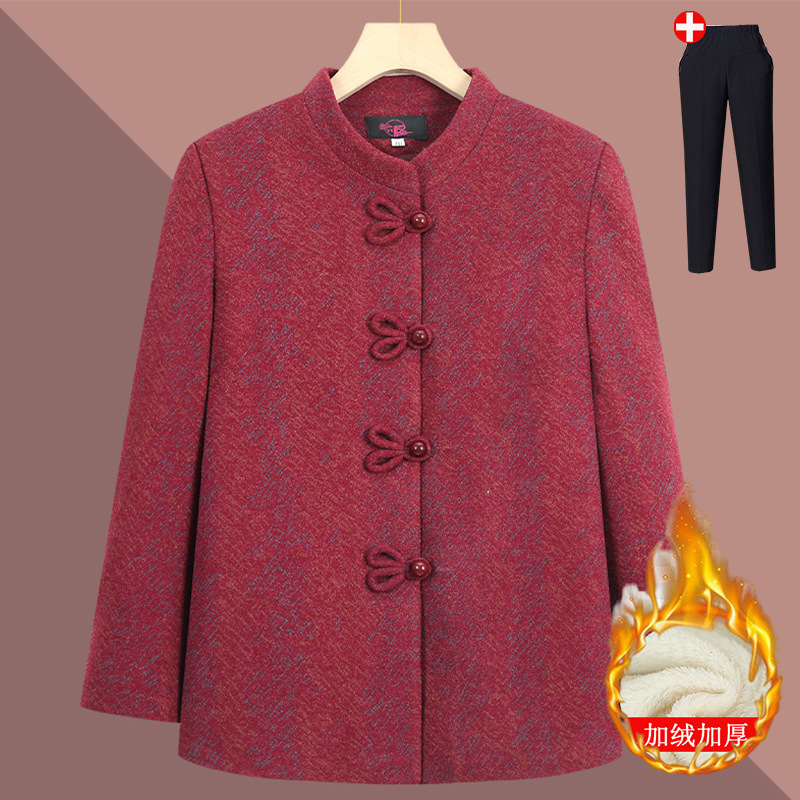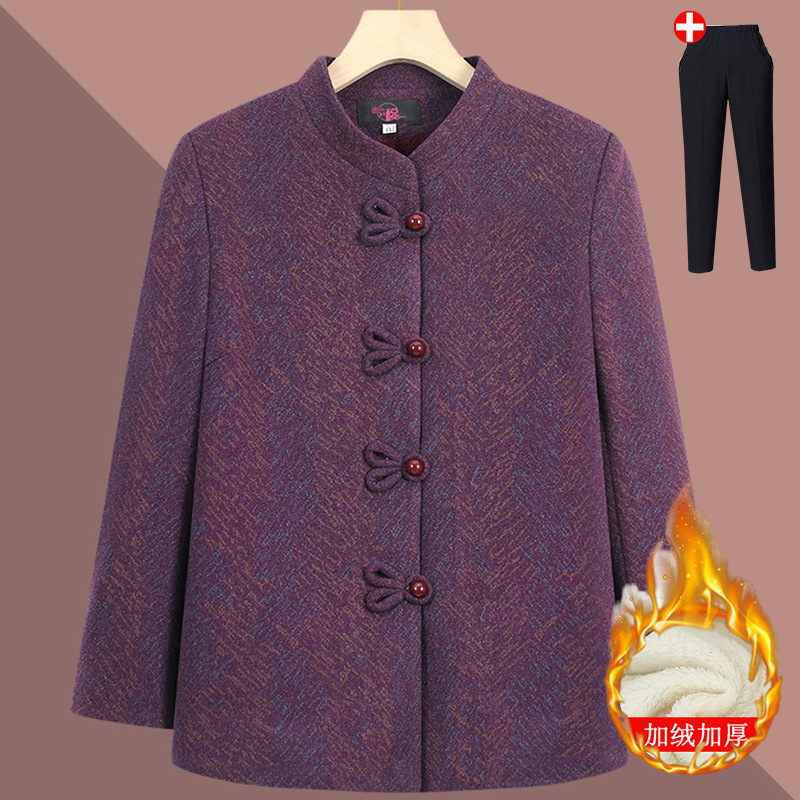 Зимняя одежда для женщин среднего и старшего возраста, костюм «Тан» для бабушки с флисовой подкладкой и утепленной курткой, осенне-зимние топы для мам 70 лет, одежда для пожилых женщин.