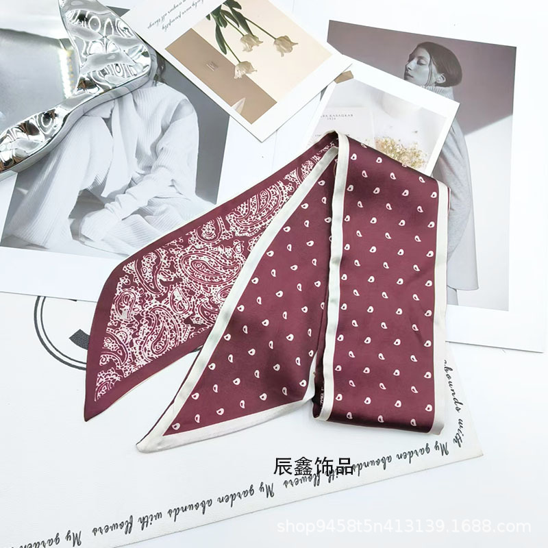 Новый маленький длинный шелковый шарф в корейском стиле в горошек, женственный, универсальный, высококачественный шарф, лента, резинка для волос, шарф оптом