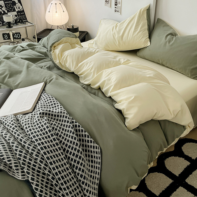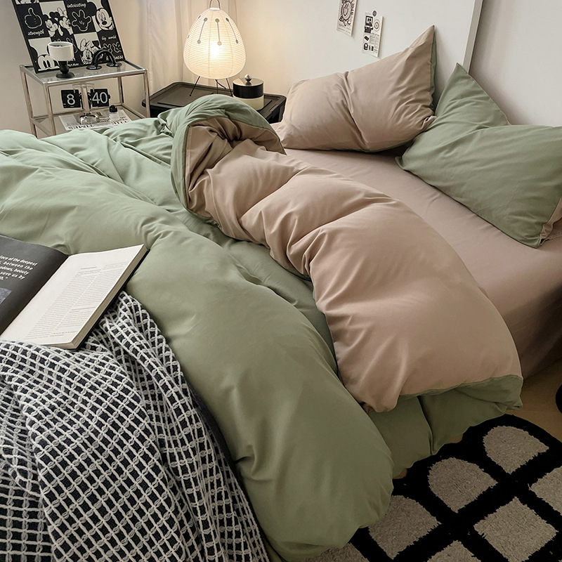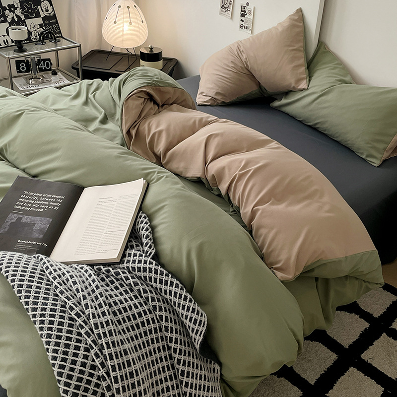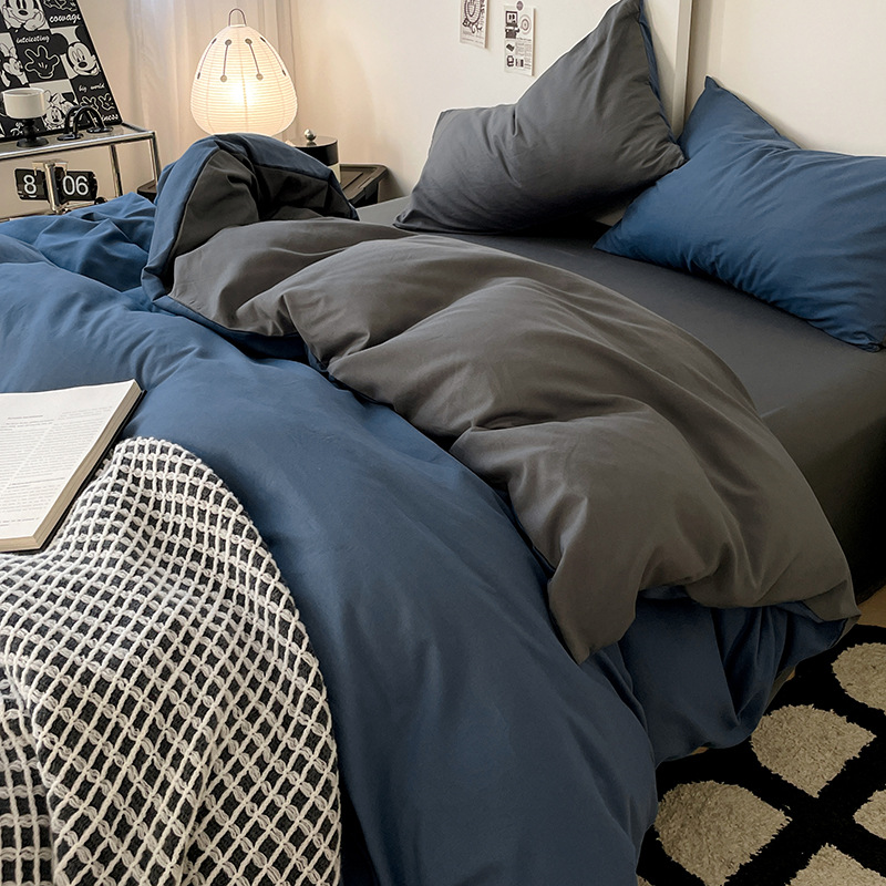 Nin Wind сплошной цвет двухцветная хлопчатобумажная кровать четыре комплекта из 4 предметов