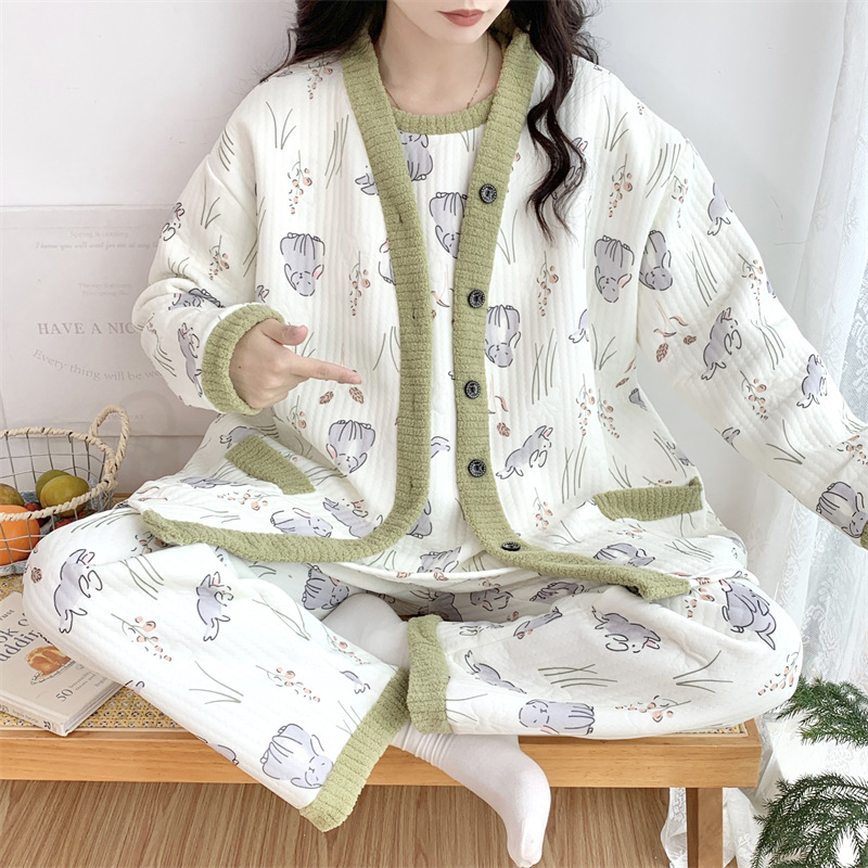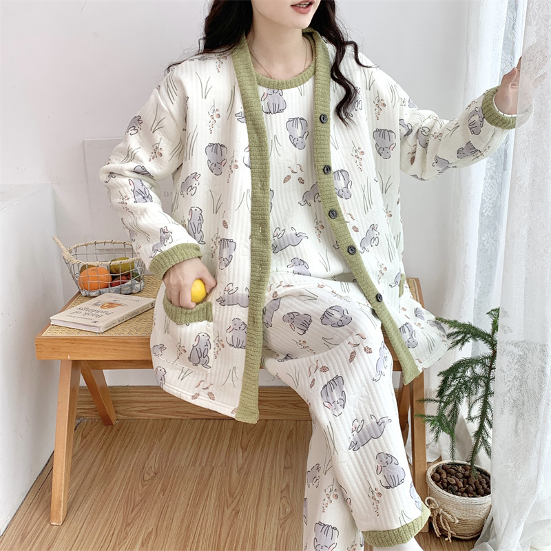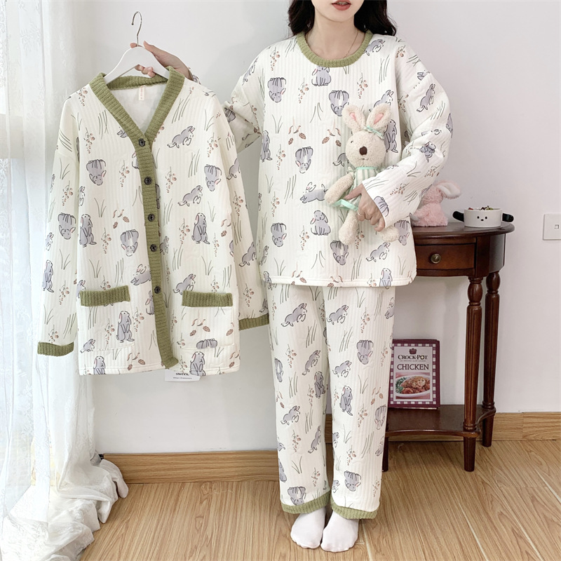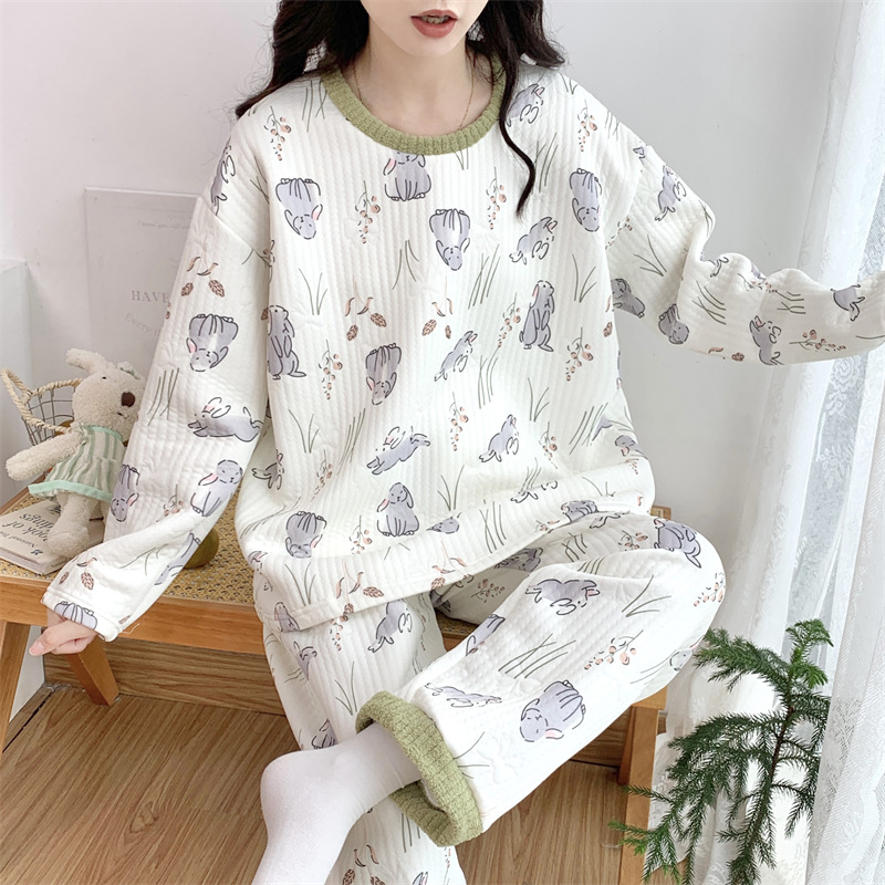 Пижама женский осенний и зимний воздушный хлопок сэндвич сладкий большой размер толстый MM300 кг набор домашней одежды 30050-66