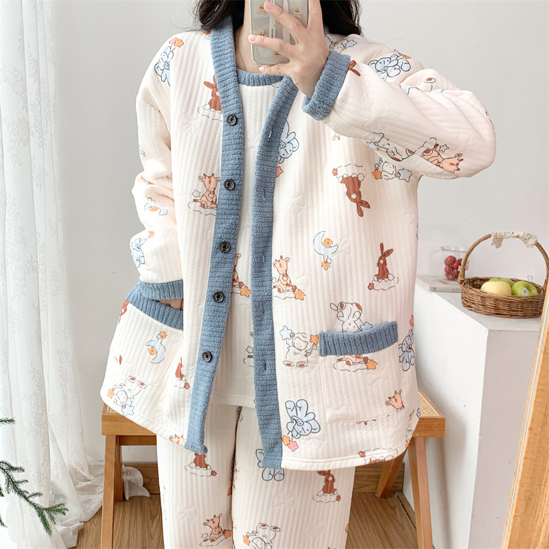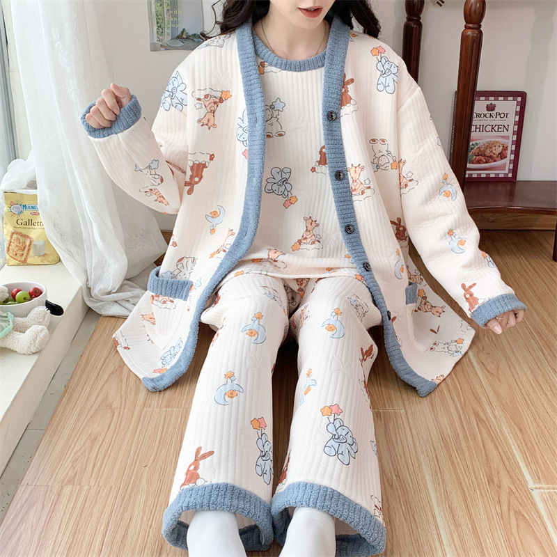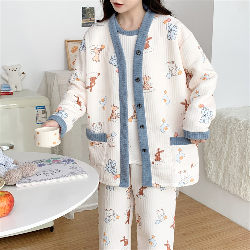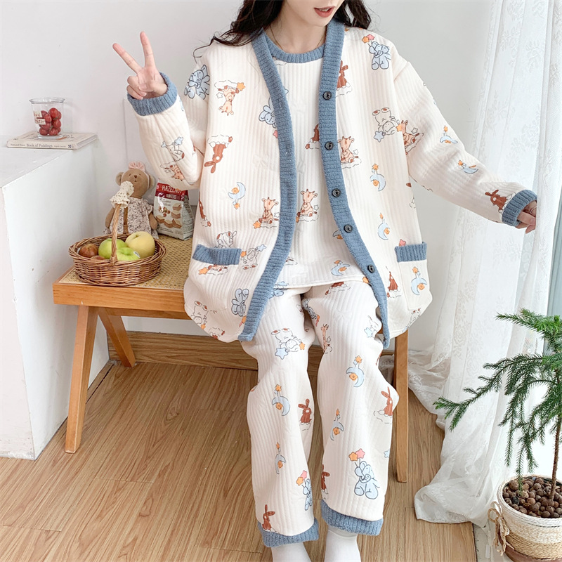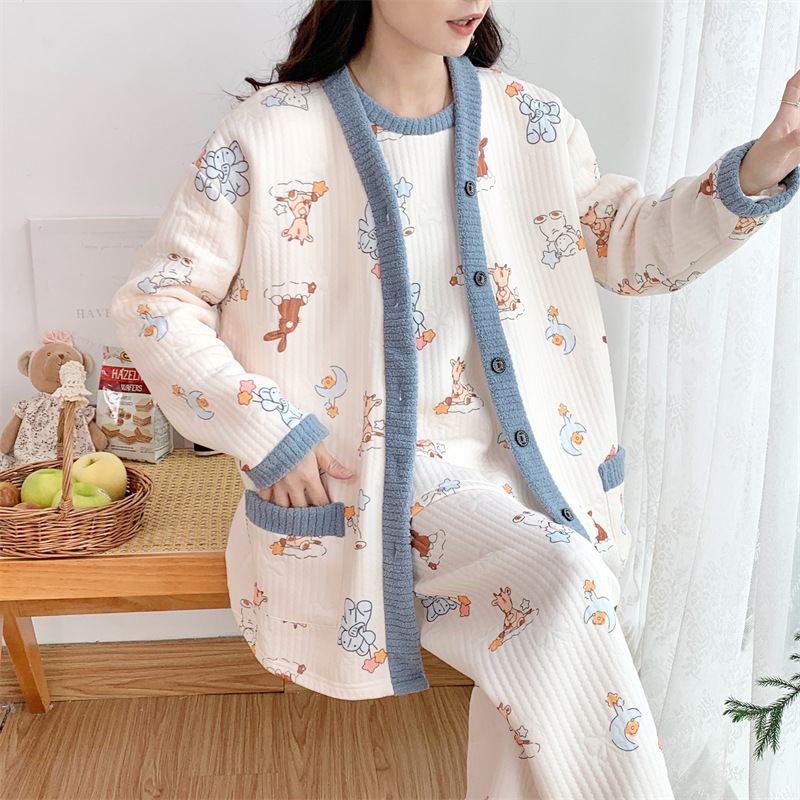Пижама женский осенний и зимний воздушный хлопок сэндвич сладкий большой размер толстый MM300 кг набор домашней одежды 30003-66