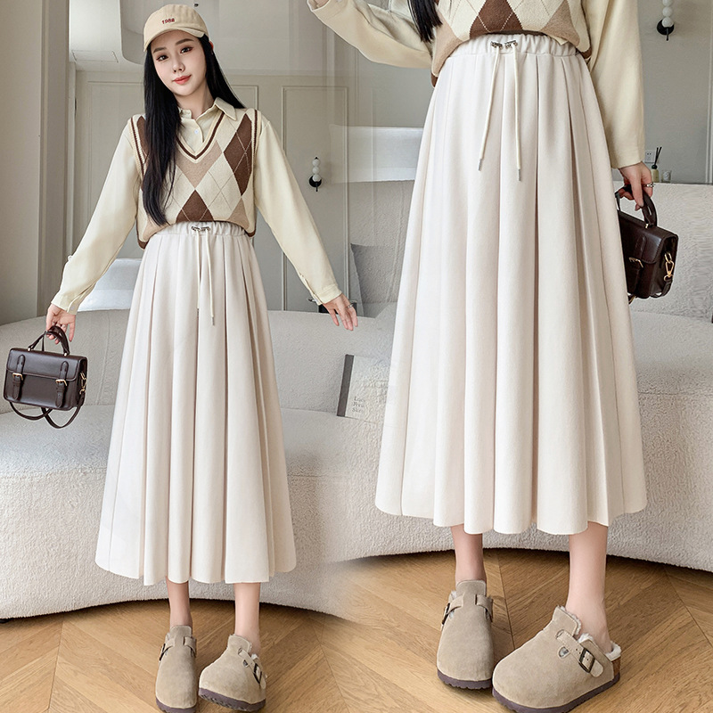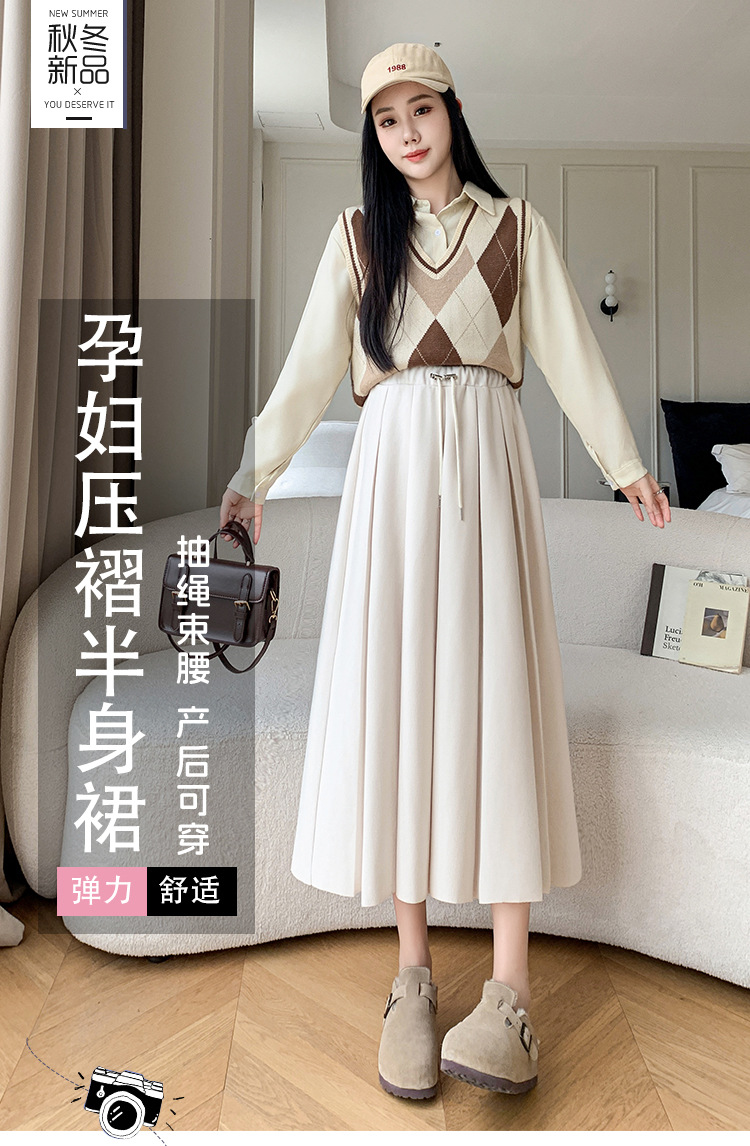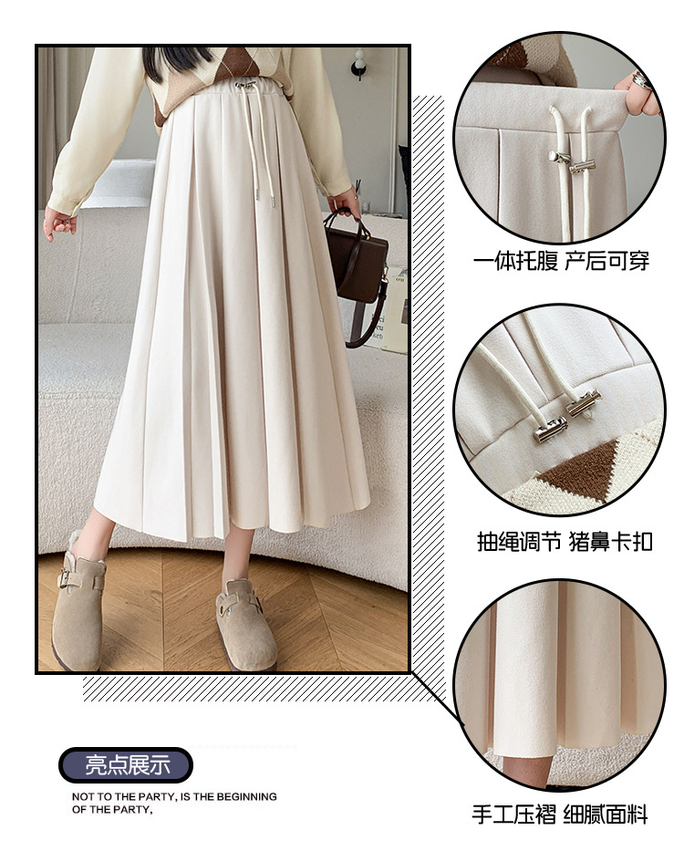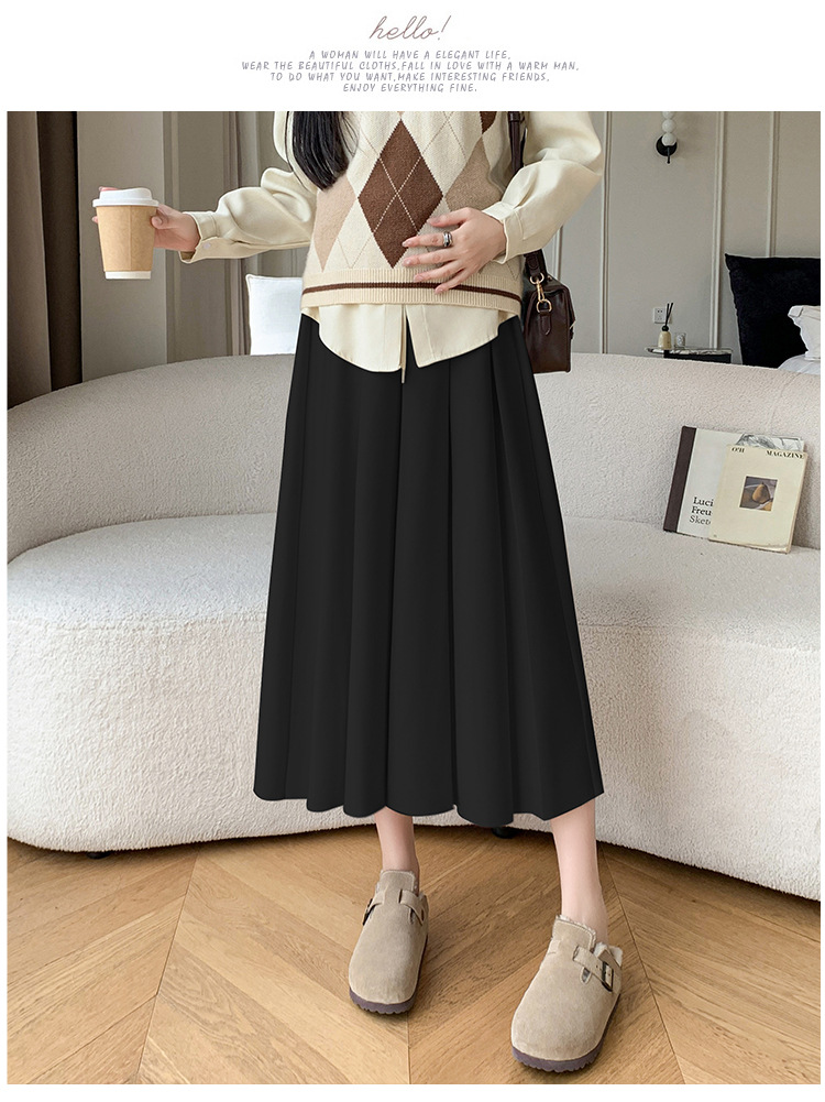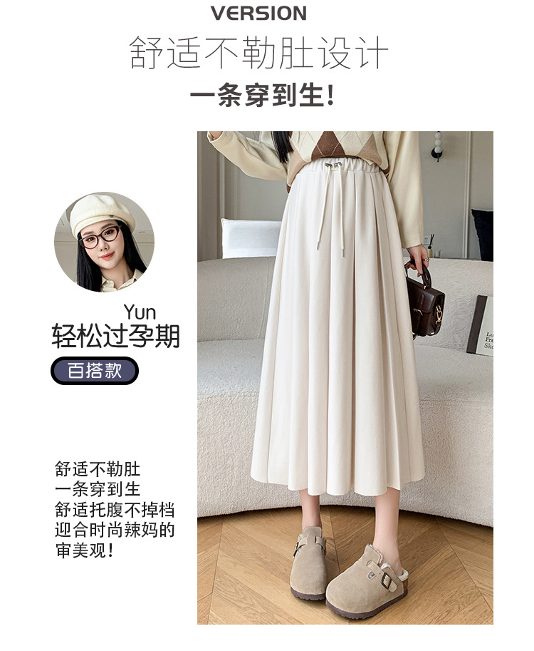 Плиссированная юбка беременной женщины без живота тонкая юбка полутень женская осень и зима новая беременная женщина средней и длинной шерстяной юбка