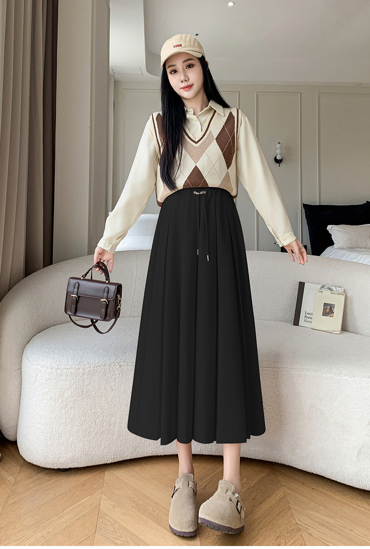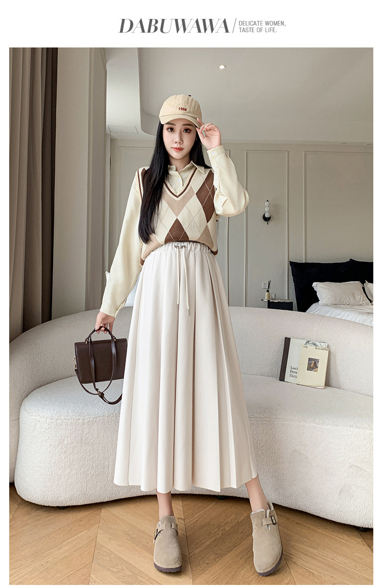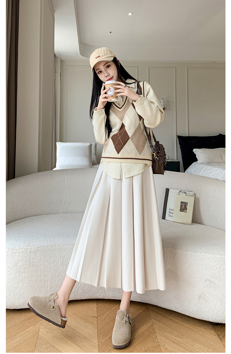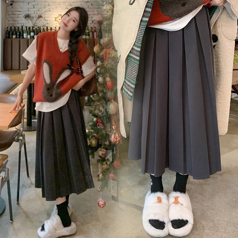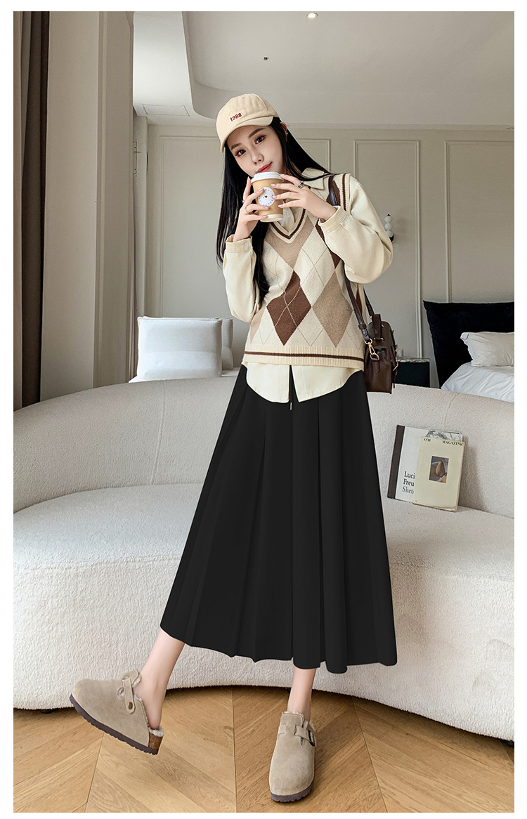 Плиссированная юбка беременной женщины без живота тонкая юбка полутень женская осень и зима новая беременная женщина средней и длинной шерстяной юбка