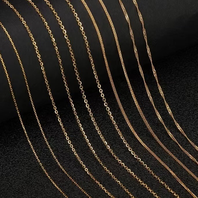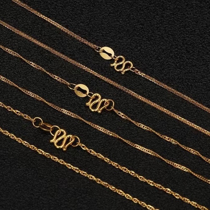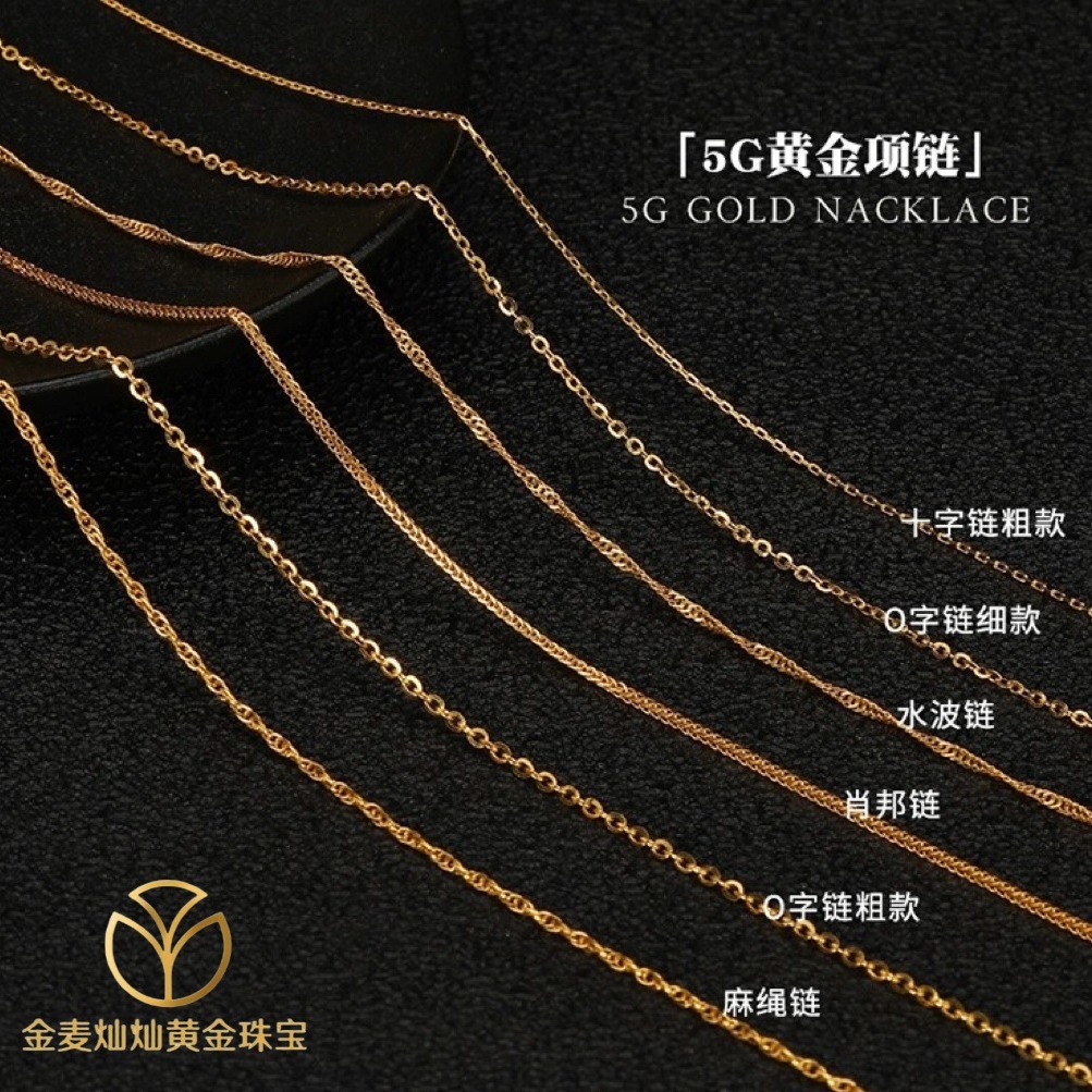 Золотое ожерелье 5G 999 ножки золотая цепочка O-образная цепочка Шопен Цепь Кроссяная цепь водяная волна Цепь веревки женский ключица ожерелье