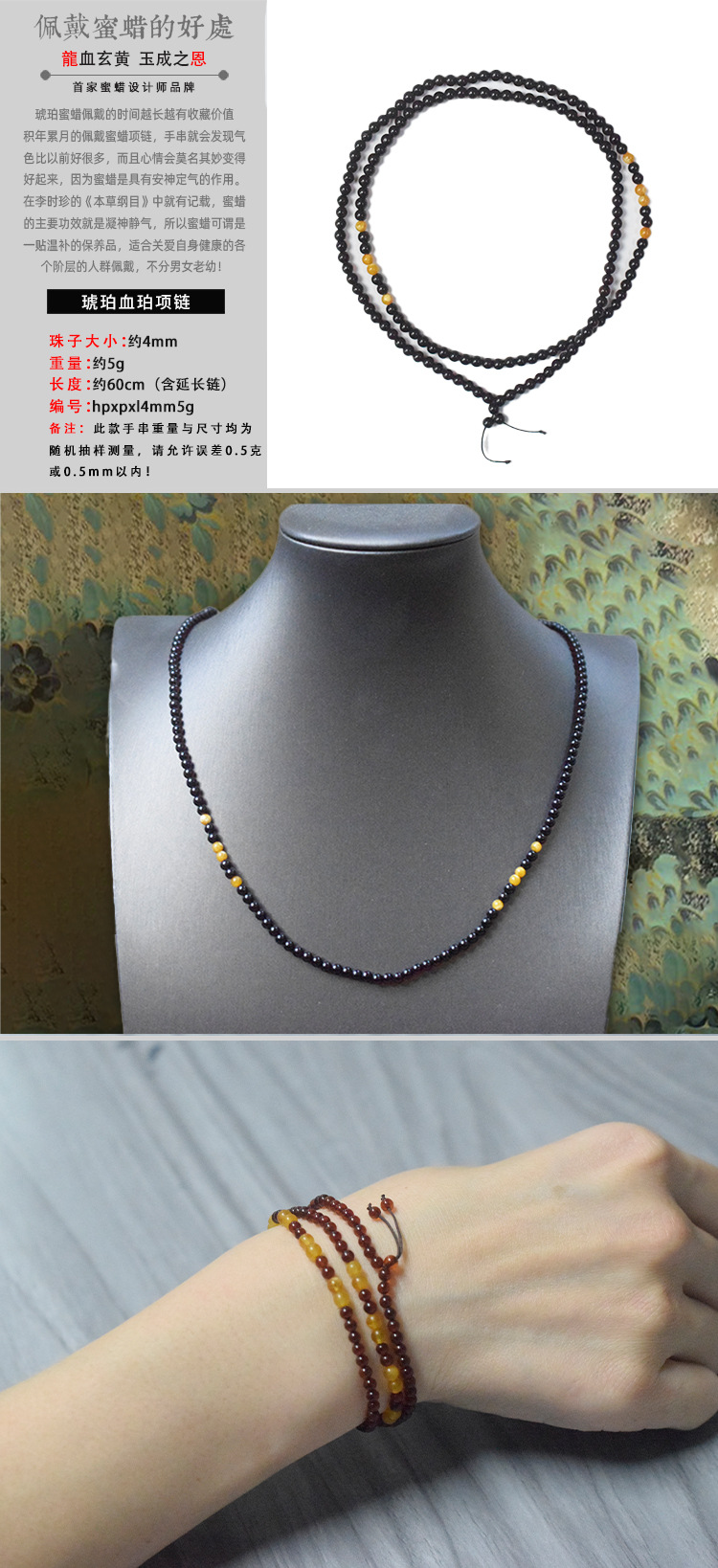 Янтарное ожерелье "Amber Blood", 4 мм, 5 г / Артикул: h126