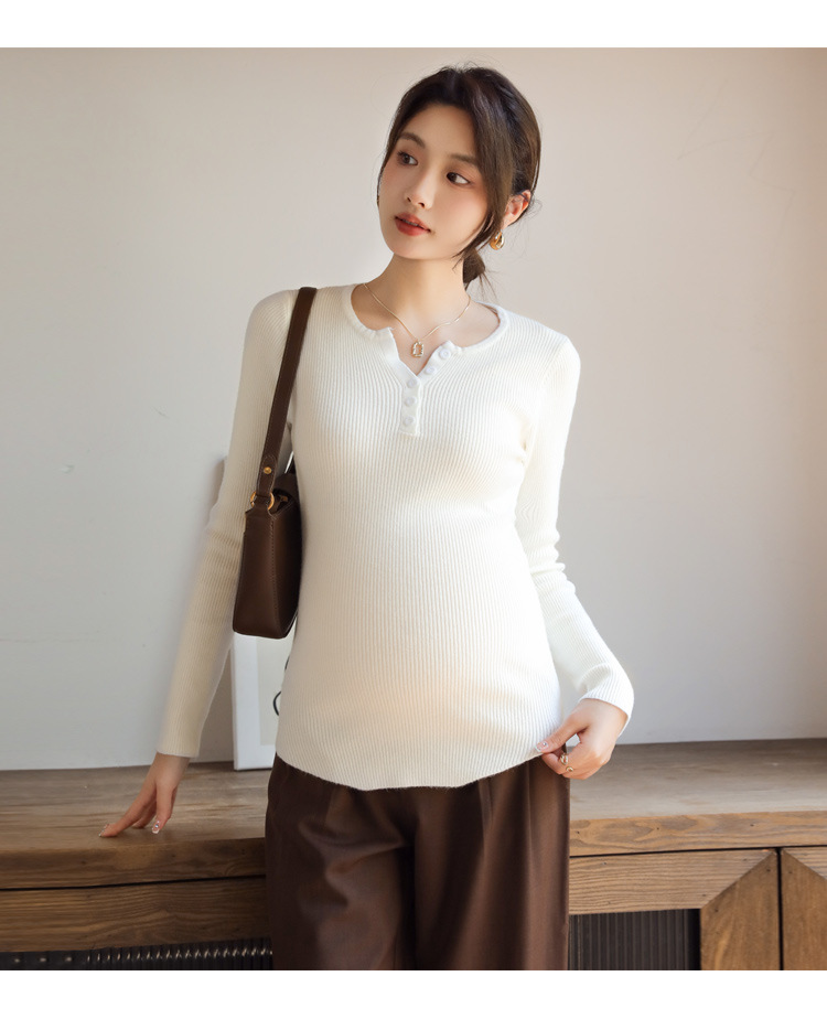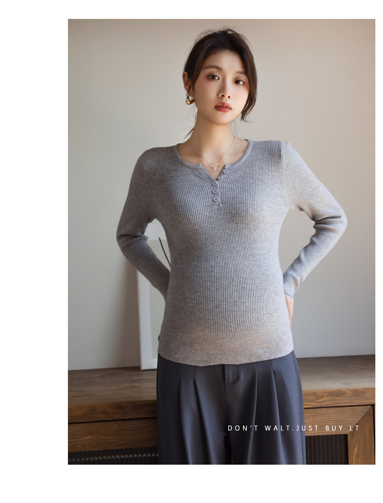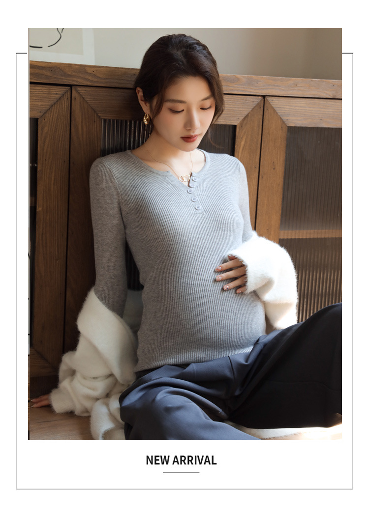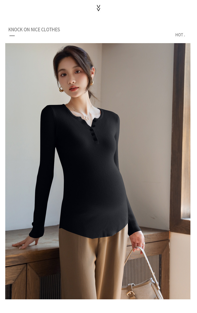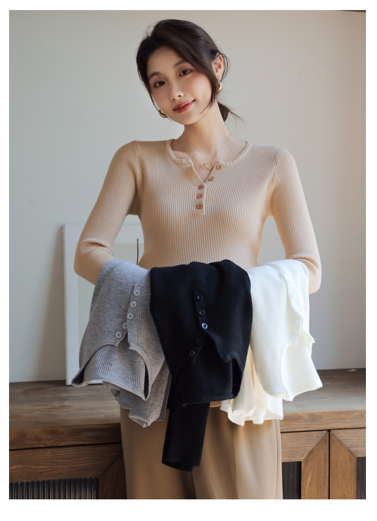 Осенний и зимний маленький вязаный свитер с V-образным вырезом