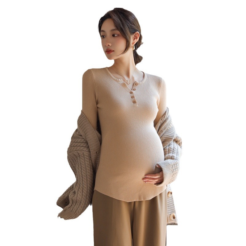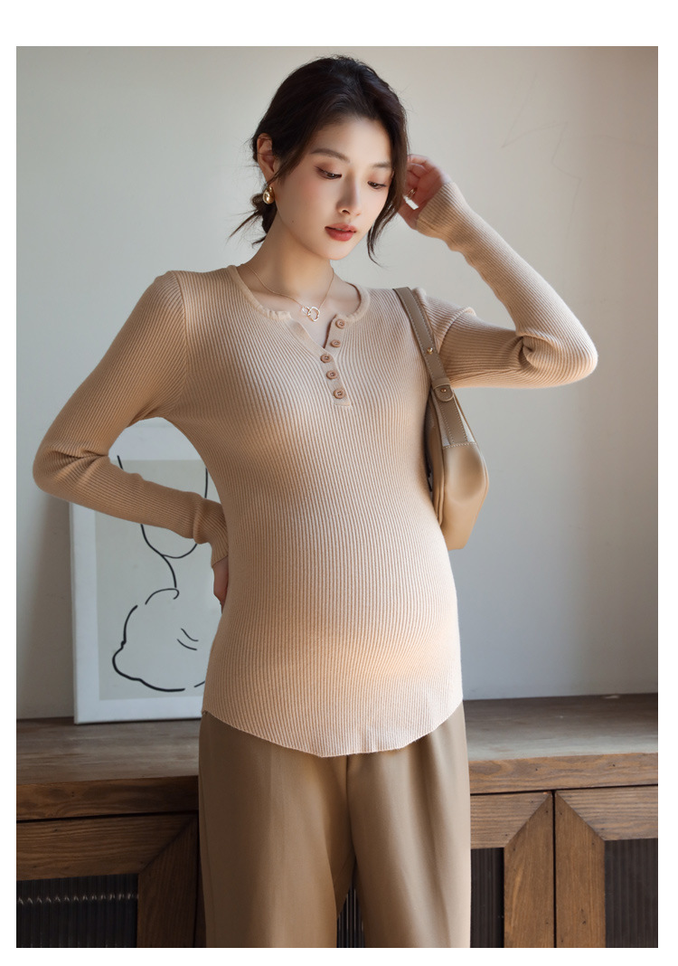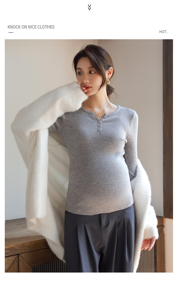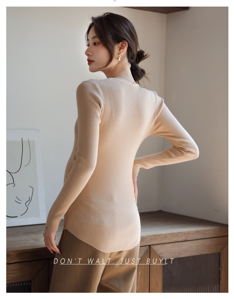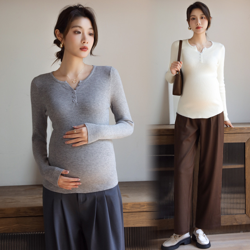 Осенний и зимний маленький вязаный свитер с V-образным вырезом