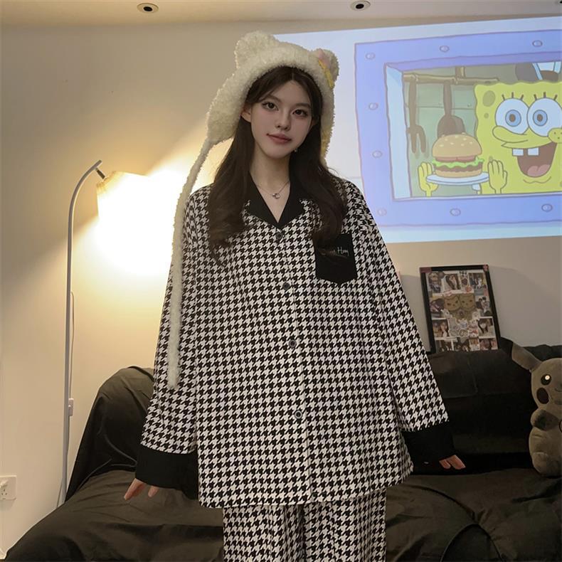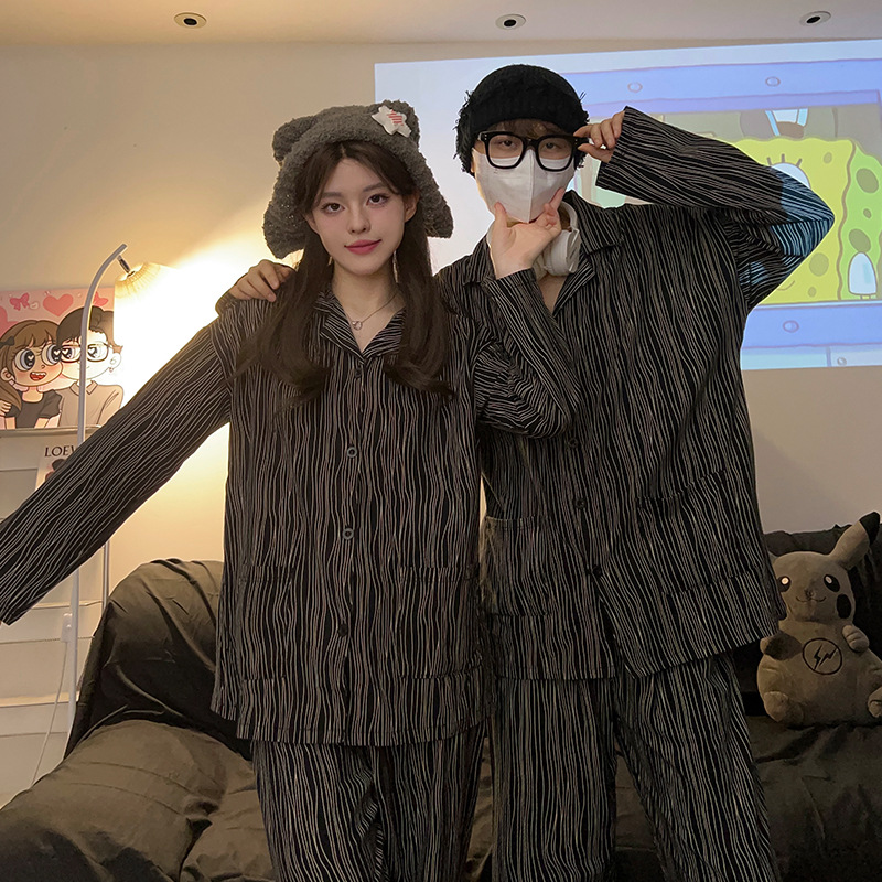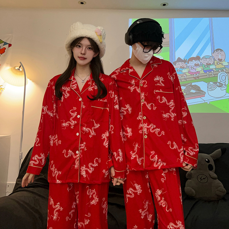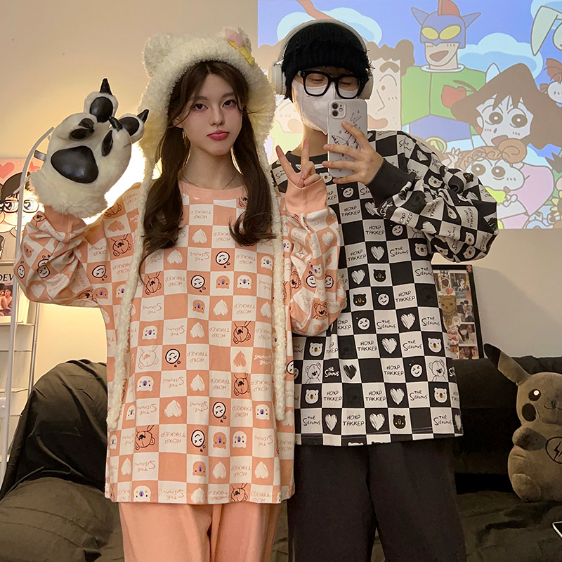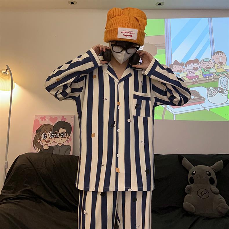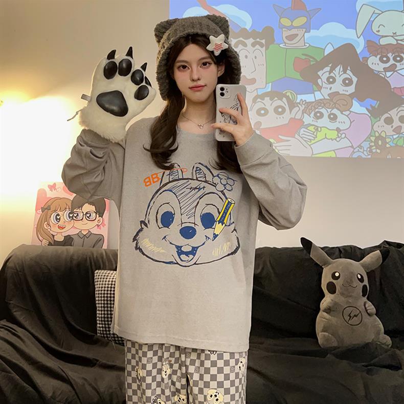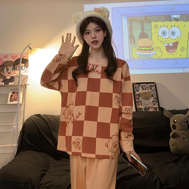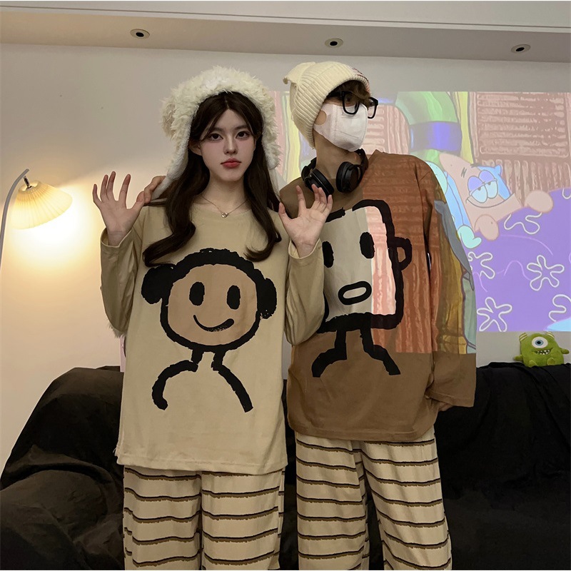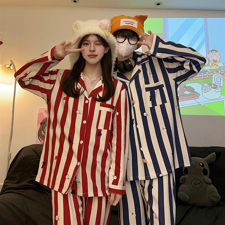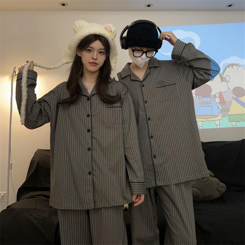 Матча зеленый свежий простой панды хлопчатобумажная пара пижама женская весна и осень длинный рукав костюм мужской большой размер домашней одежды