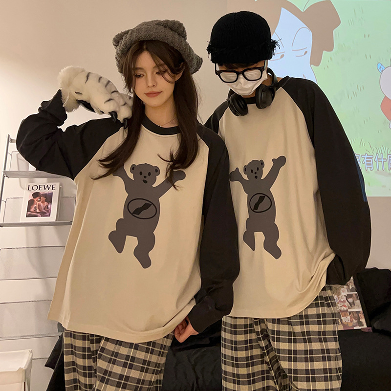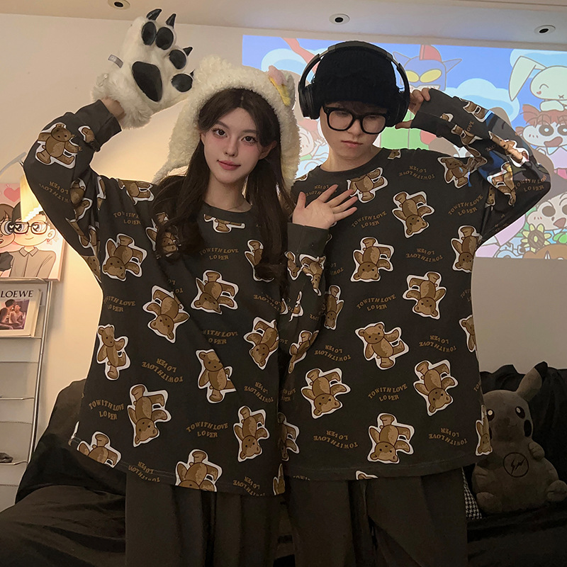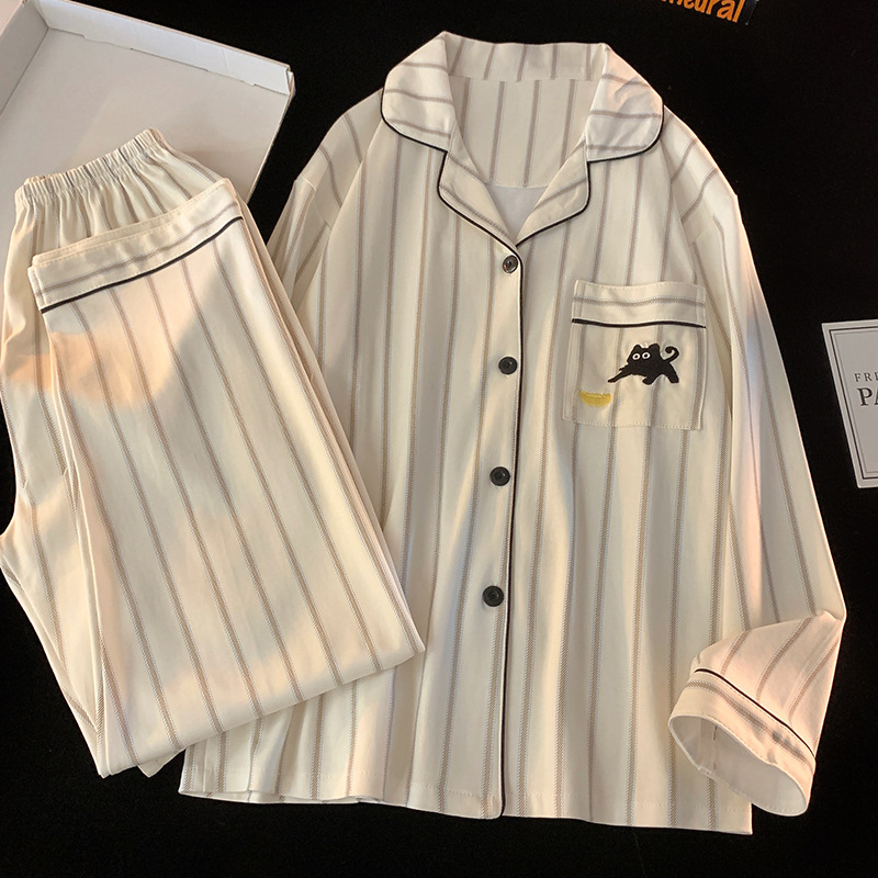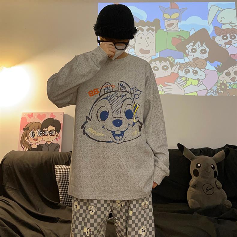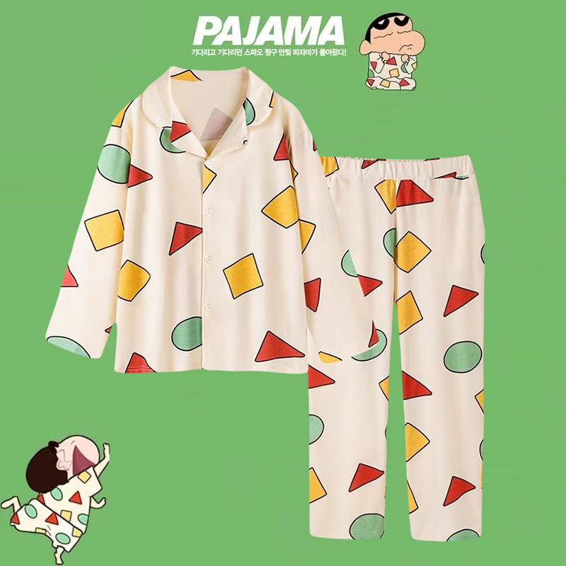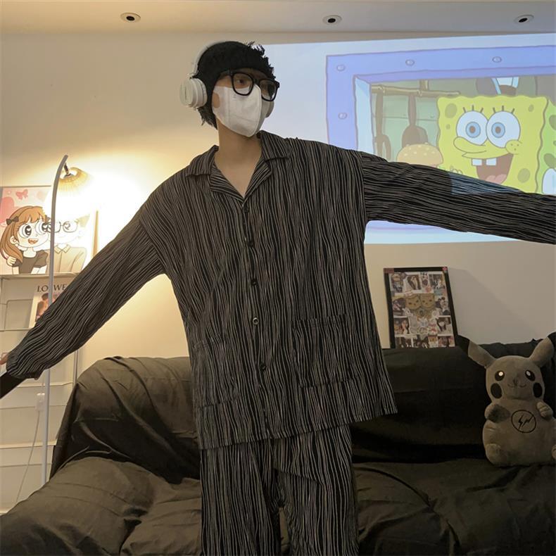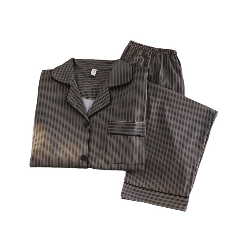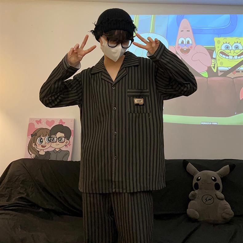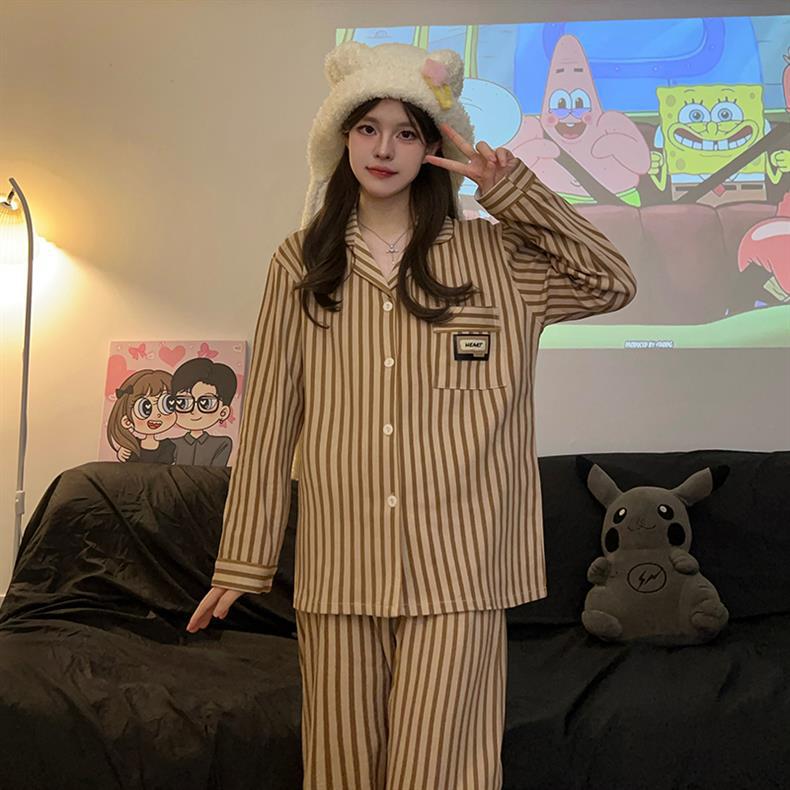 Матча зеленый свежий простой панды хлопчатобумажная пара пижама женская весна и осень длинный рукав костюм мужской большой размер домашней одежды