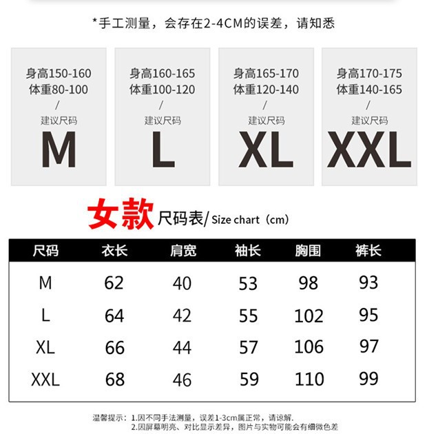 Женский размер M 40-50kg одежда; Женский размер L 50-60kg одежда; Женский размер XL 60-67.5kg одежда; Женский размер 2XL 65-80kg одежда; Мужской размер L 45-60kg одежда; Мужской размер XL 62.5-70kg одежда; Мужской размер 2XL 70-80kg одежда; Мужской размер 3XL 80-100kg одежда