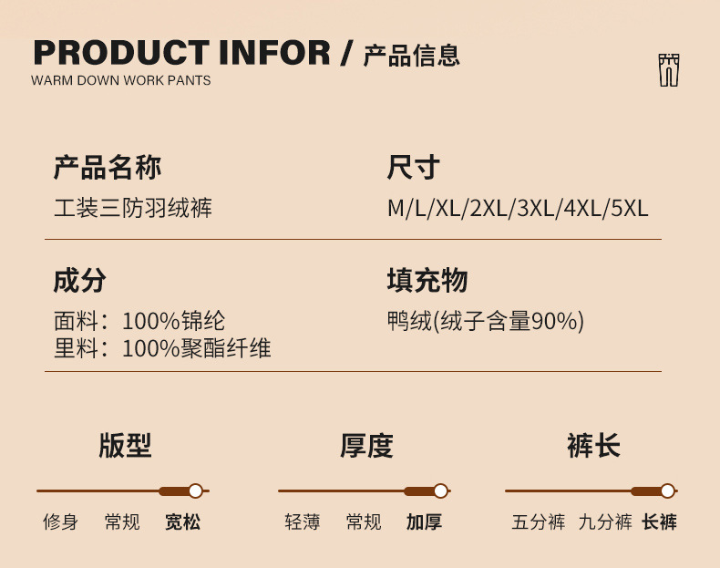 Трансграничные пуховые штаны мужского графена нагреваются и утолщены, чтобы согреться