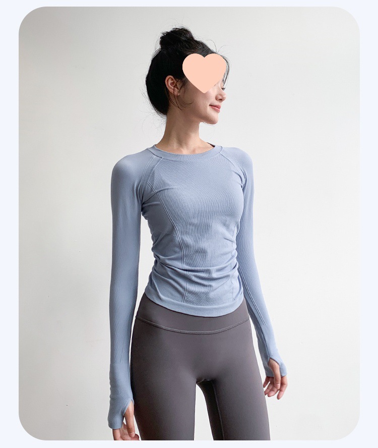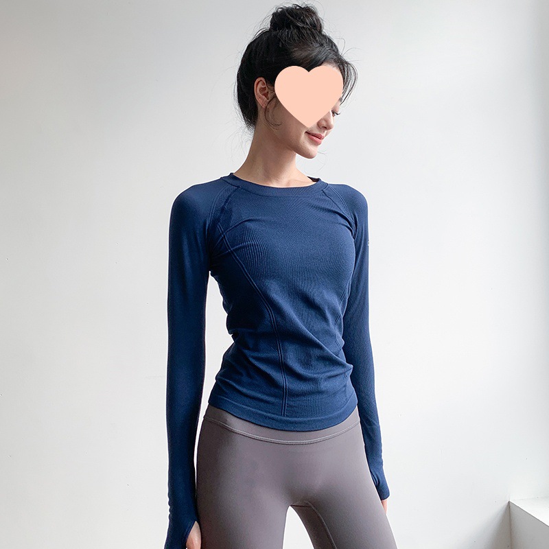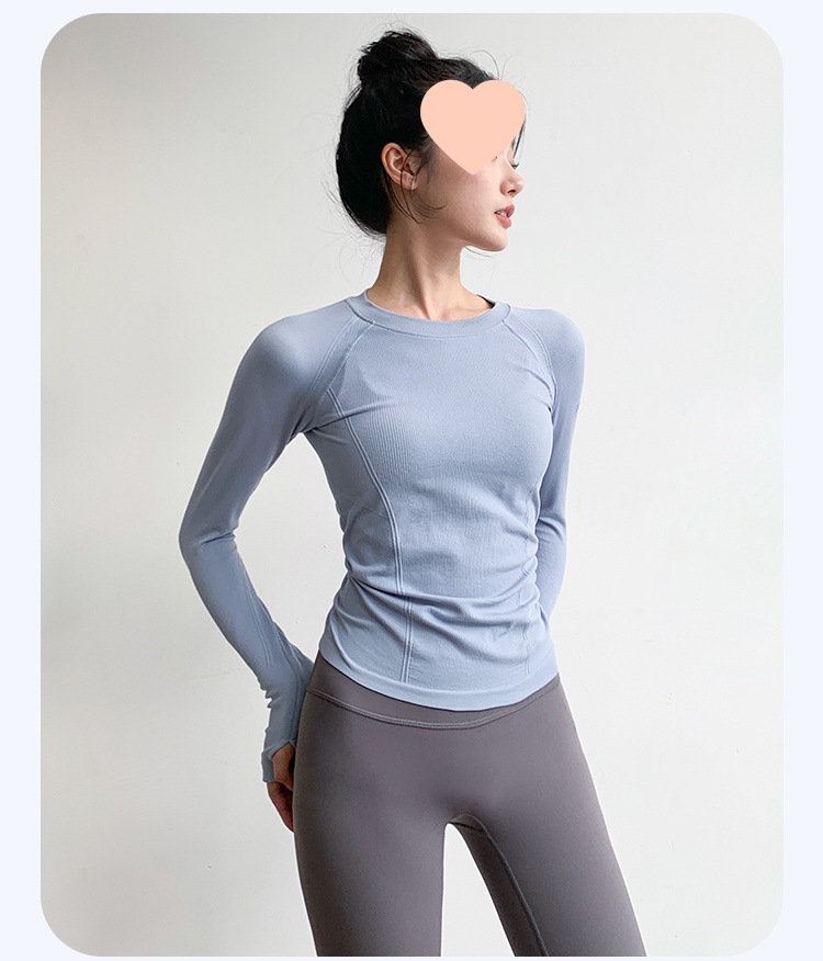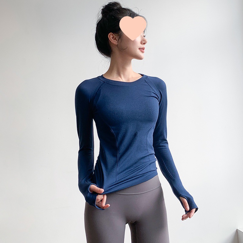 Одежда для йоги для женщин, с круглым вырезом, облегающая, высокоэластичная, для похудения, с длинными рукавами, профессиональная одежда для бега, быстросохнущая одежда для фитнеса, осенние и зимние стили.