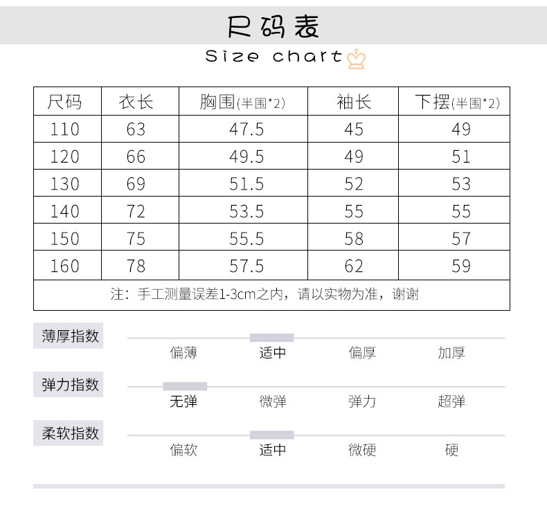 110cm; 120cm; 130cm; 140cm; 150cm; 160cm