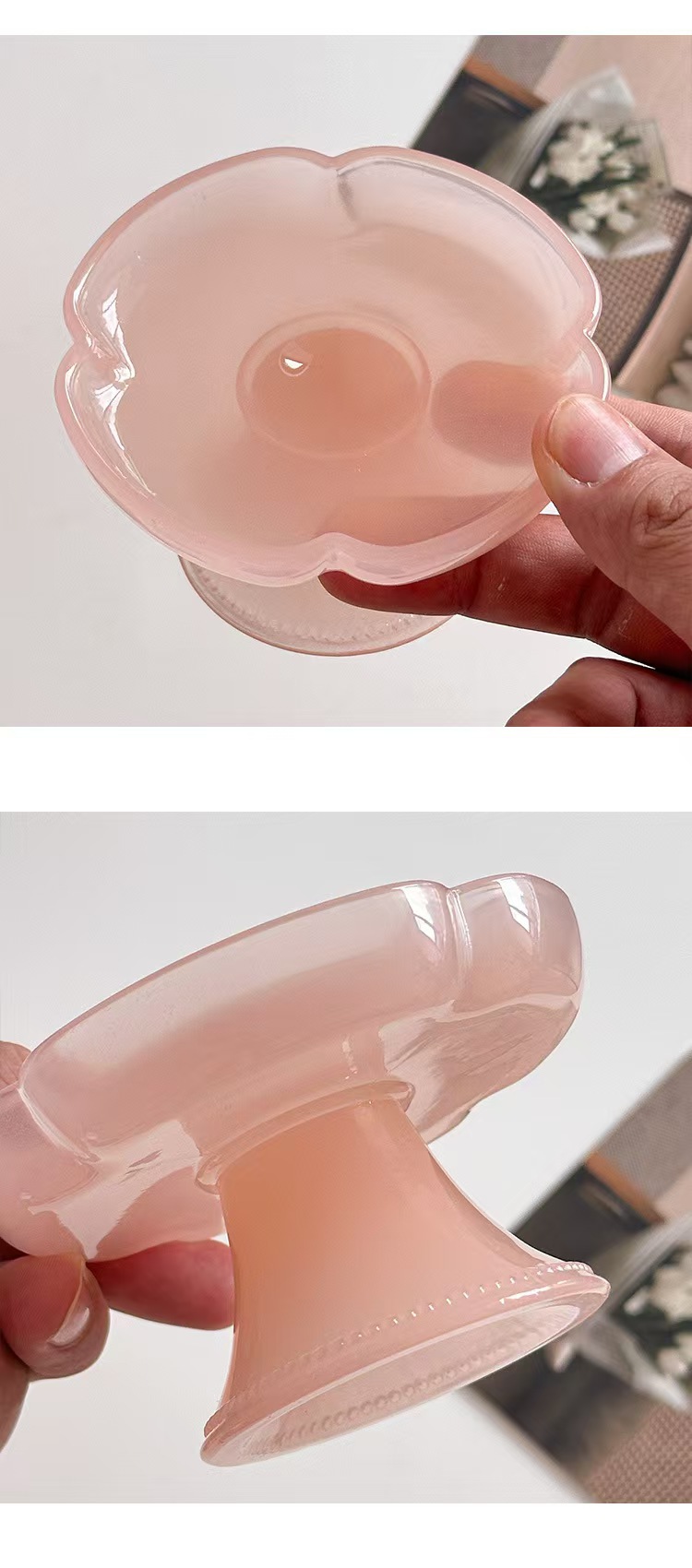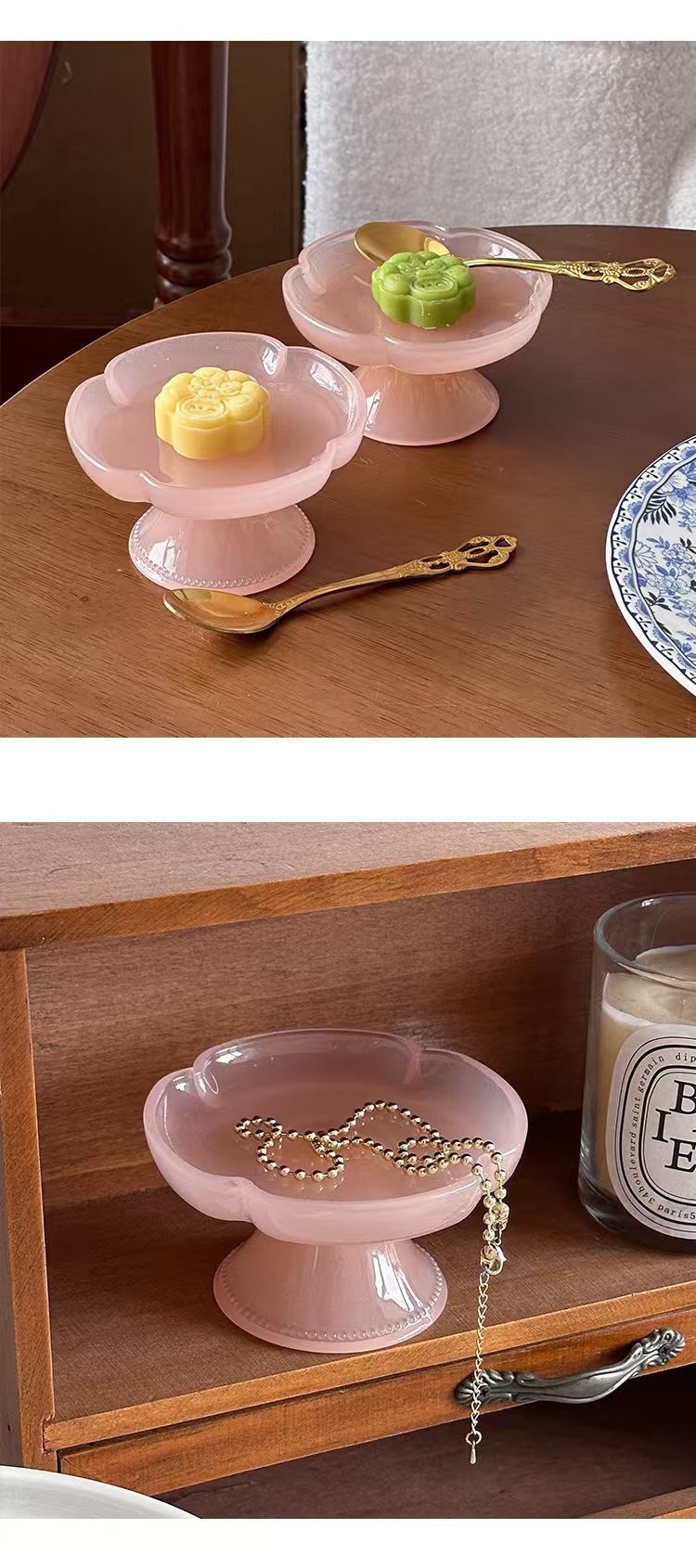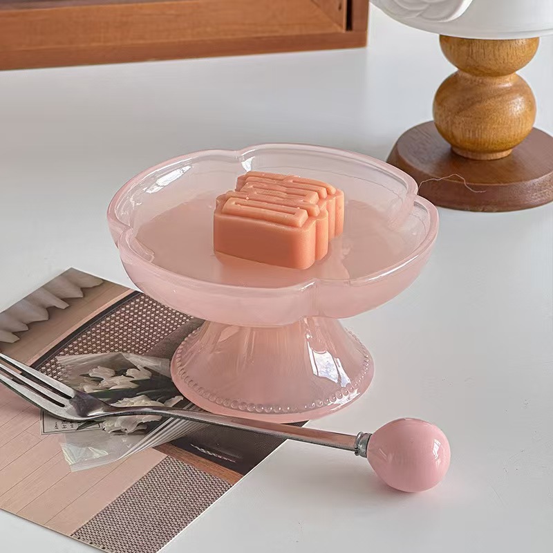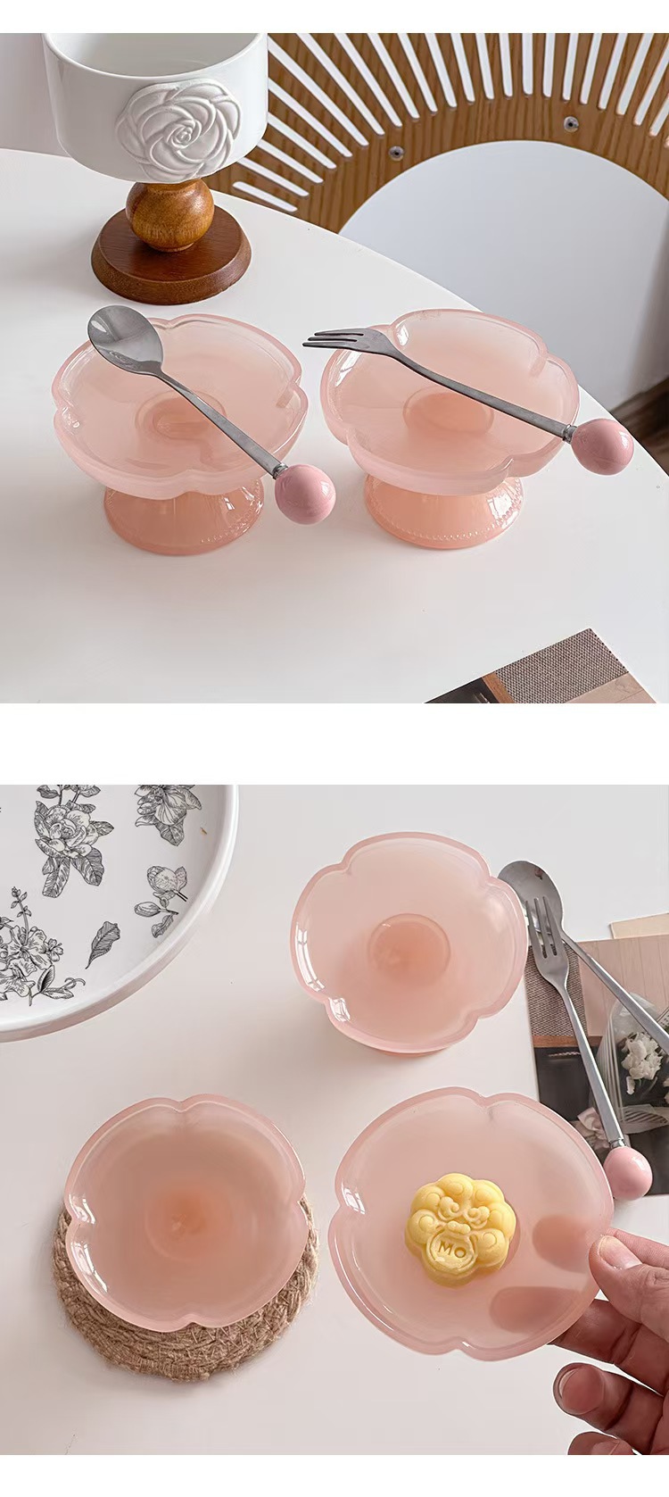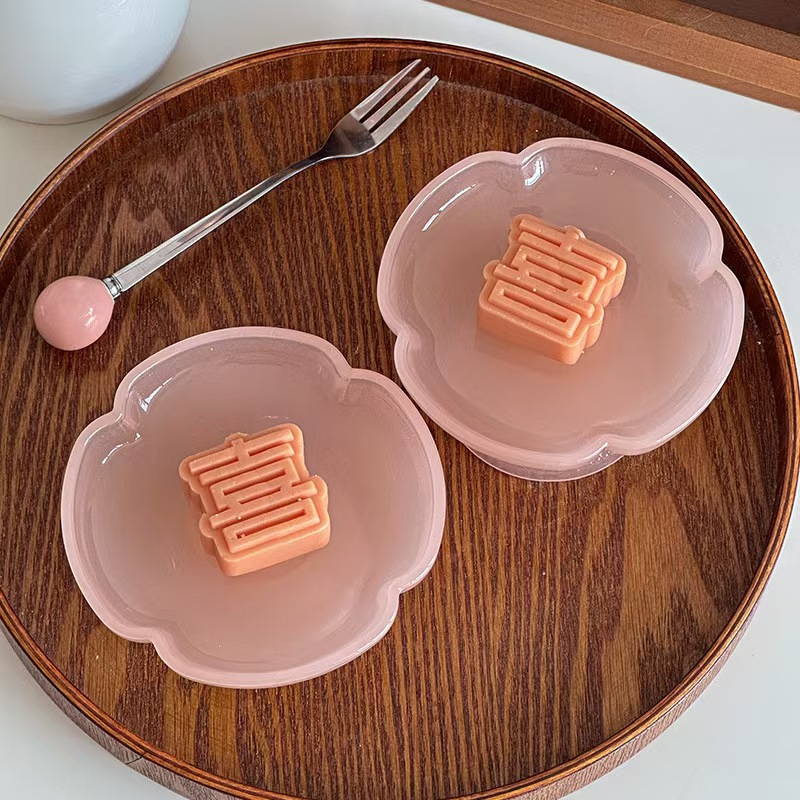 Десертная тарелка из зеленого нефрита; Десертная тарелка из розового нефрита