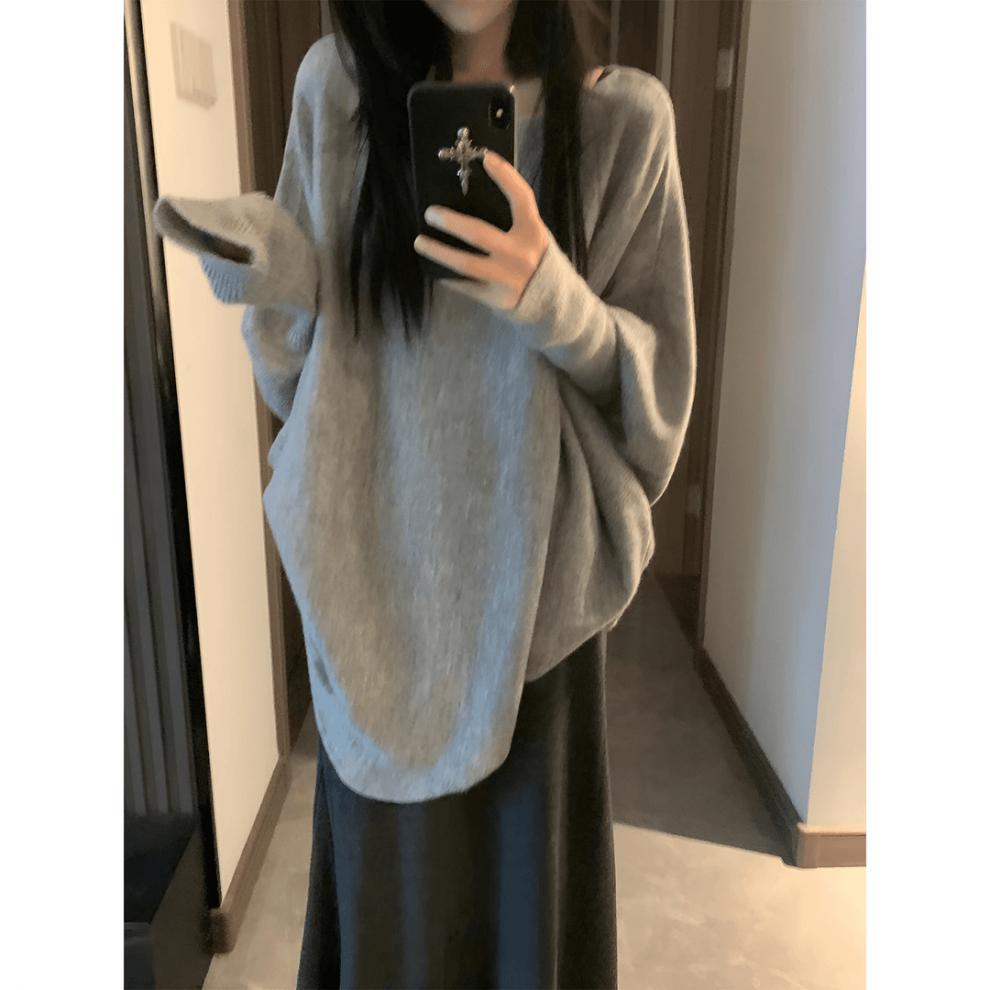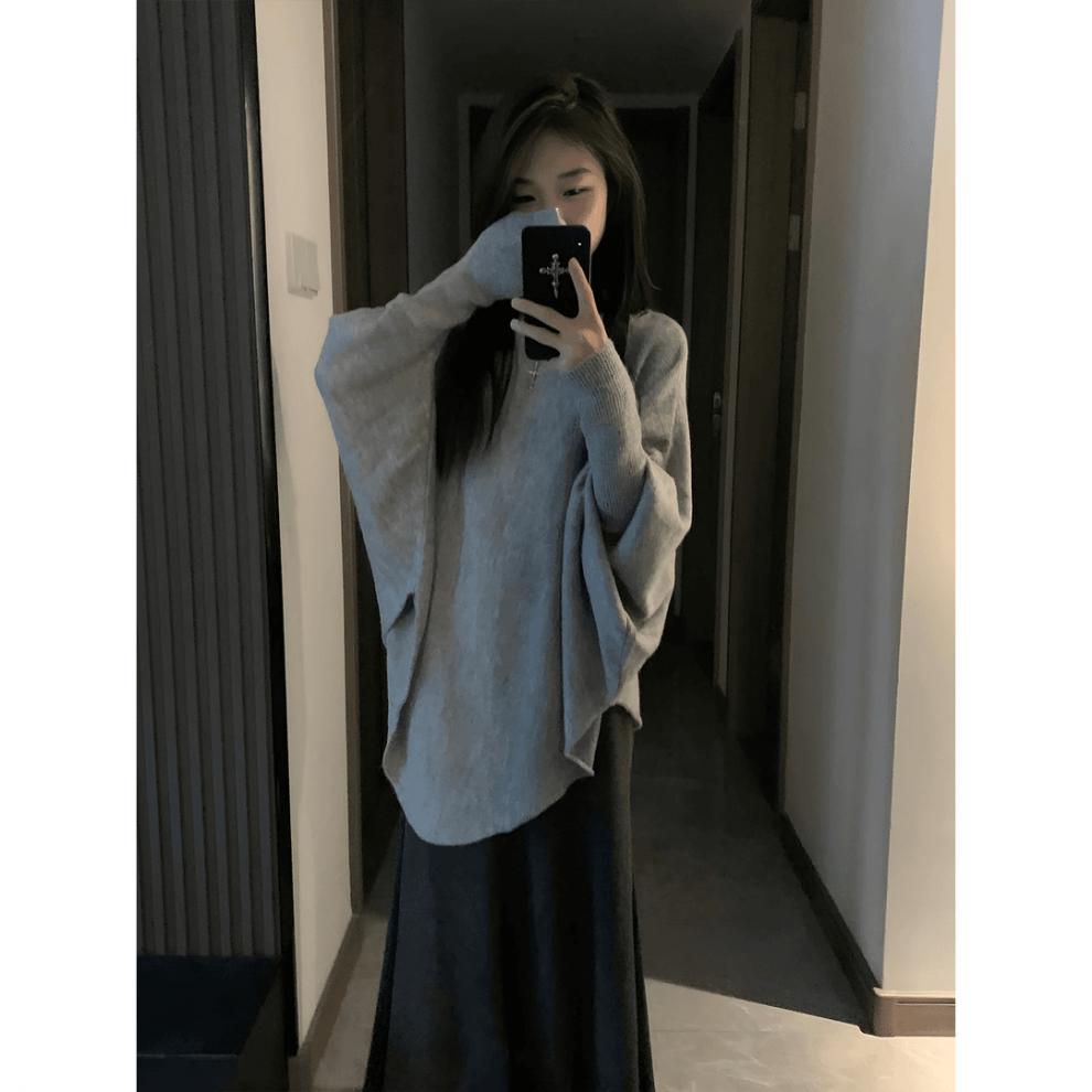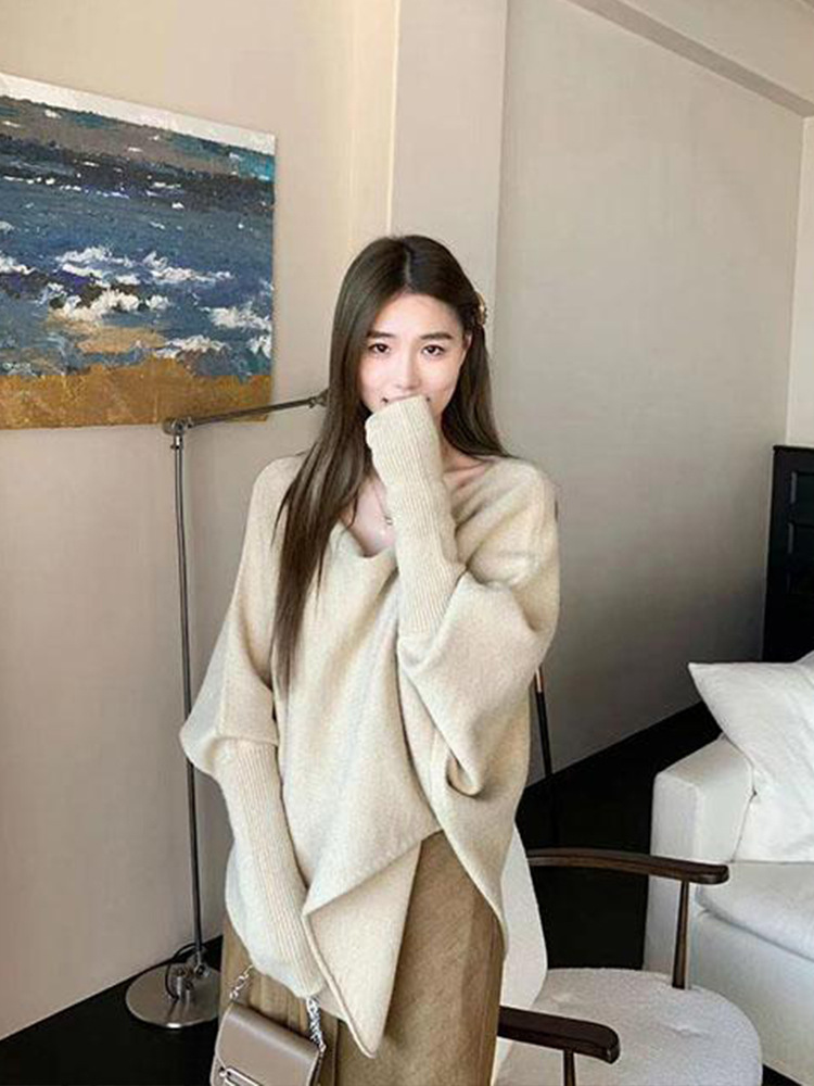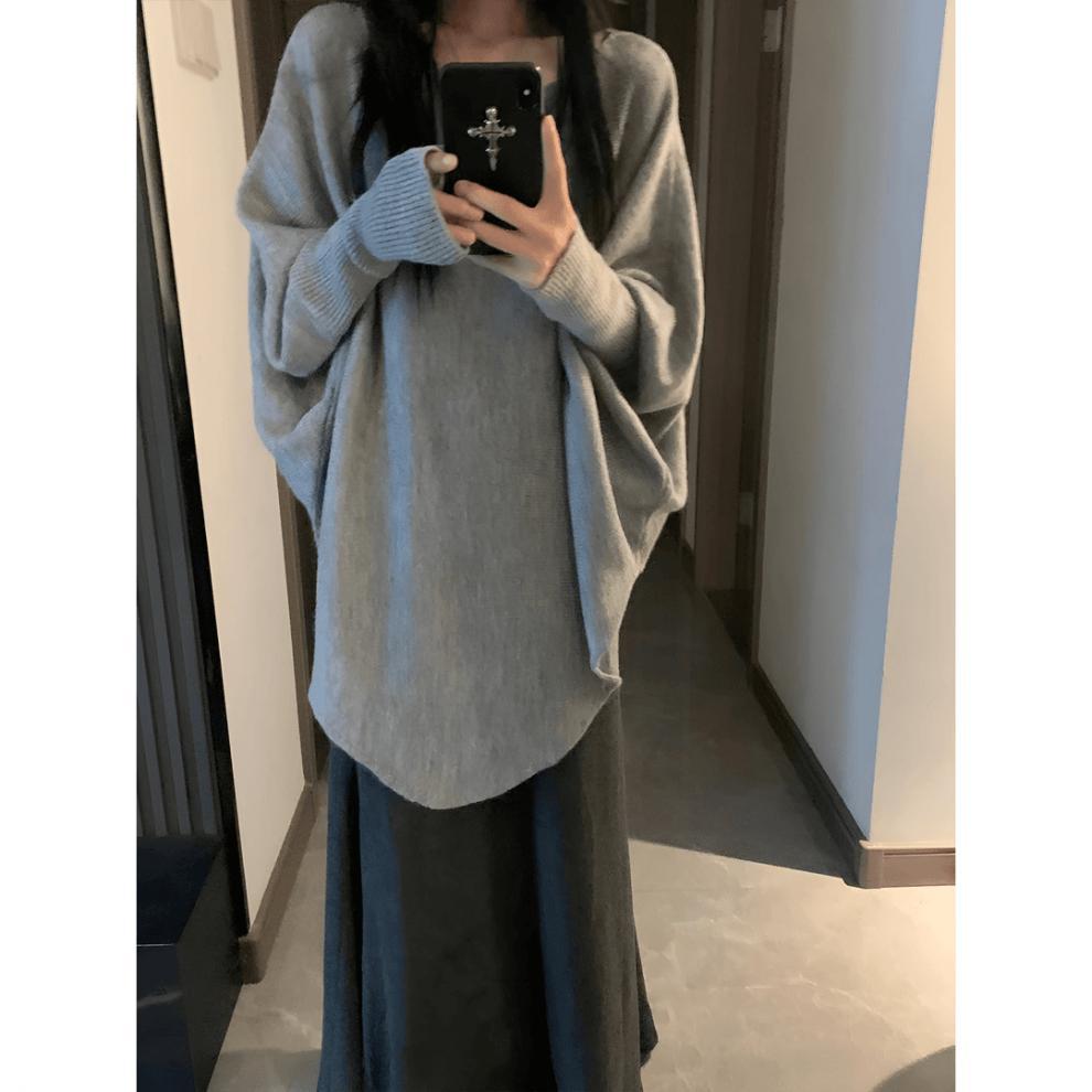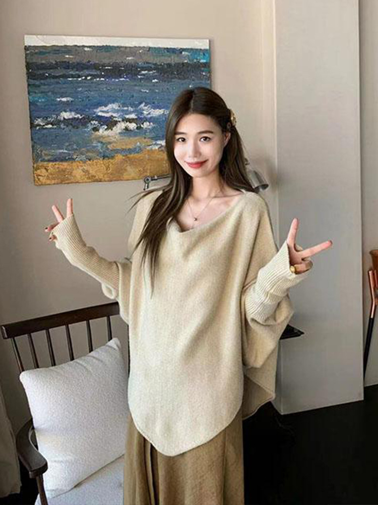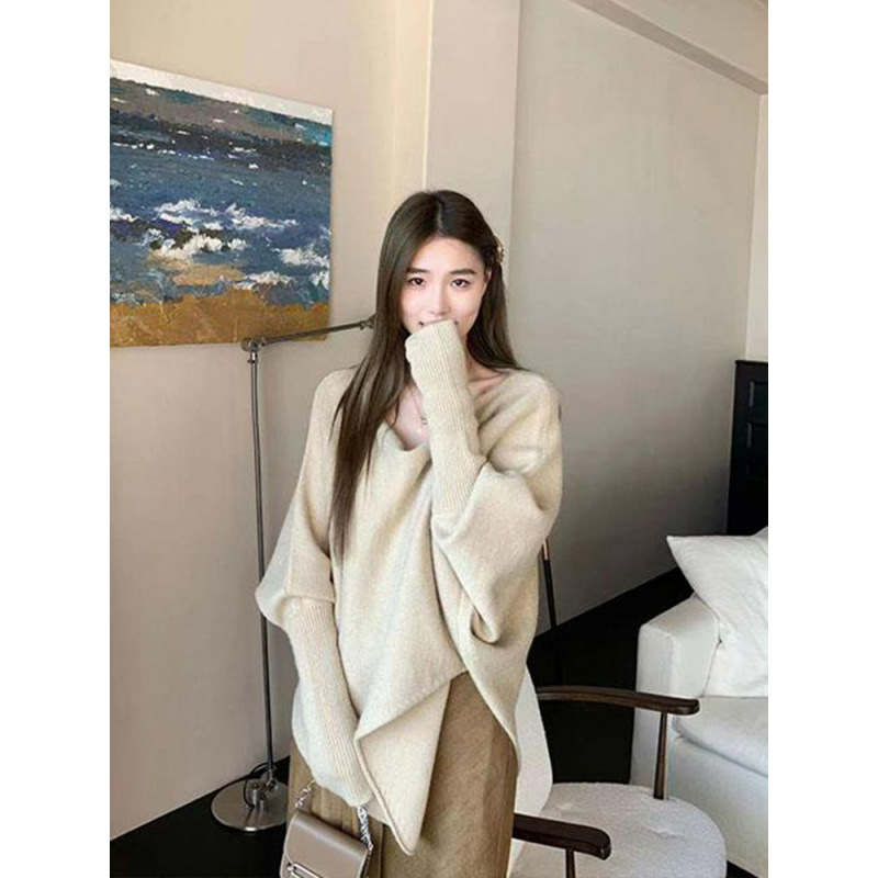 Беременная женщина свитер летучая мышь рукава нерегулярный вязаный свитер женская ранняя осень 2024 новый свободный ленивый топ с длинными рукавами