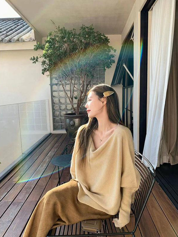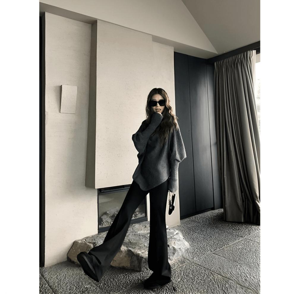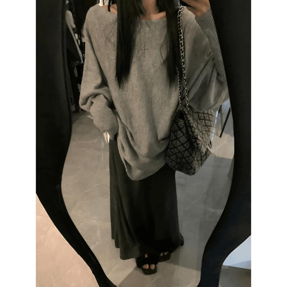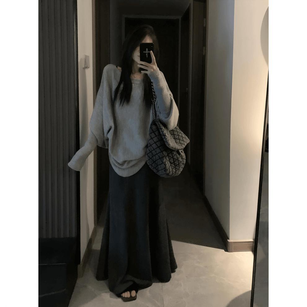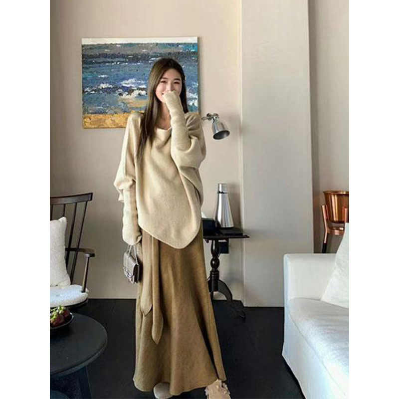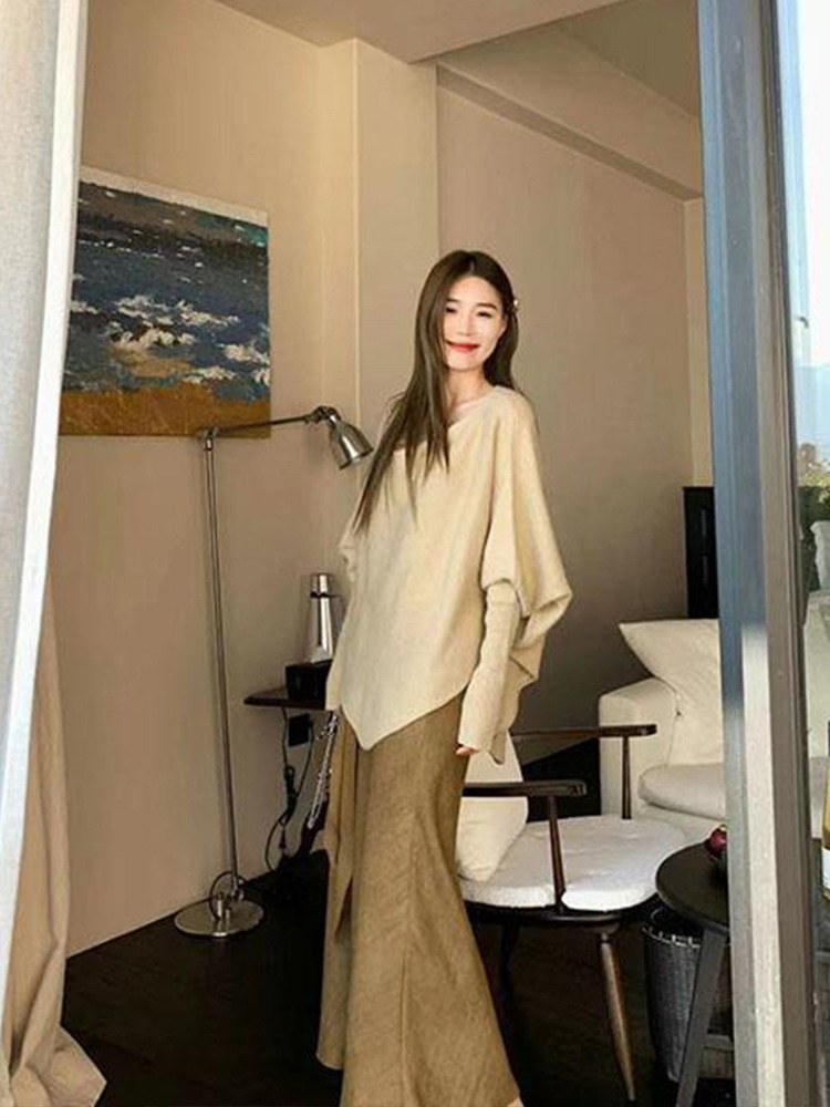 Беременная женщина свитер летучая мышь рукава нерегулярный вязаный свитер женская ранняя осень 2024 новый свободный ленивый топ с длинными рукавами