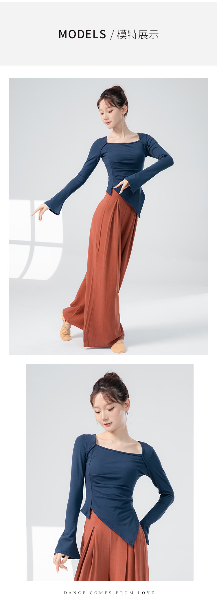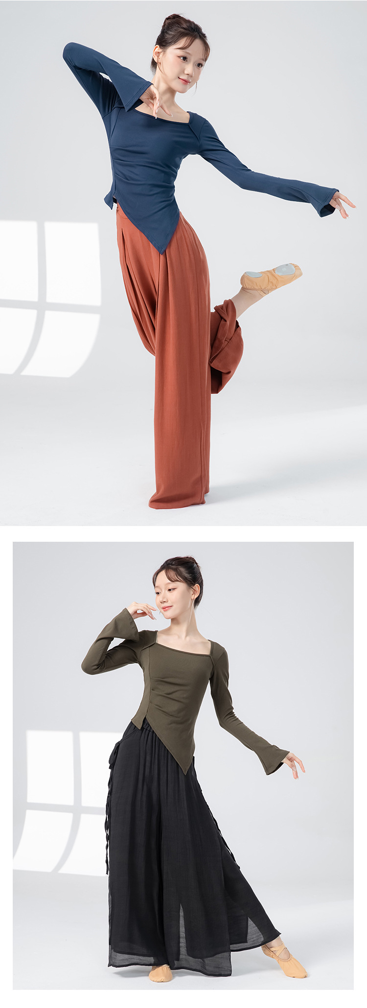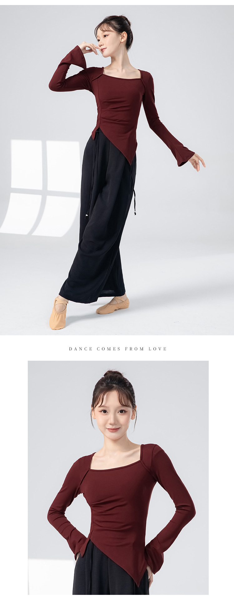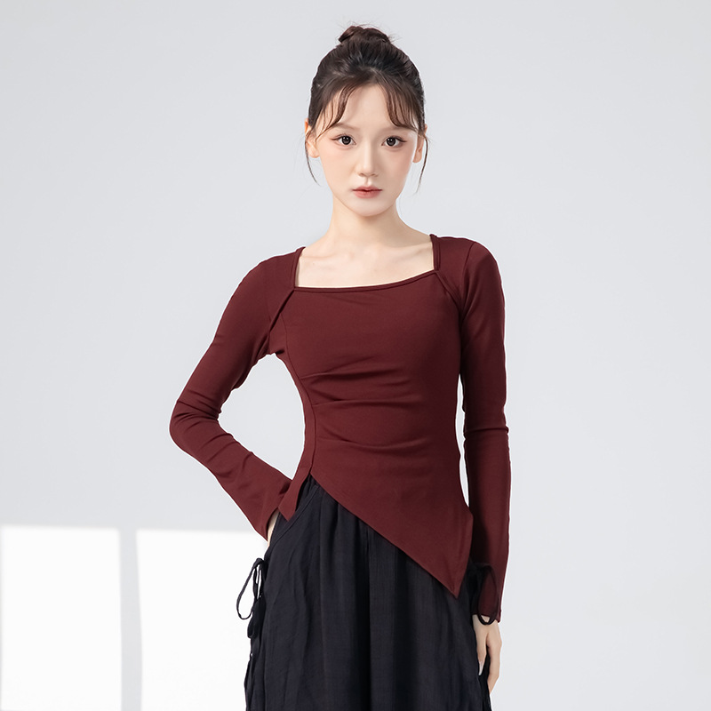 Современная одежда для занятий танцами для женщин, новая танцевальная одежда с длинными рукавами и квадратным вырезом, облегающий крой, классический повседневный комбинезон для танцев.