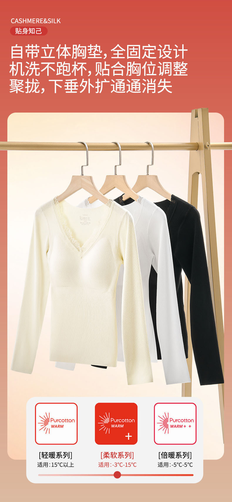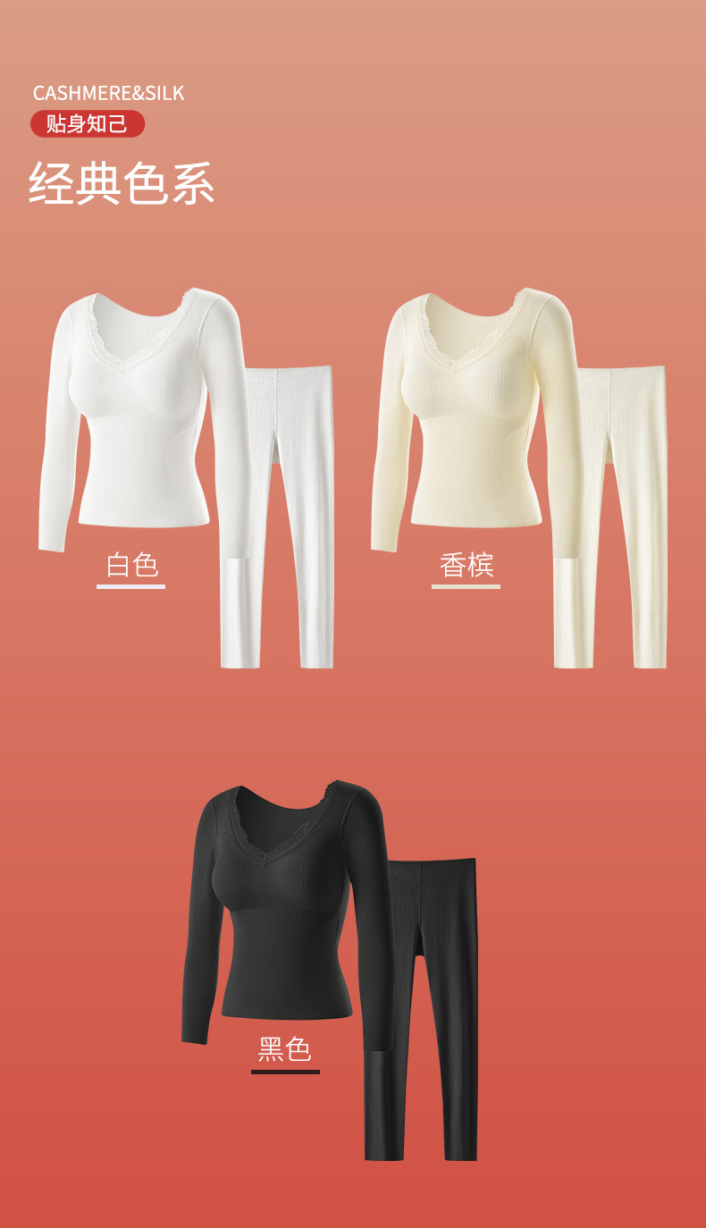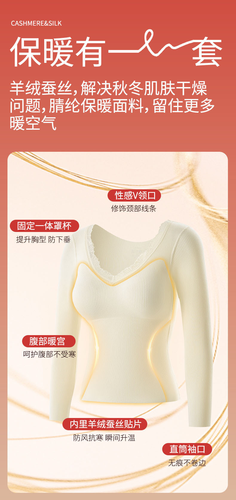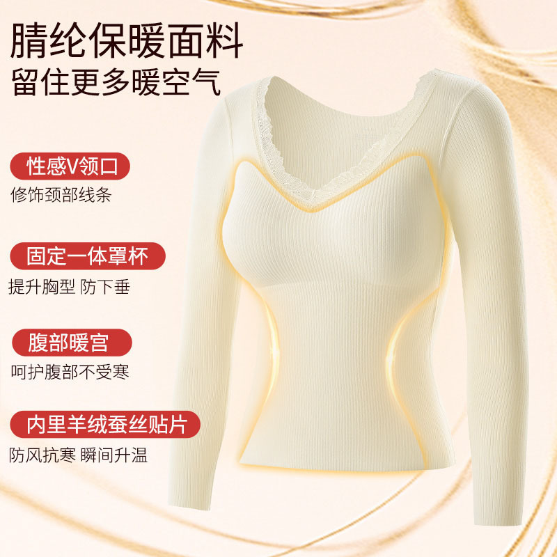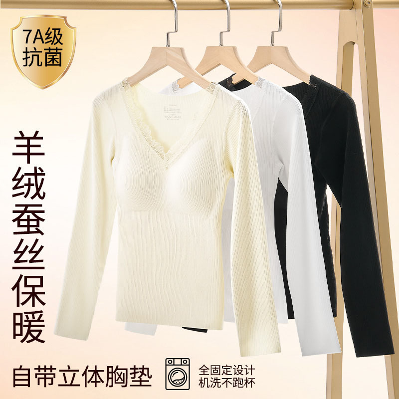 Кашемировый шелк термобелье женское бархат утолщенная осенняя одежда 2024 Осень зима 7A антибактериальный маленький бюстгальтер