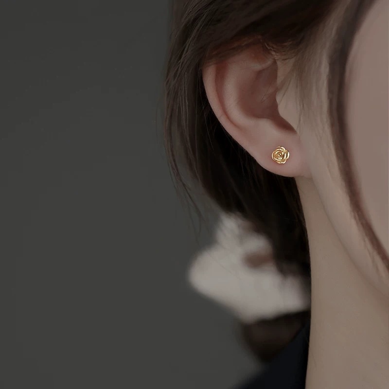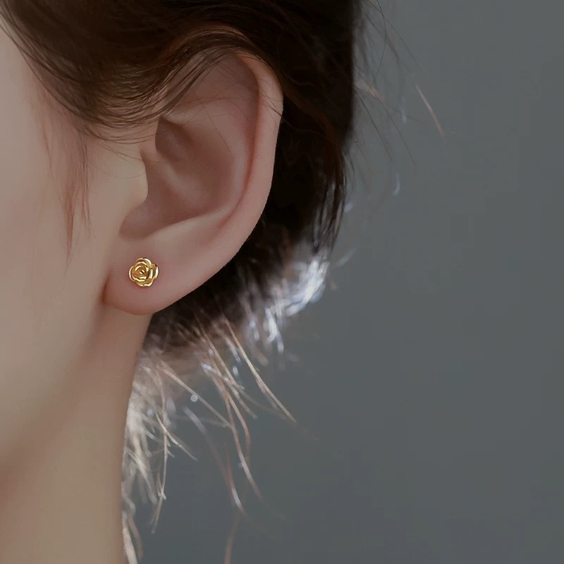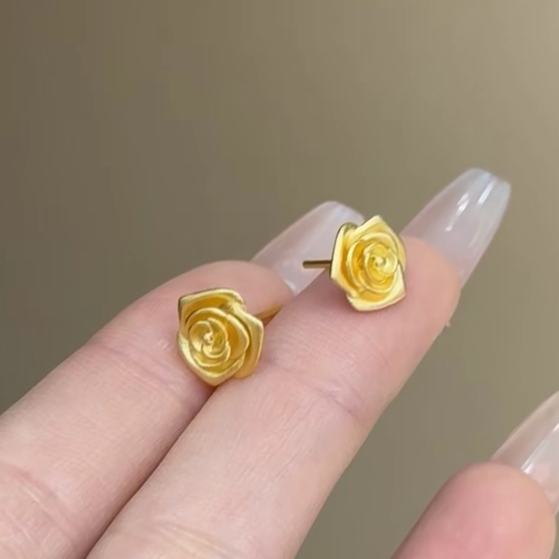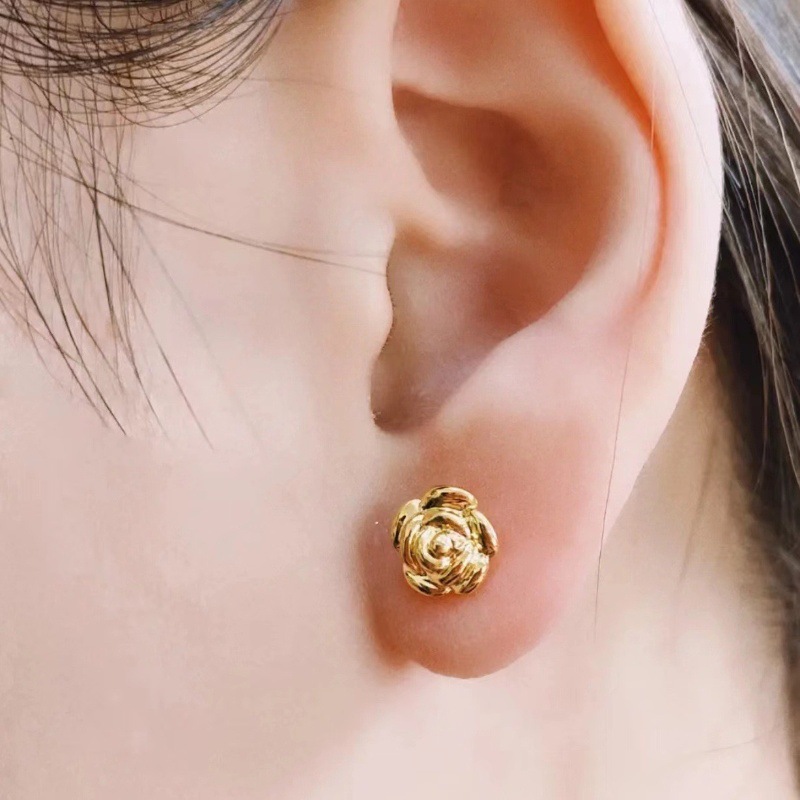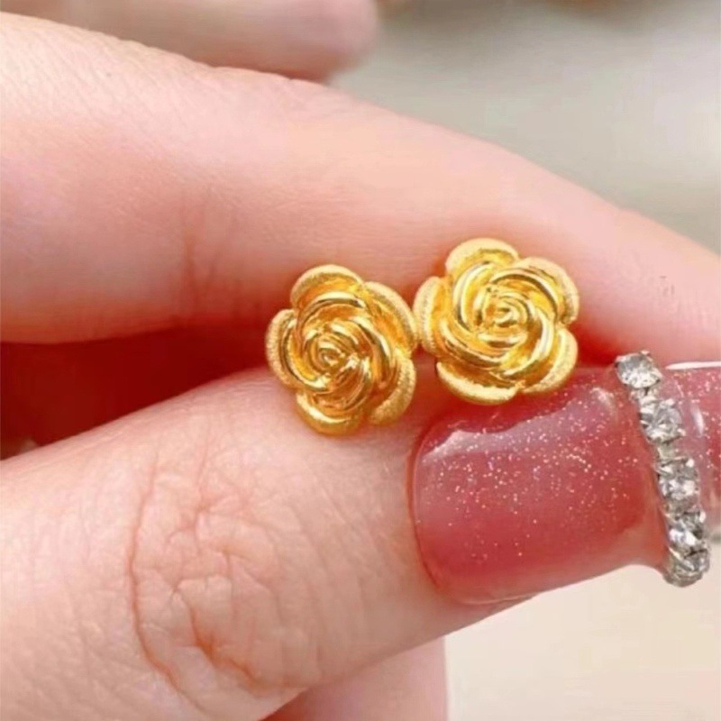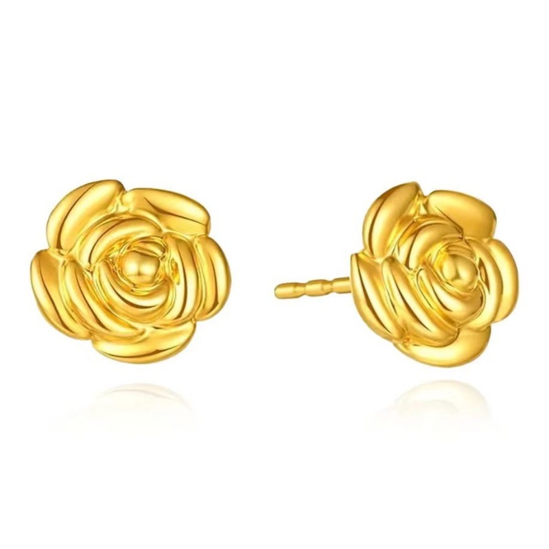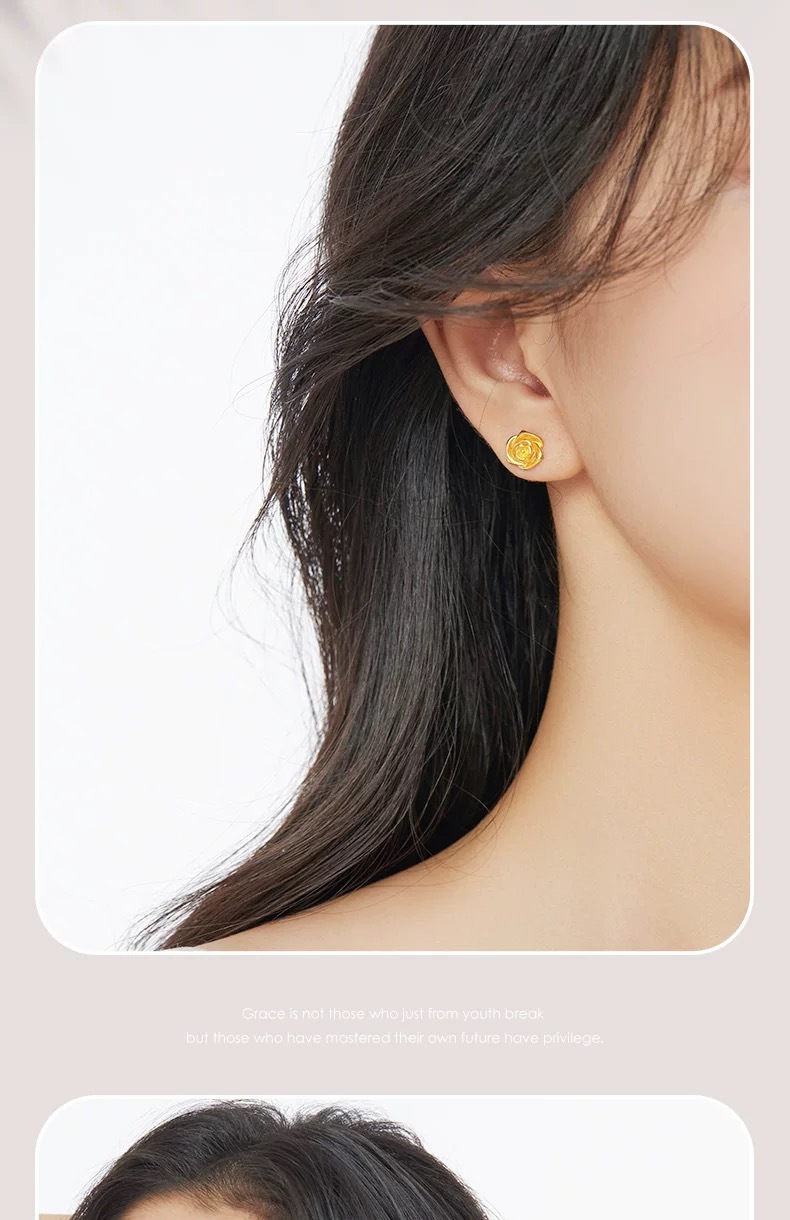 Серьги из золота 18 карат с розами, цветное золото au750, ювелирные изделия с цветочным орнаментом для прокола ушей, двойной прокол, розовое золото