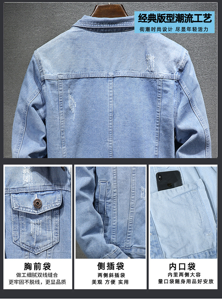 Тенденция сцепления джинсовое пальто мужская весна и осень мода дикий повседневный пиджак мужской