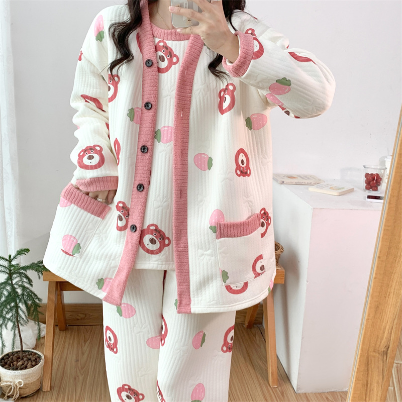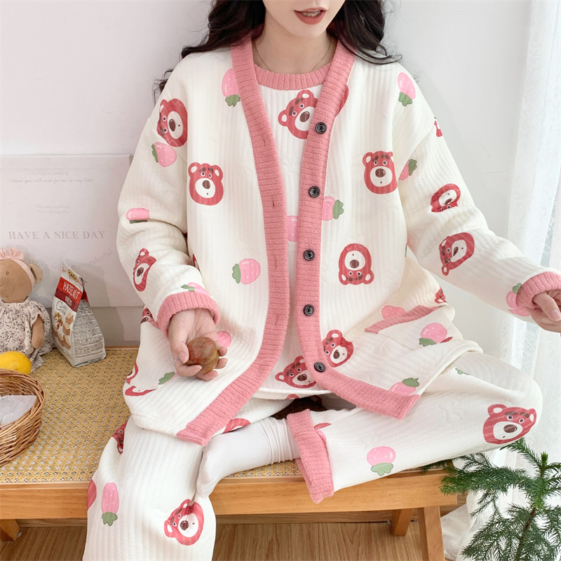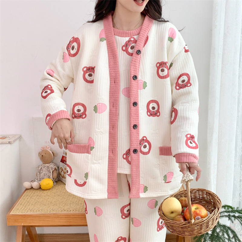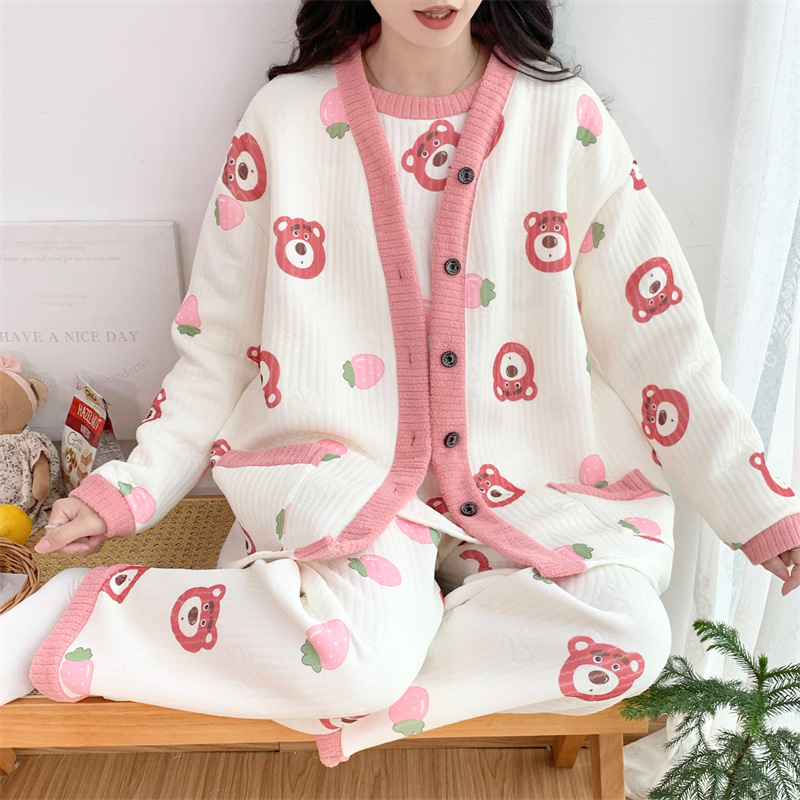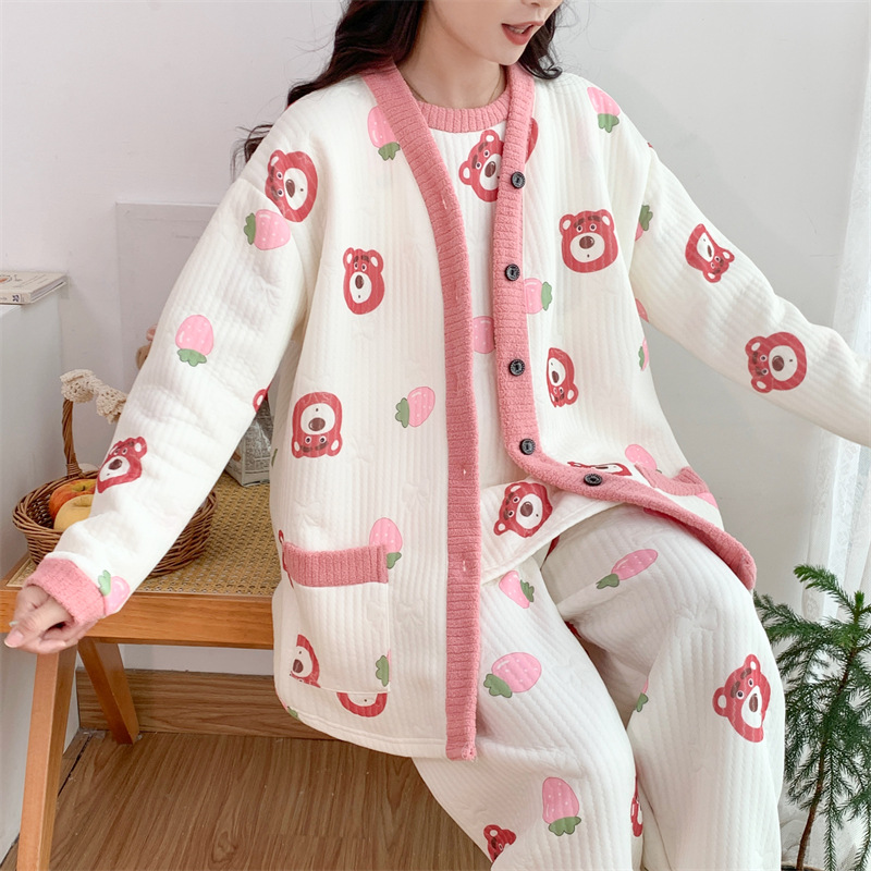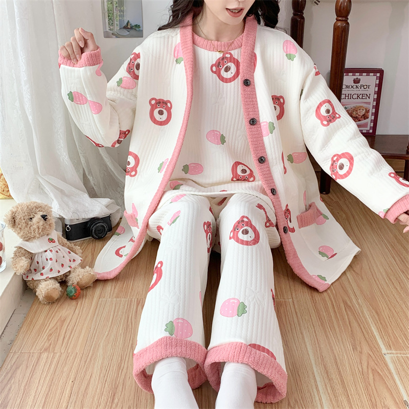 Пижама женский осенний и зимний воздушный хлопок сэндвич сладкий большой размер толстый MM300 кг набор домашней одежды 3042-66