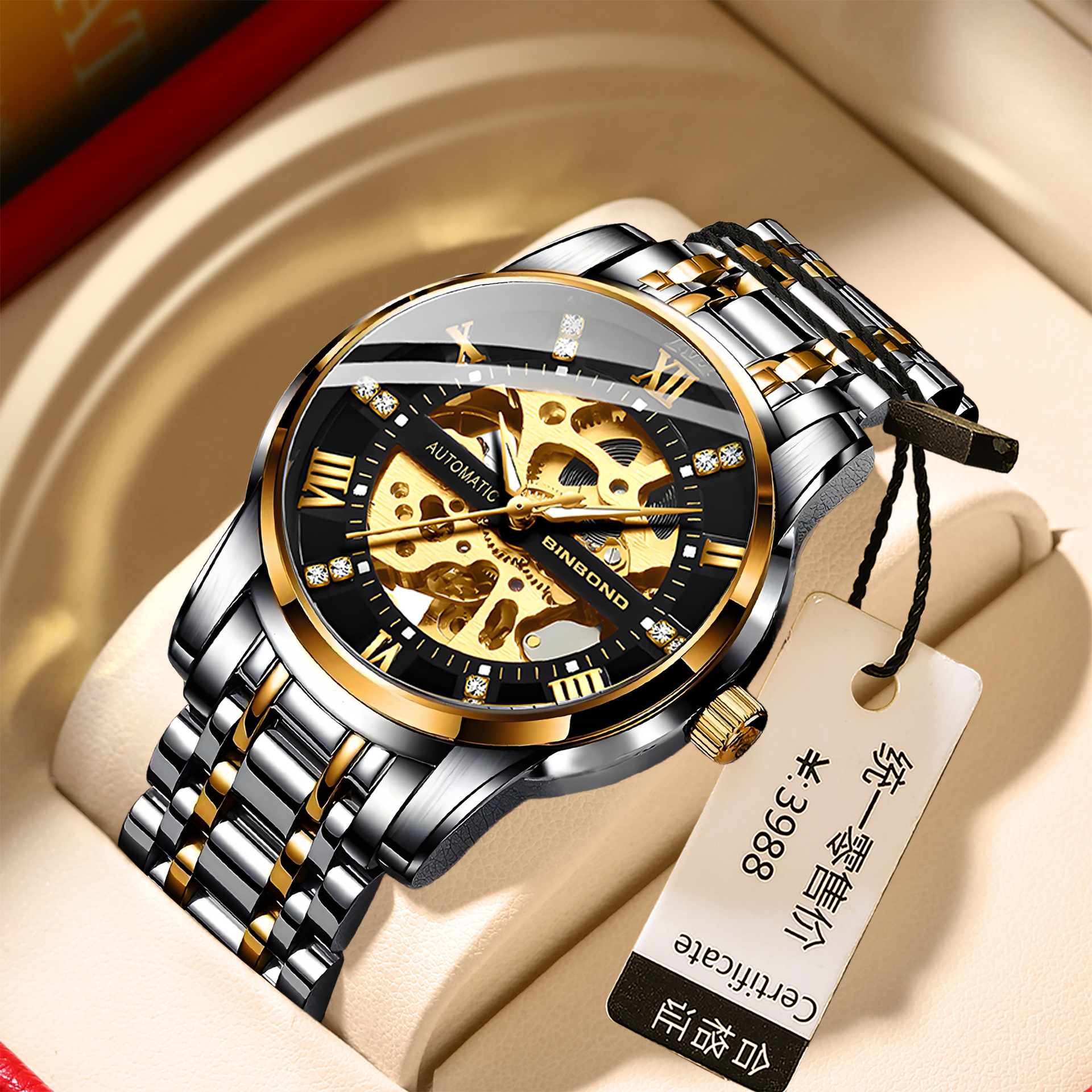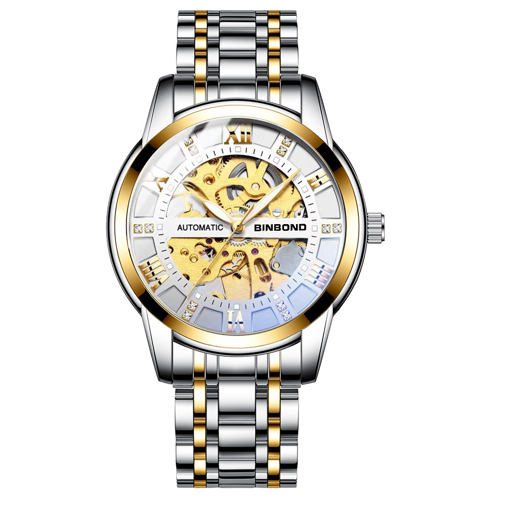 Часы BINBOND Binbang с вырезами, полностью автоматические механические часы, светящиеся модные мужские водонепроницаемые кварцевые часы со стальным ремешком