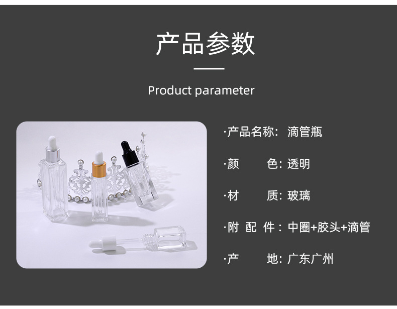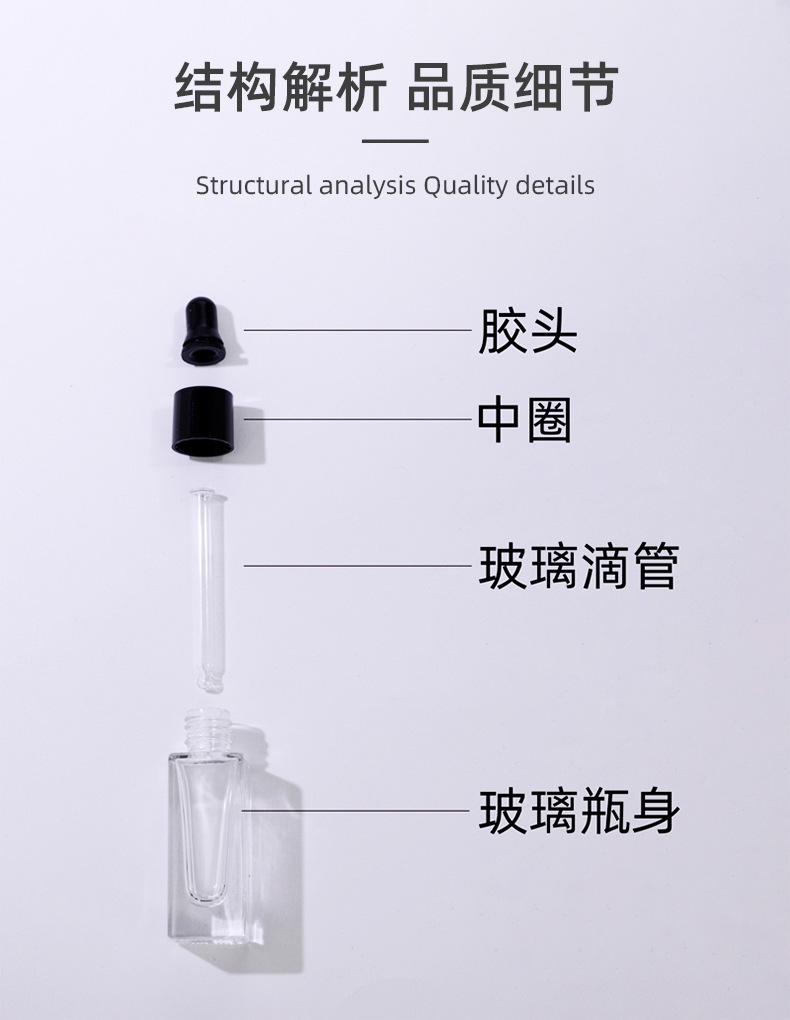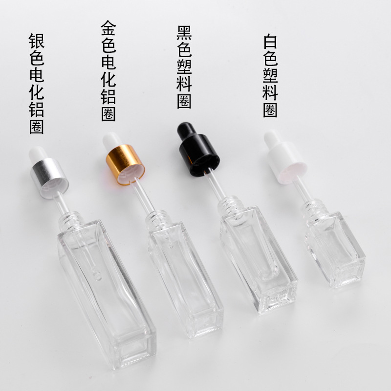 Прозрачный флакон + белое пластиковое кольцо + белый пластиковый наконечник + капельница.; Прозрачный флакон + золотое алюминиевое кольцо + белый пластиковый наконечник + капельница.; Прозрачный флакон + серебряное алюминиевое кольцо + белый пластиковый наконечник + капельница.; Прозрачный флакон + черное пластиковое кольцо + белый пластиковый наконечник + пипетка.