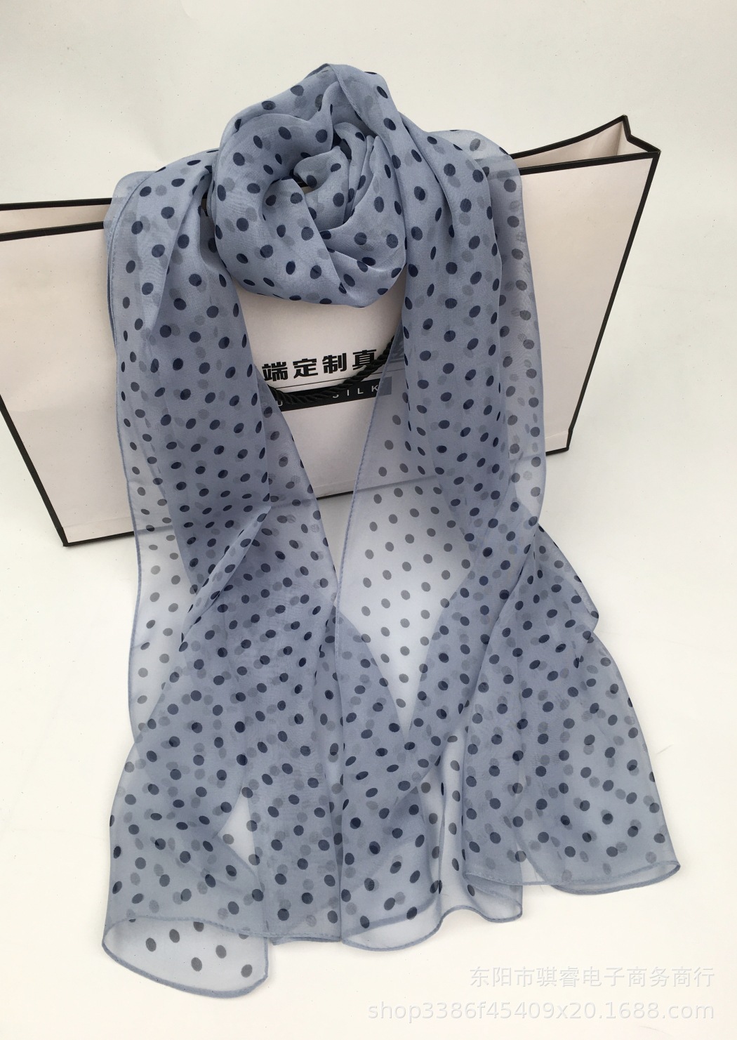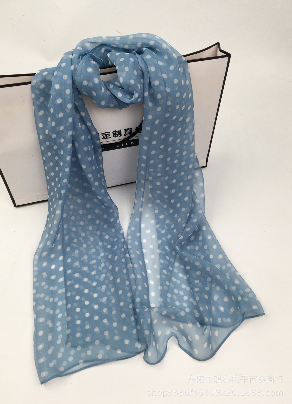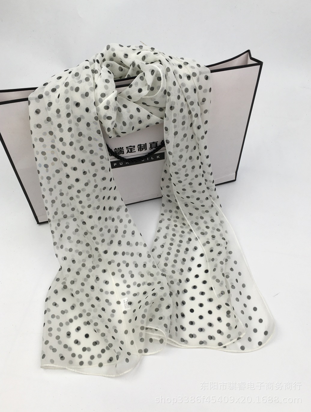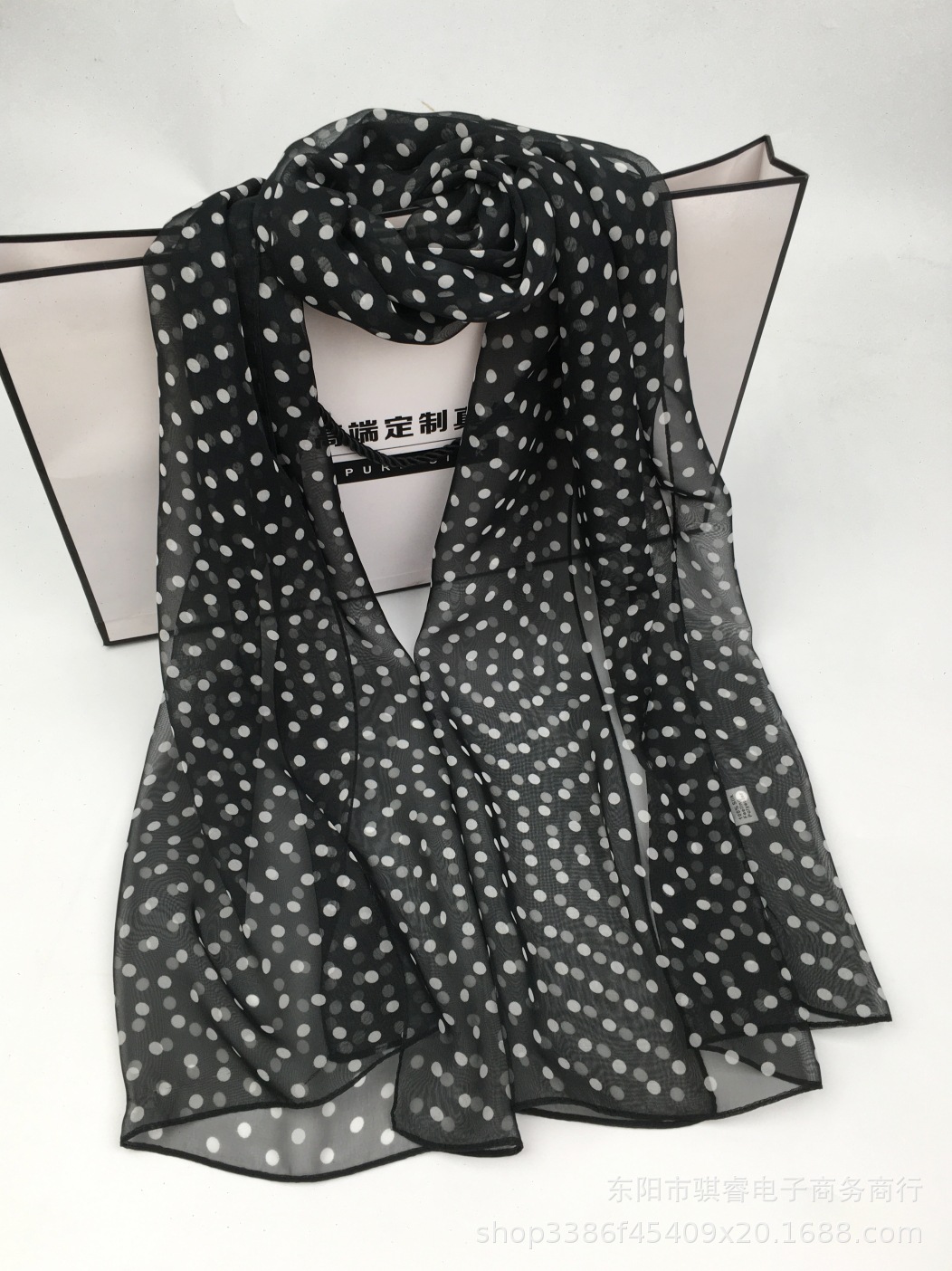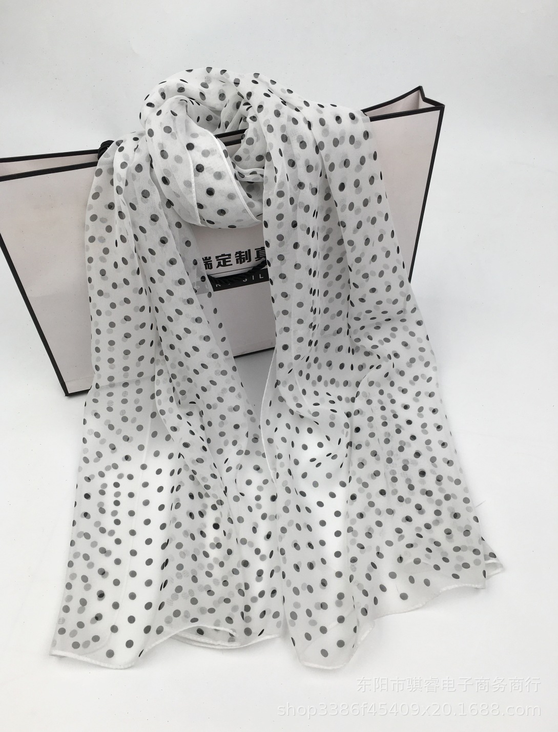 Корейская версия весенне-осеннего и летнего шелкового шарфа модной маленькой волновой точки Jorqi пряжа темпераментная печать трансграничной внешней торговли оптовый шарф в горошек