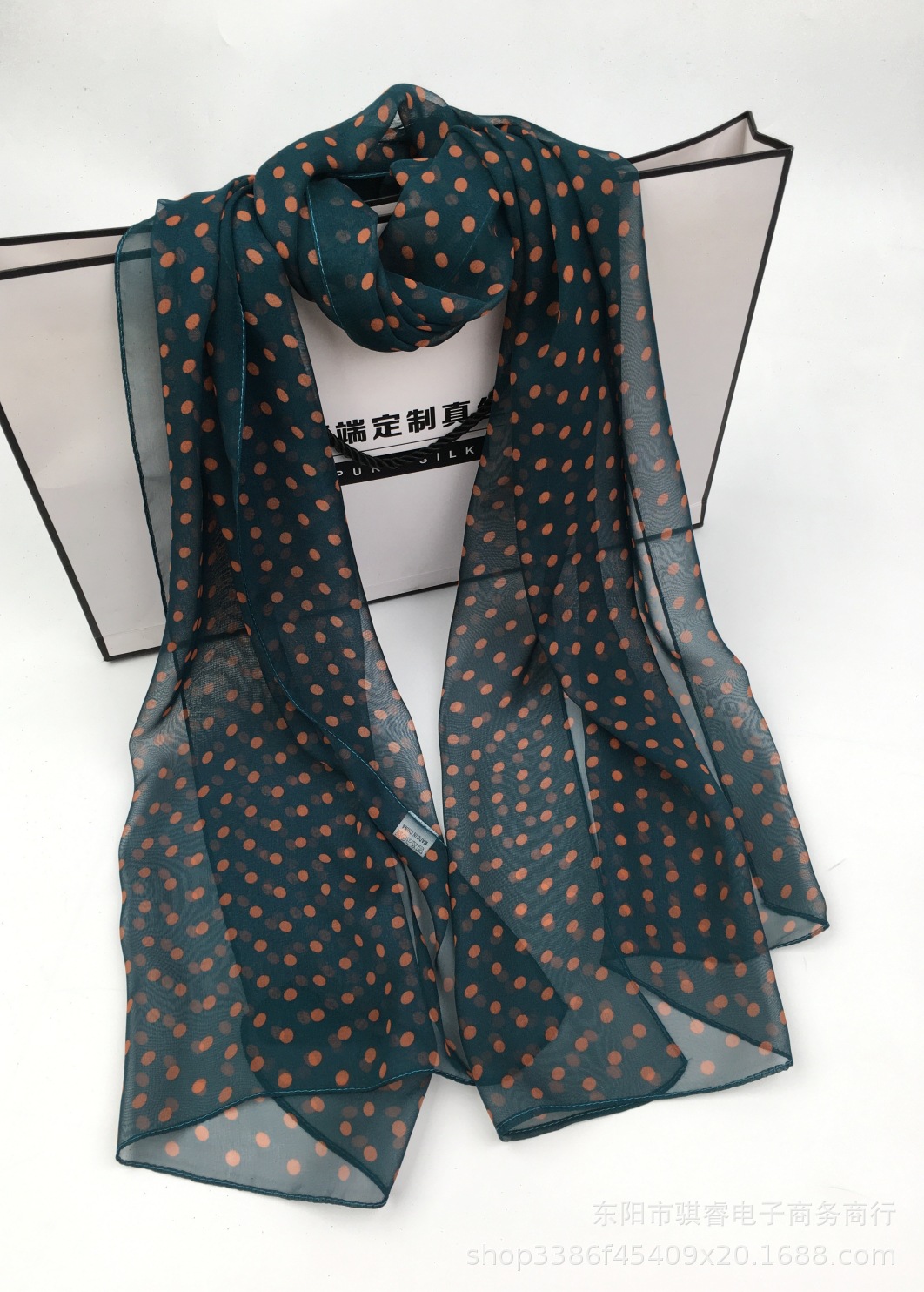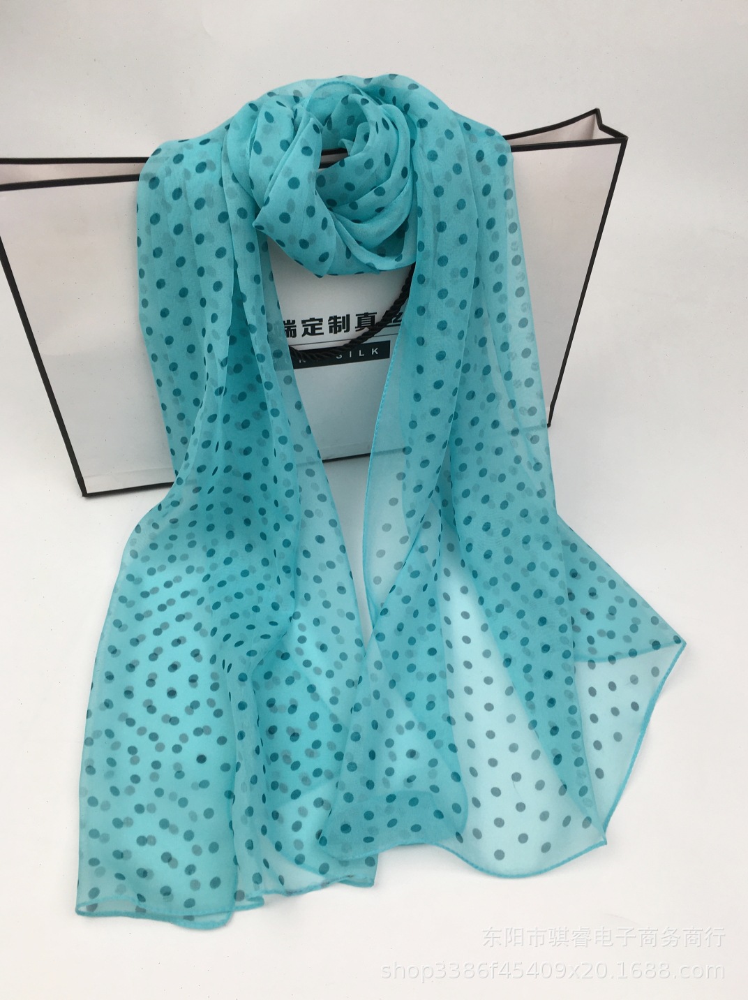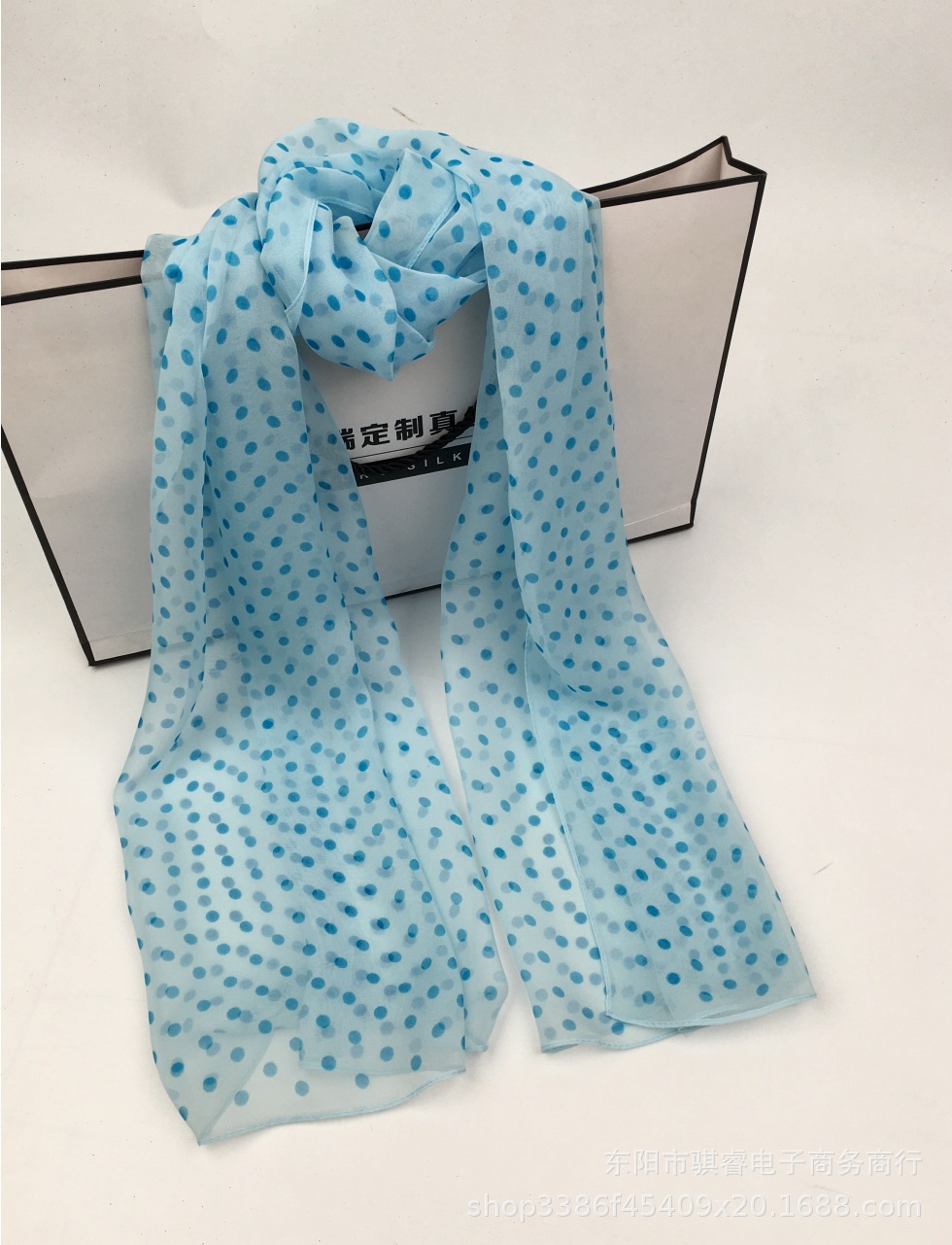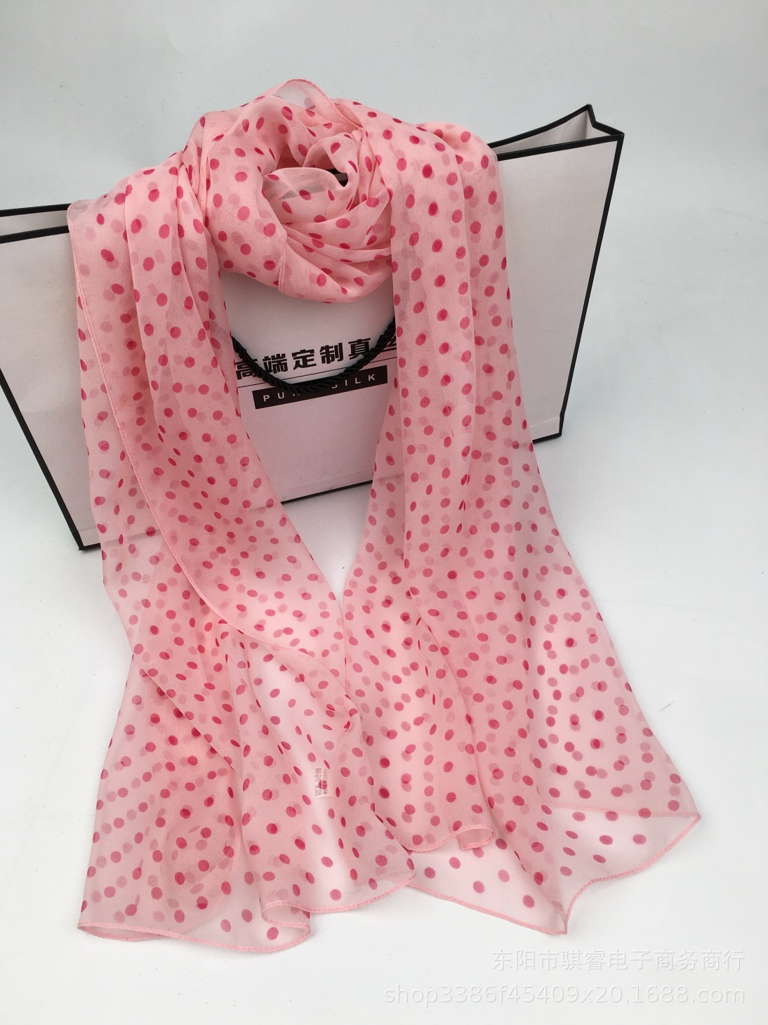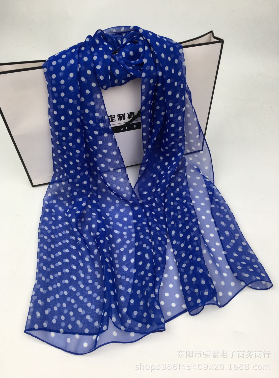 Корейская версия весенне-осеннего и летнего шелкового шарфа модной маленькой волновой точки Jorqi пряжа темпераментная печать трансграничной внешней торговли оптовый шарф в горошек