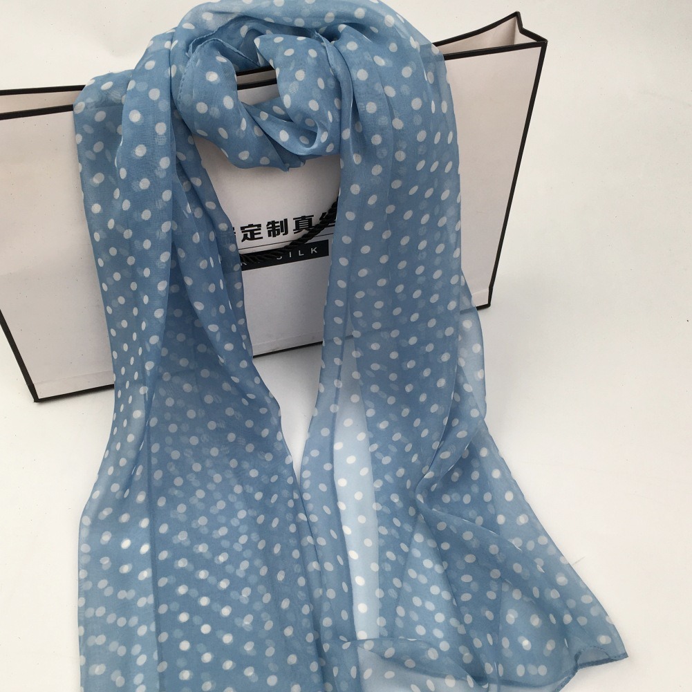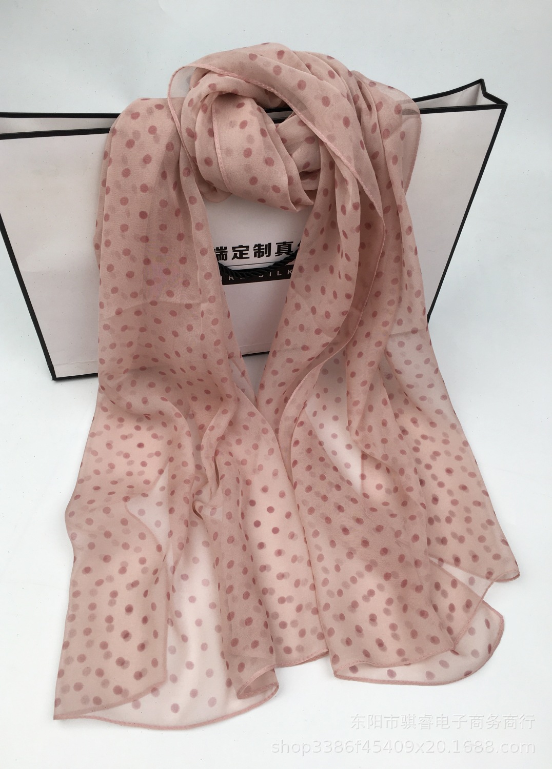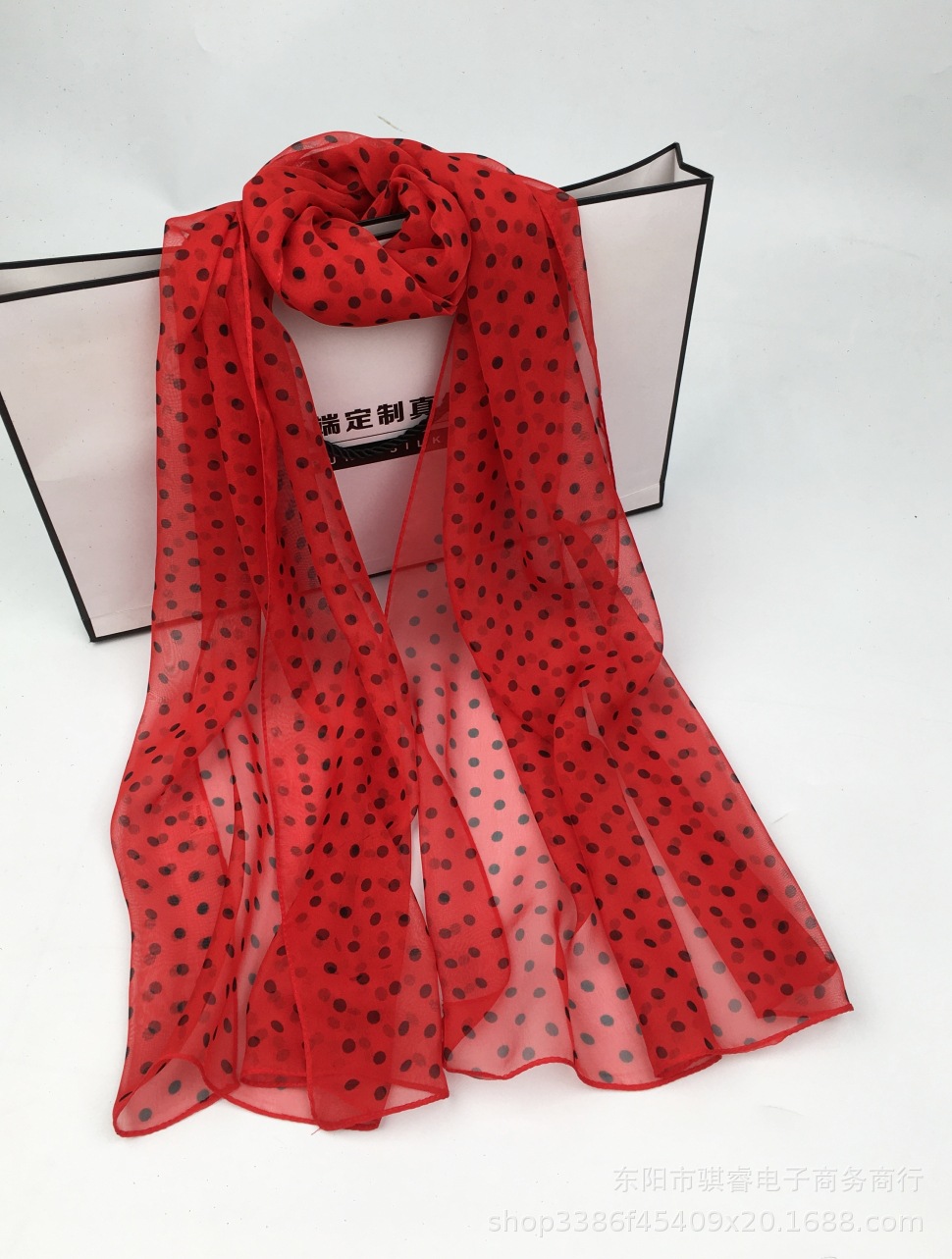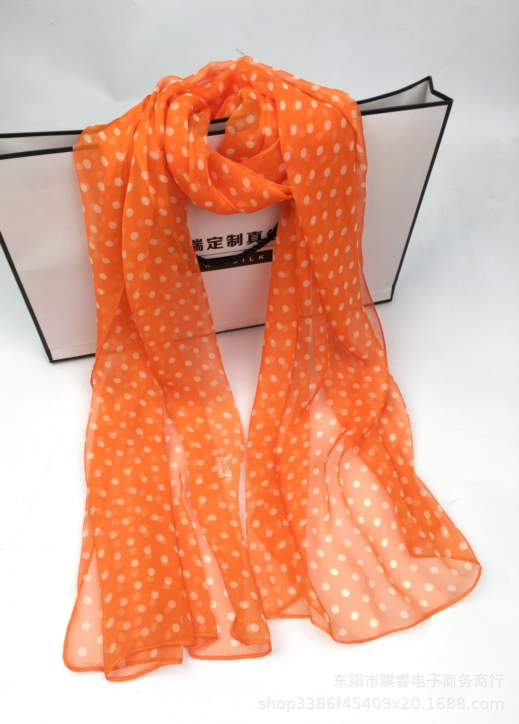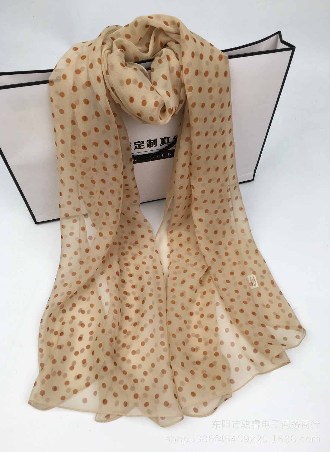 Корейская версия весенне-осеннего и летнего шелкового шарфа модной маленькой волновой точки Jorqi пряжа темпераментная печать трансграничной внешней торговли оптовый шарф в горошек