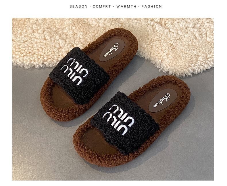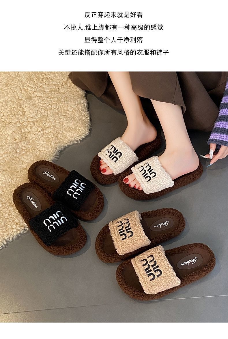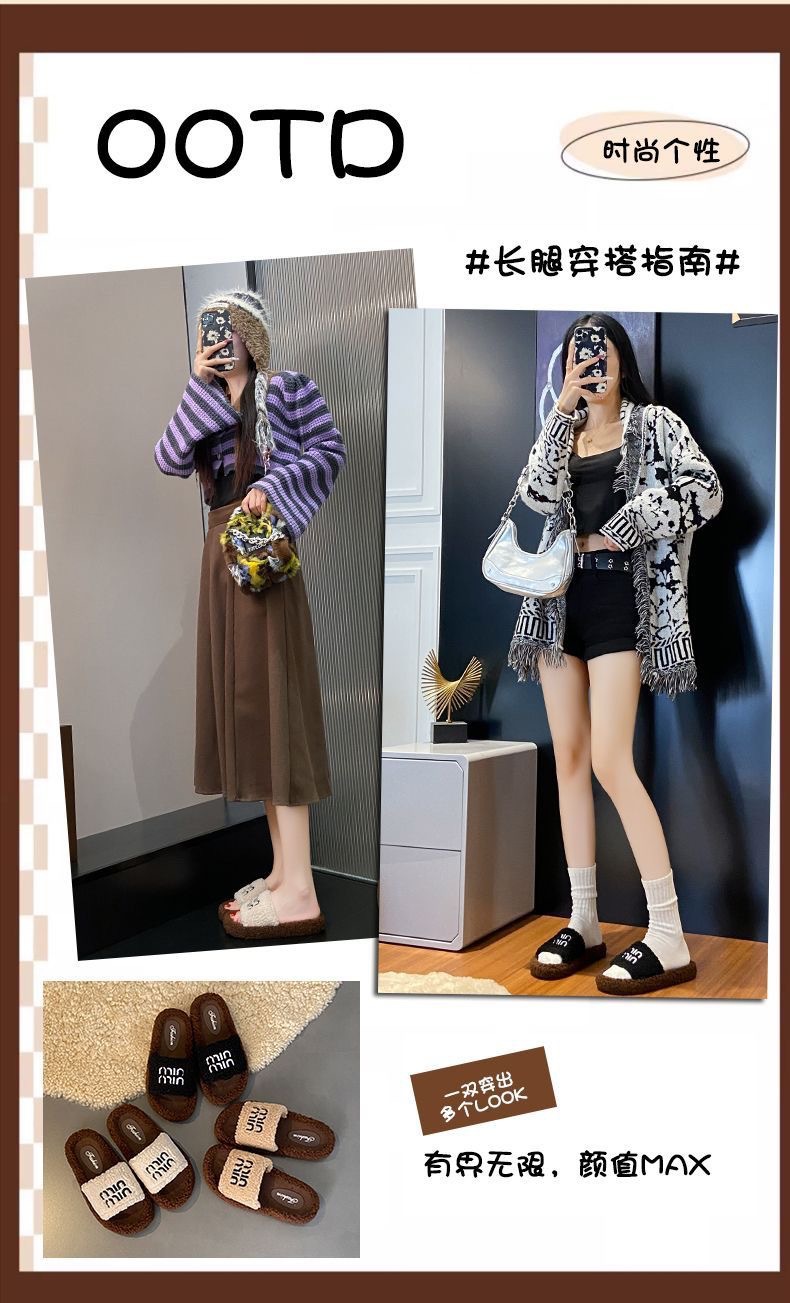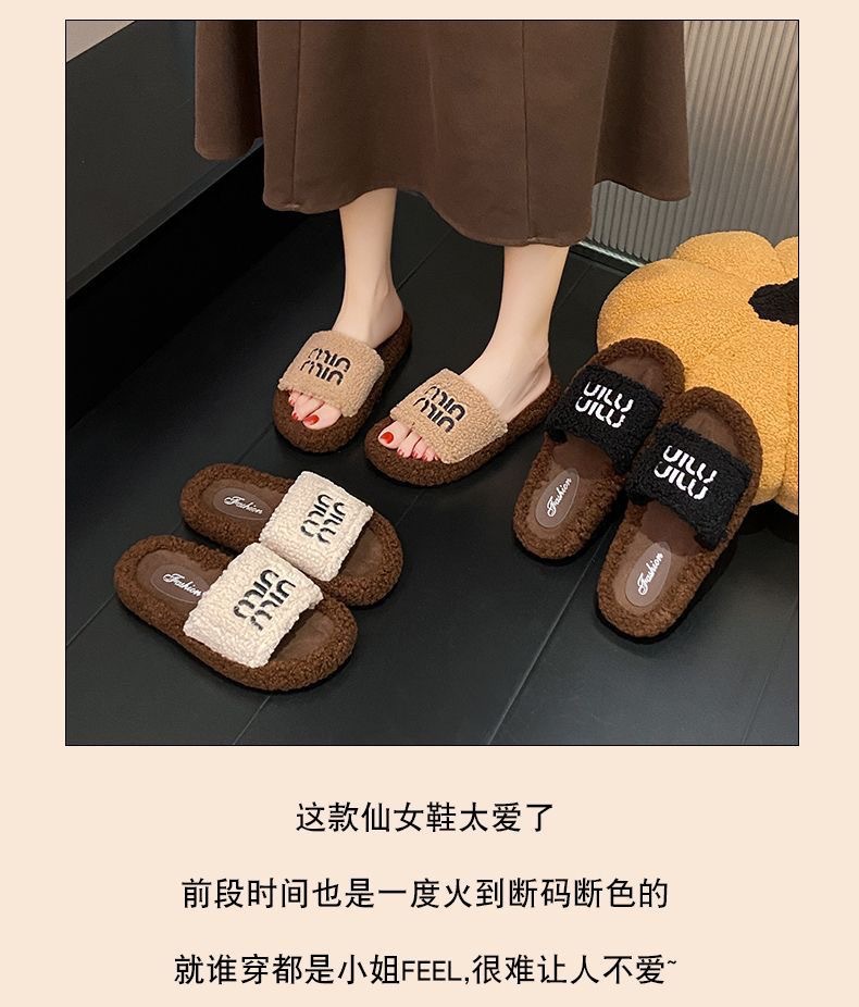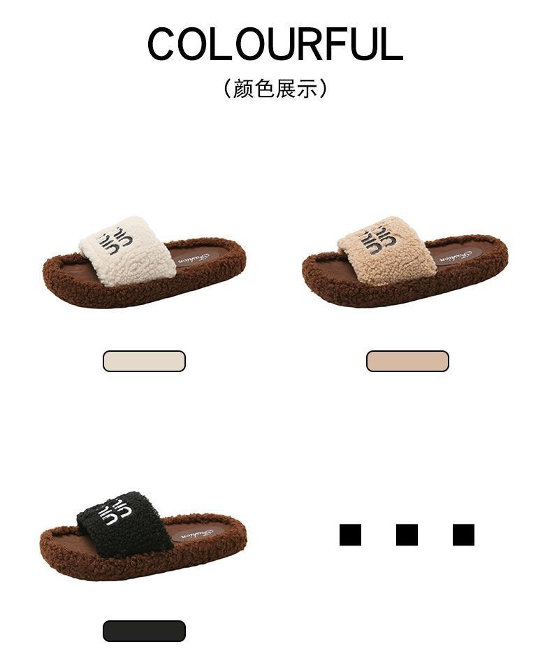 Хаки овечья шерсть-миу [обувь с мехом на подошве]; Черные туфли из овечьей шерсти Miu с меховой подошвой; Кремовые туфли из овечьей шерсти Miu [с меховой подошвой]