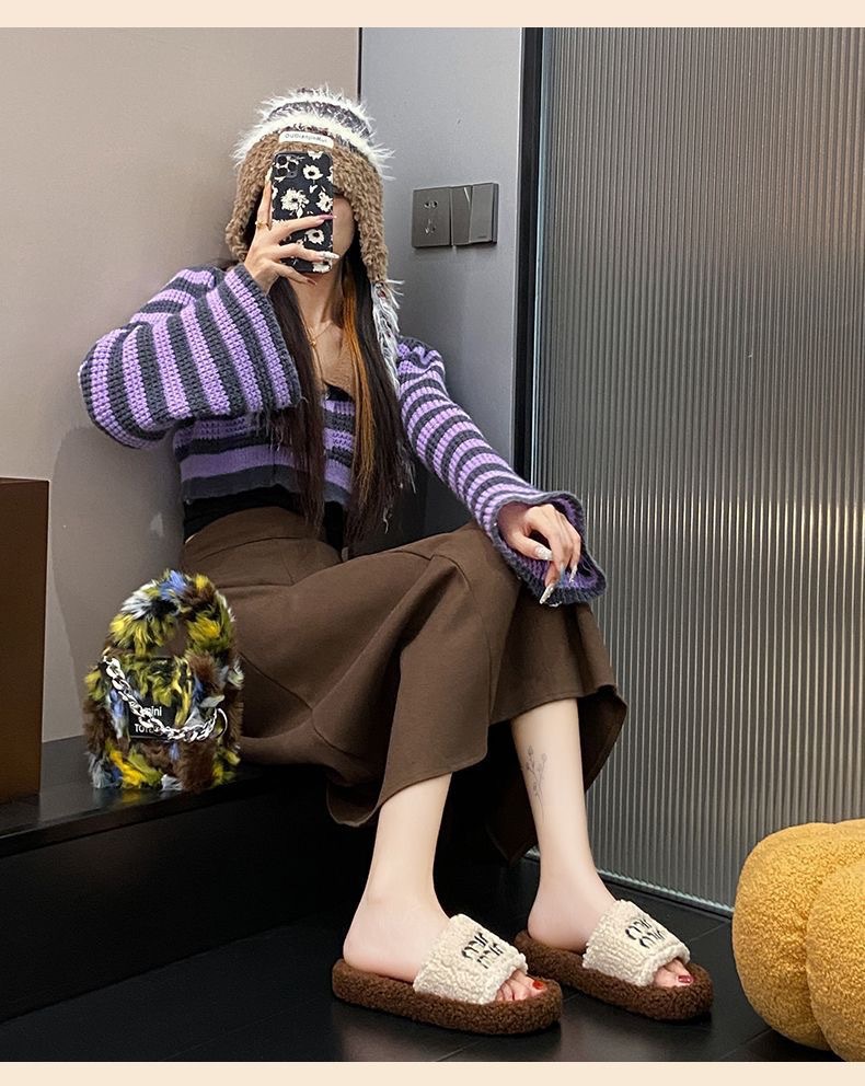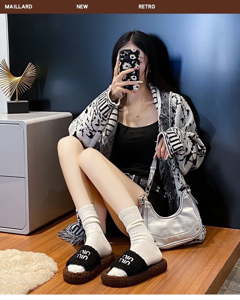 Mayard вышитые шерстяные шлепанцы из ягненка 2024 осень-зима новый стиль для ношения дома
