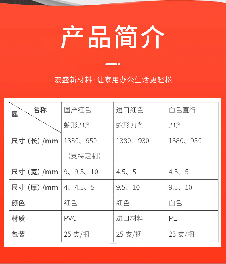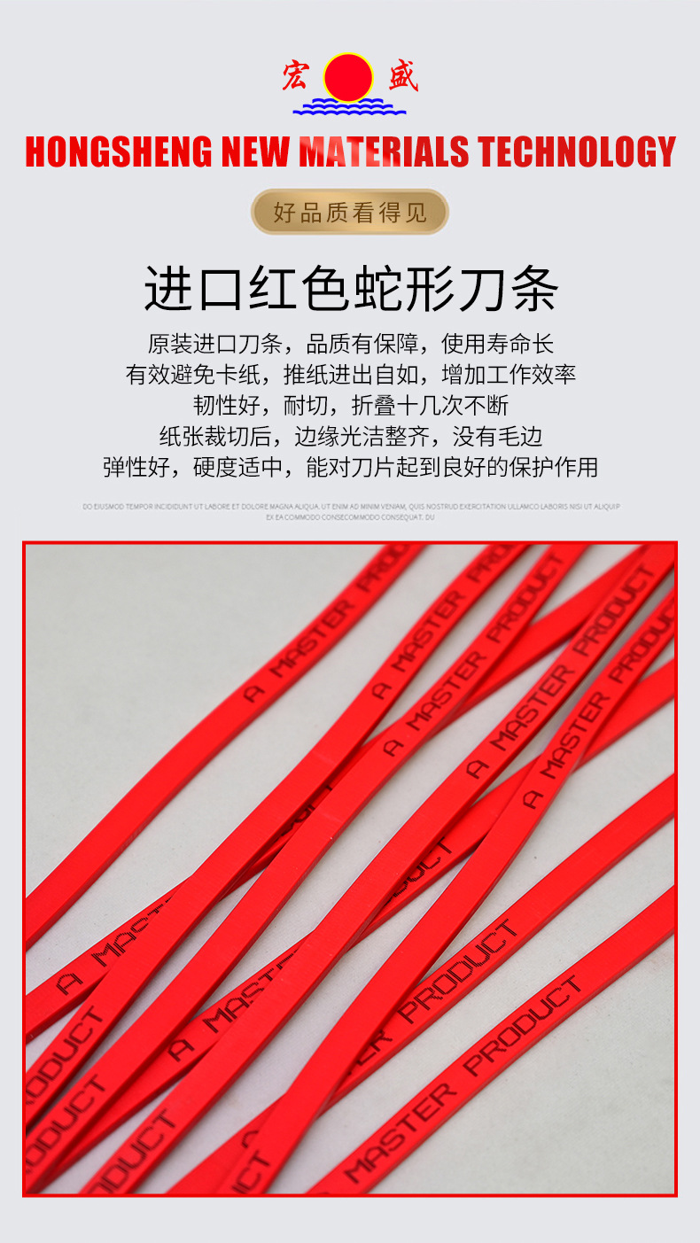 宏盛耗材源厂现货直行白刀条高弹耐切不毛边不易崩裂蛇形红刀条