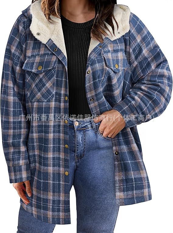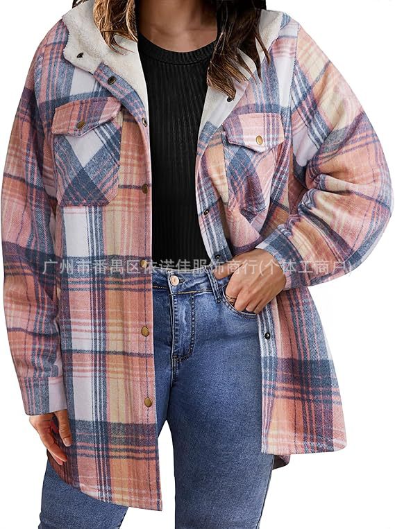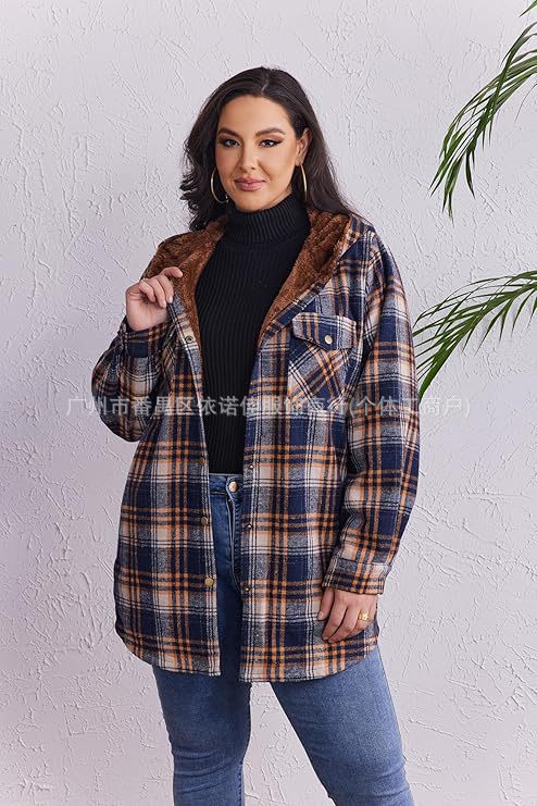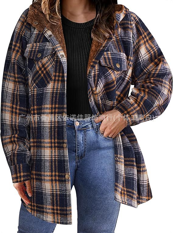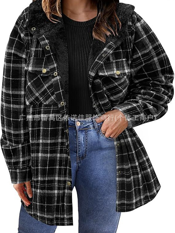 Европейская и американская трансграничная модная женская куртка-пальто Amazon 2025 года, новая осенне-зимняя коллекция, универсальная, в клетку, с пэчворком, плюшевая, с капюшоном