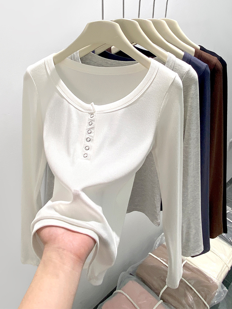 H262 новый ранняя осень с длинными рукавами рубашка с тонкими пуговицами