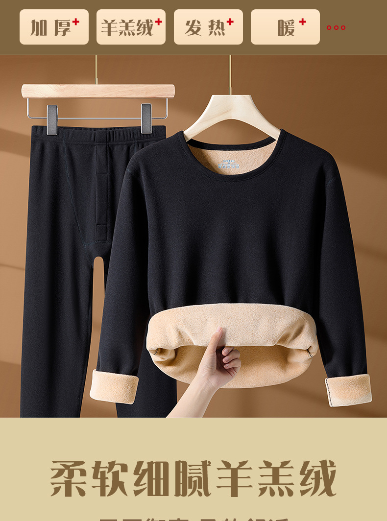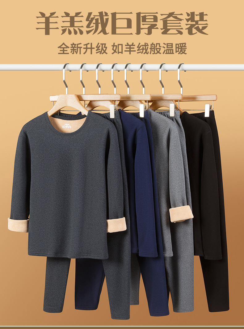 2024 новый набор термобелья для мужчин плюс бархат утолщенная баранина удобная мягкая самонагревающаяся термобелье