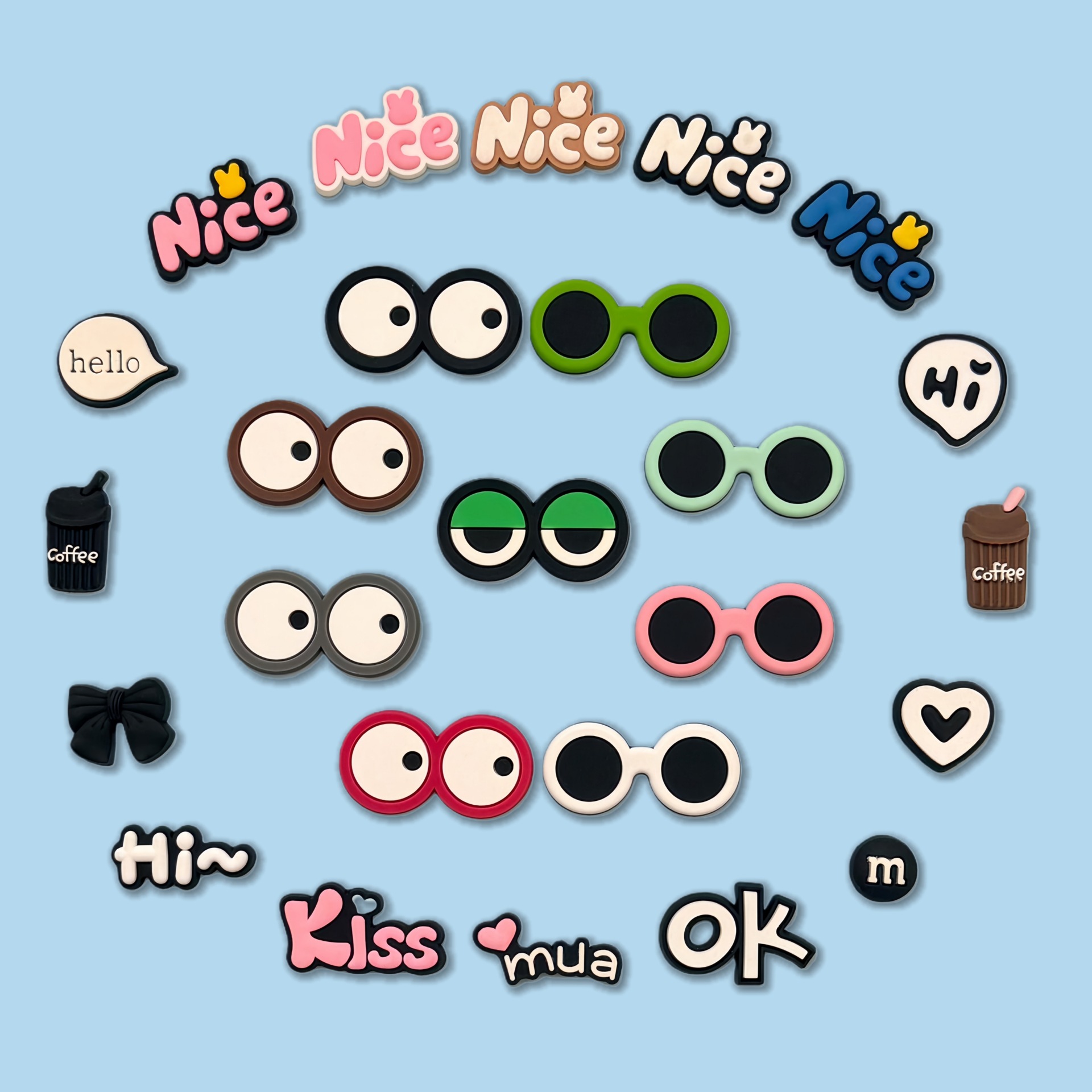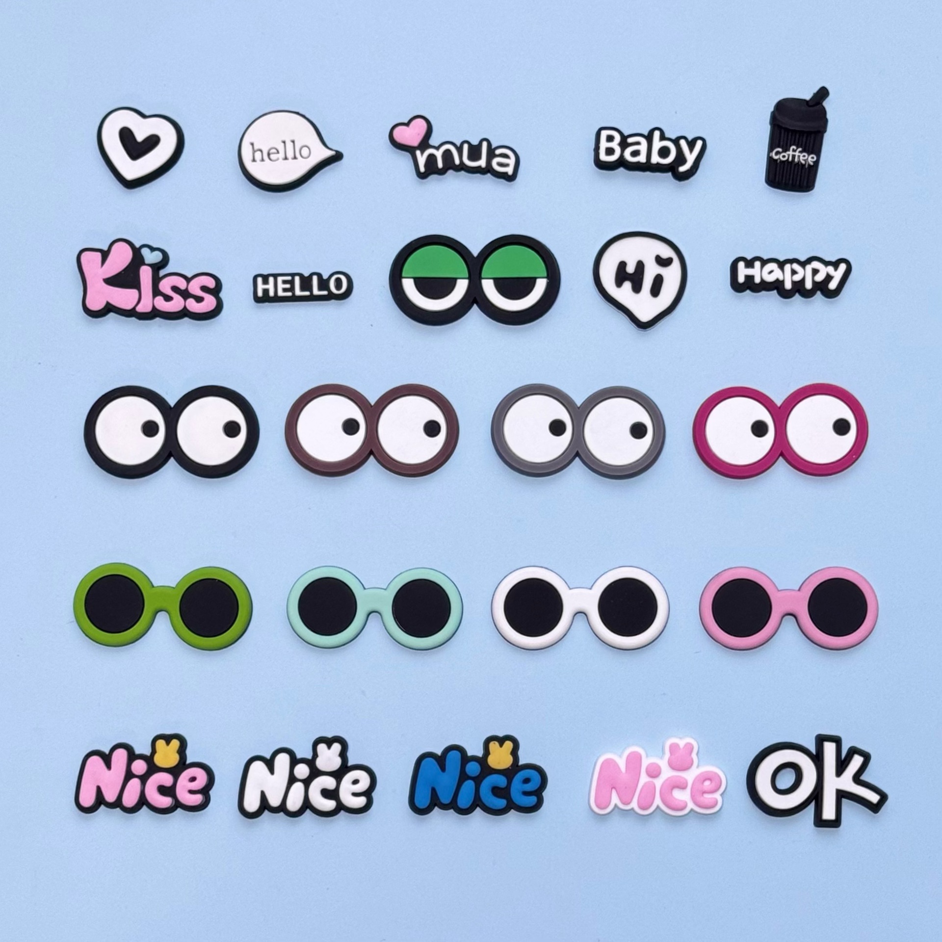 Зеленые и черные глаза (высота 2,4*ширина 4,4); Черные глаза (высота 2,5*ширина 4,5); Серые глаза (высота 2,5*ширина 4,5); Кофейные глазки (высота 2,5*ширина 4,5); Розово-красные глаза (высота 2,5*ширина 4,5); Белые солнцезащитные очки (высота 2,15*ширина 4,5); Солнцезащитные очки розового цвета (высота 2,15*ширина 4,5); Солнцезащитные очки травяно-зеленого цвета (высота 2,15*ширина 4,5); Солнцезащитные очки светло-зеленого цвета (высота 2,15*ширина 4,5); Черный Найс (высота 2,0*ширина 3,5); Розовый красивый (высота 2,0*ширина 3,5); Синий красивый (высота 2,0*ширина 3,5); Розовый и белый Найс (высота 2,0*ширина 3,5); Браун Найс (Высота 2.1 * Ширина 3.5); Черный Happy (высота 1,15 * ширина 3,15); Чашка для кофе черного цвета (высота 2,8*ширина 1,5); Поцелуй (высота 2,1*ширина 3,8); муа (высота 1,7*ширина 3,45); Черный HI (высота 2,6*ширина 2,4); Черный BABY (высота 1,4*ширина 2,9); Черный HELLO (высота 0,8*ширина 2,6); Диалоговое окно ЗДРАВСТВУЙТЕ (высота 2,15*ширина 2,7); ОК (высота 2,4*ширина 3,55)