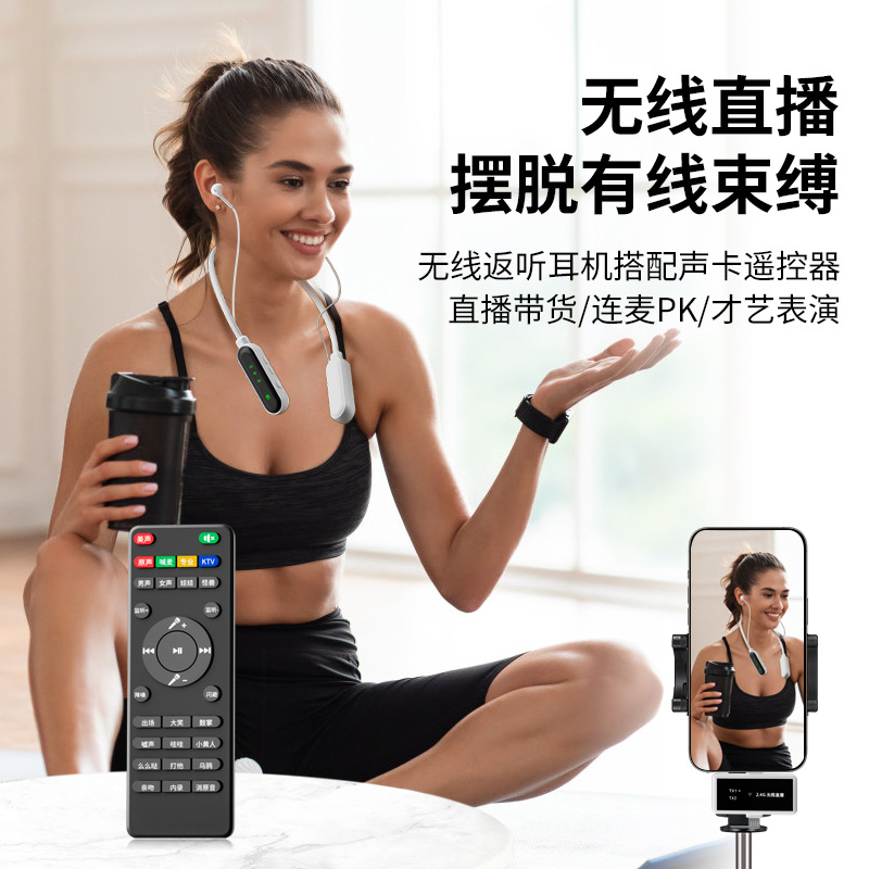 Беспроводная звуковая карта, комплексное решение для прямых трансляций, полный комплект: наушники, караоке, для использования на улице, с индикатором заряда и пультом ДУ, мониторинг с мобильного телефона
