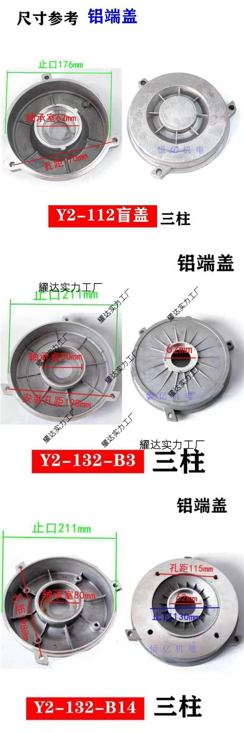 Алюминиевая торцевая крышка Y2 80 90 100 112 132 Вертикальная фланцевая крышка задняя крышка