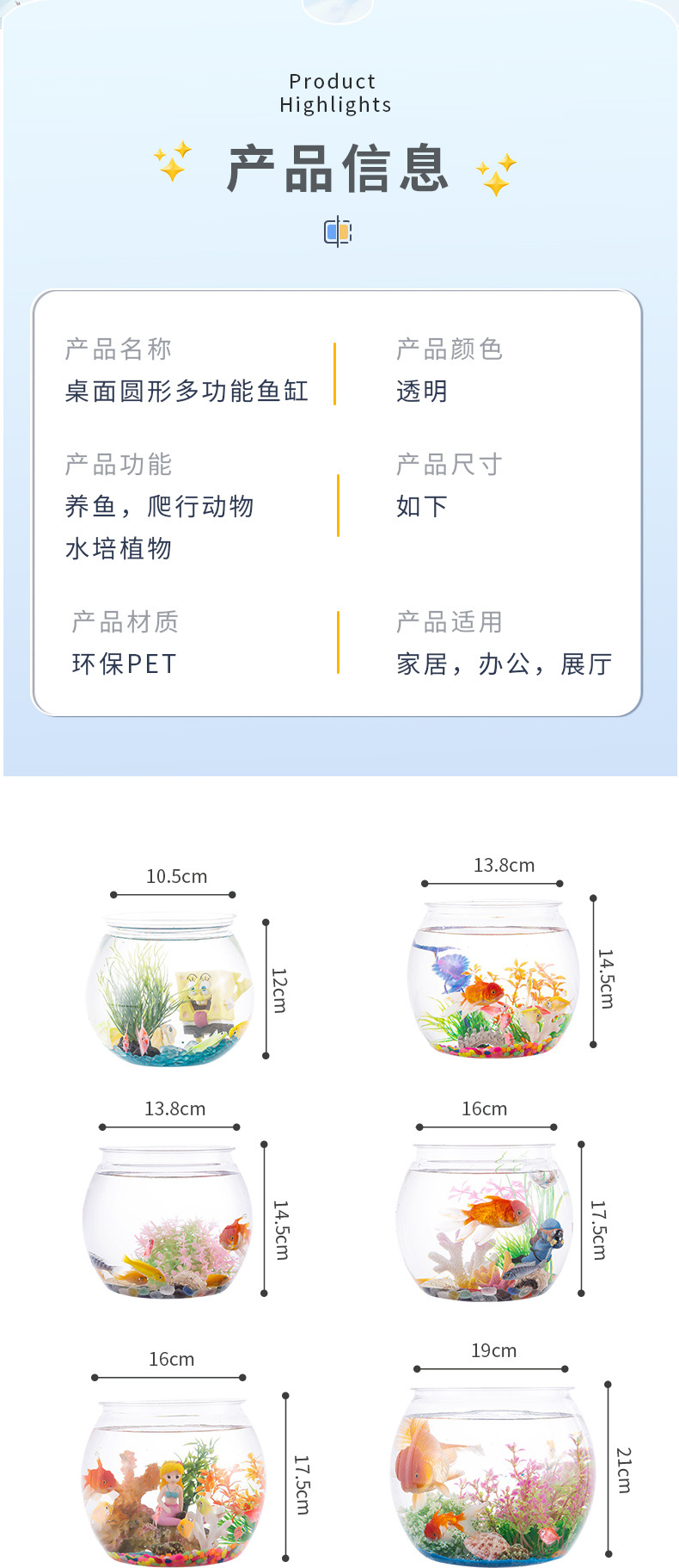 Круглый аквариум прозрачный ПЭТ простой, предпочтительный пластиковый износостойкий и стойкий к падению