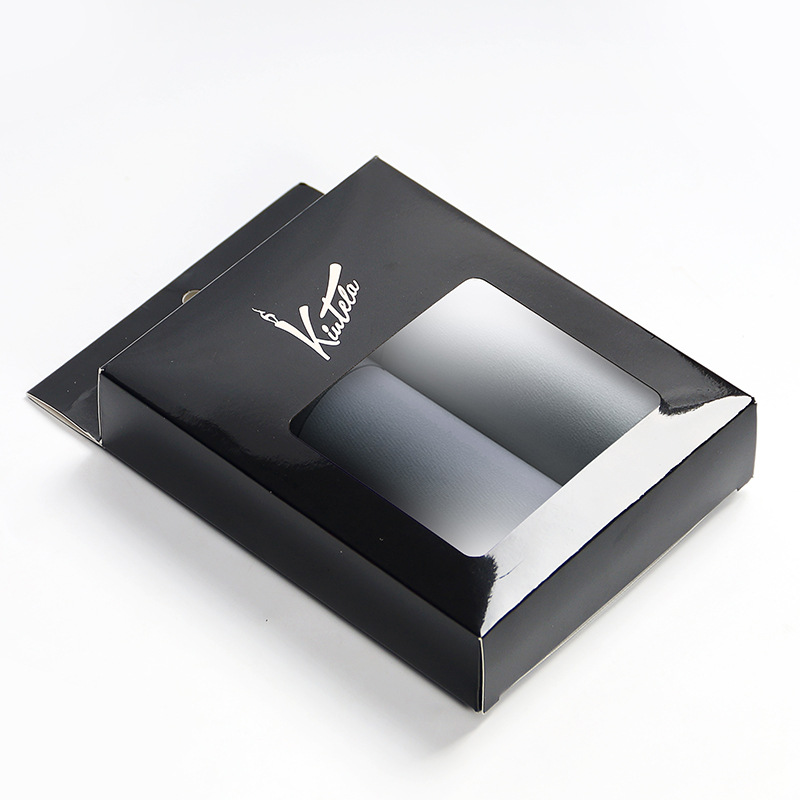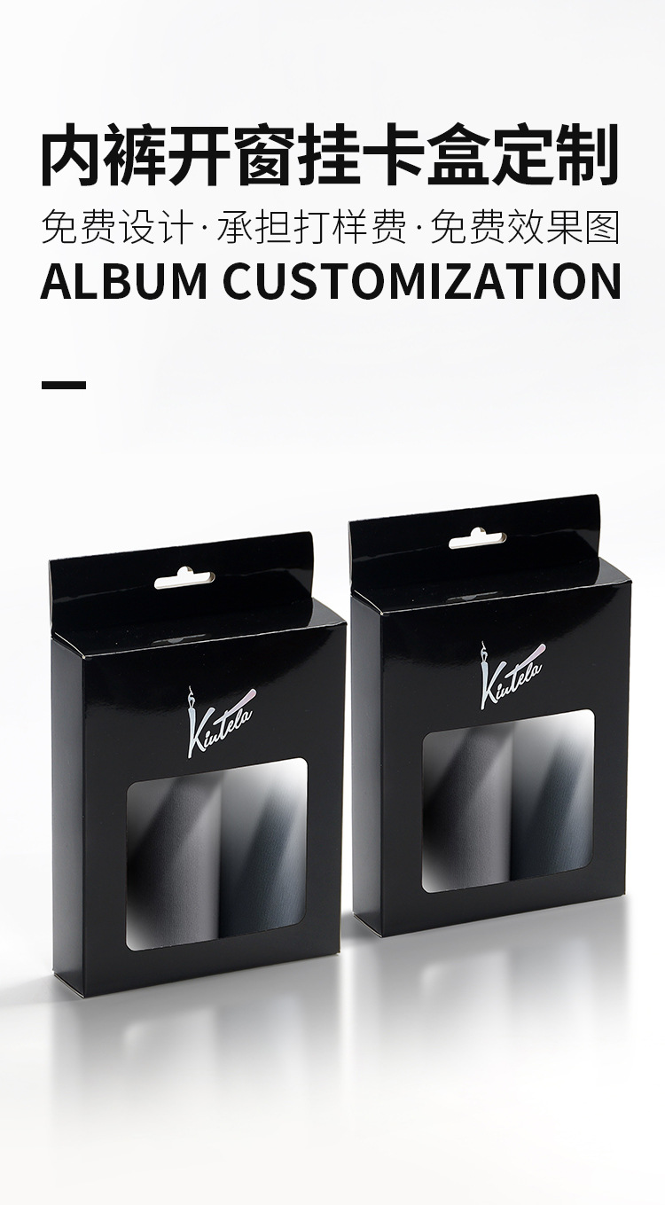 Индивидуальная коробка-крючок из белого картона для нижнего белья с прозрачным окном, коробка-крючок из бумаги для носков, черная упаковочная коробка с печатью