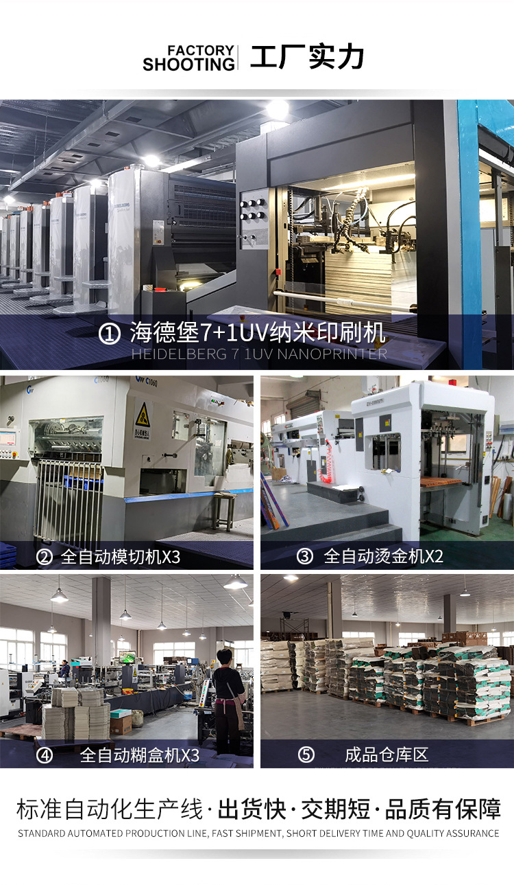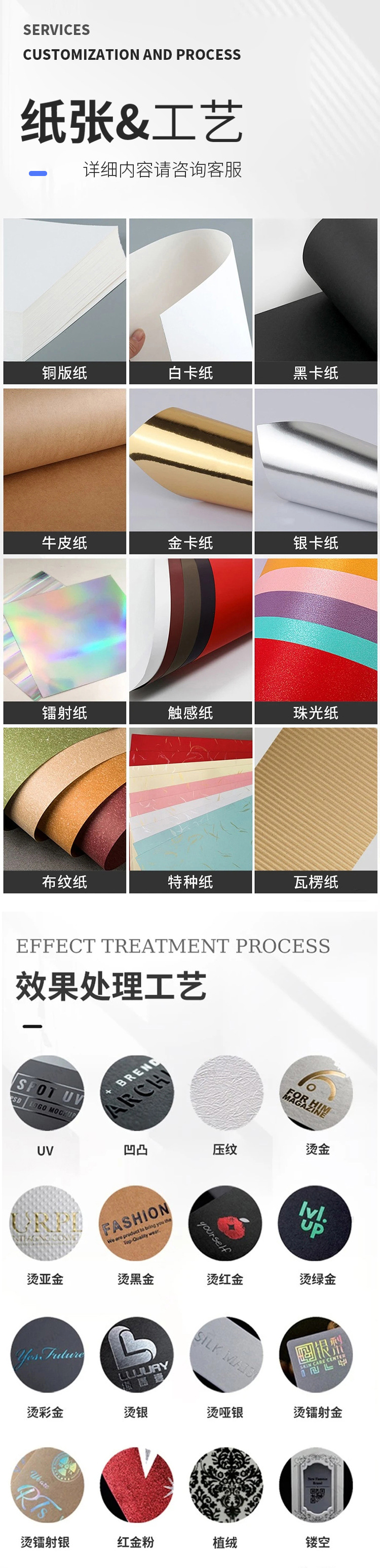 Четырехцветная печать, УФ, горячее тиснение, серебряное горячее тиснение, ламинирование, тиснение.